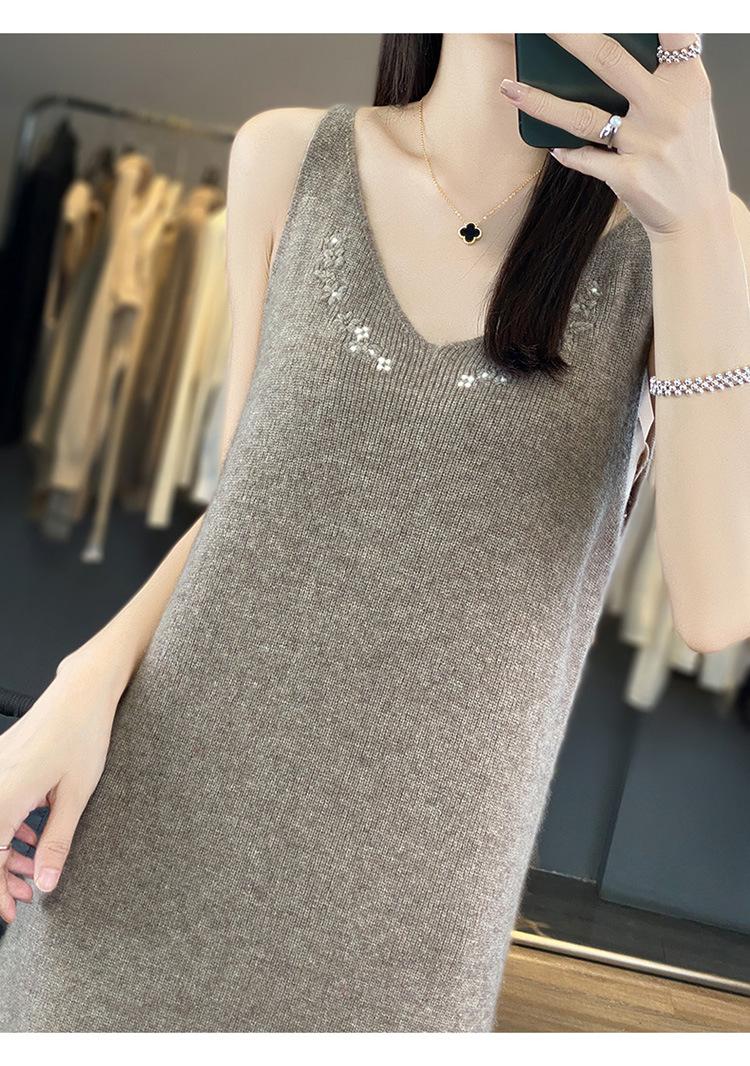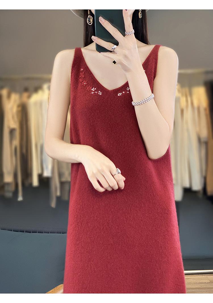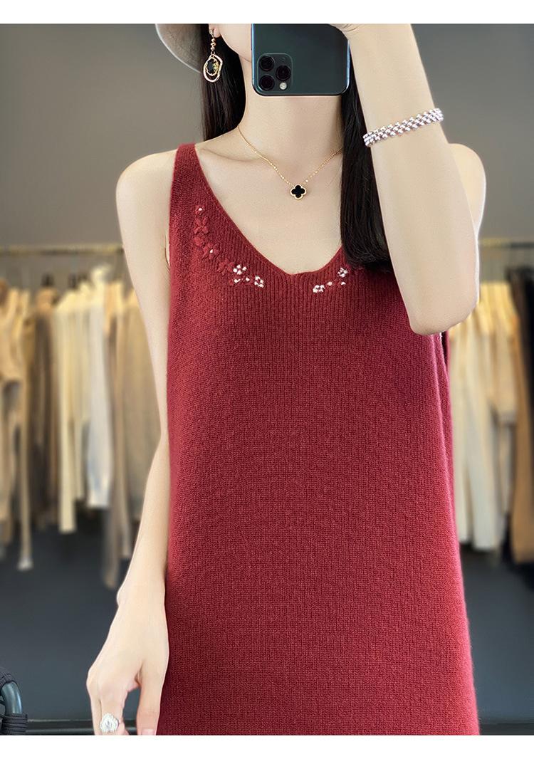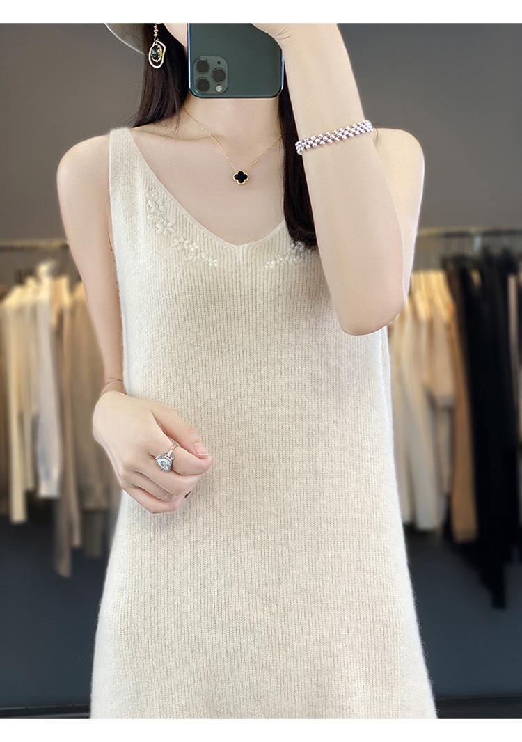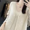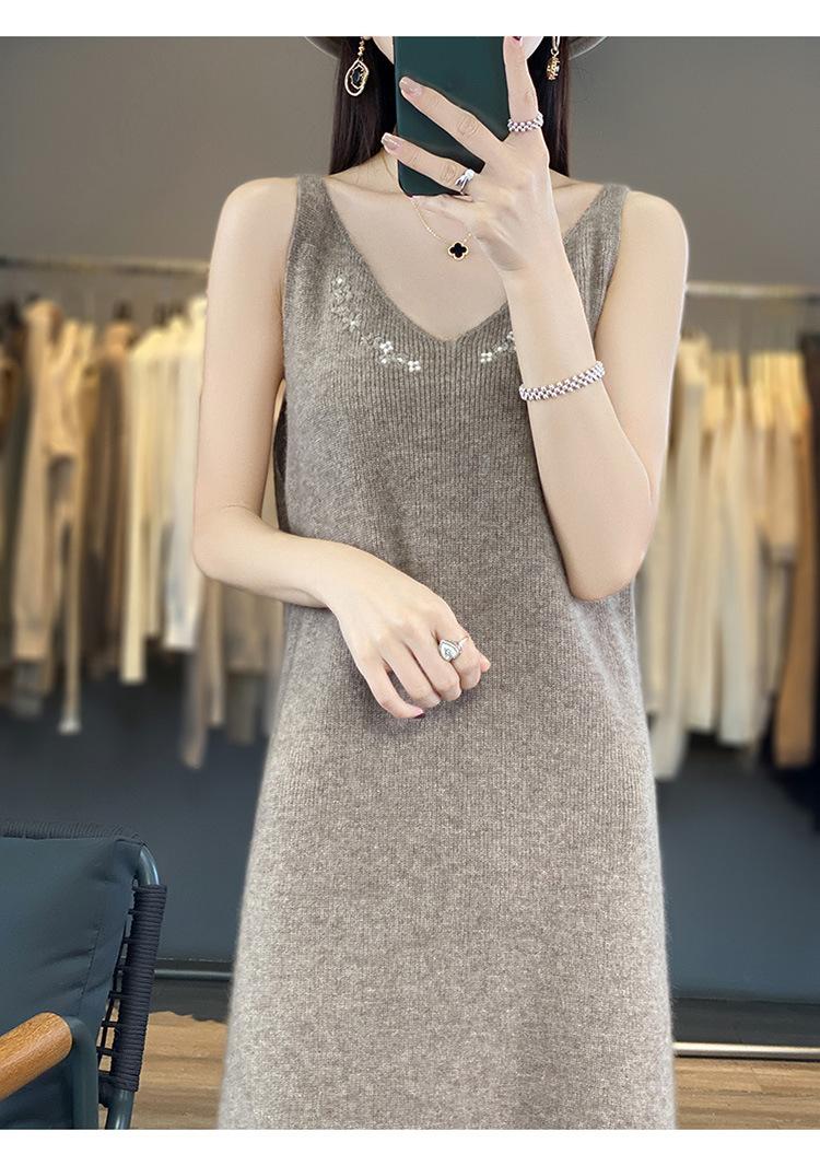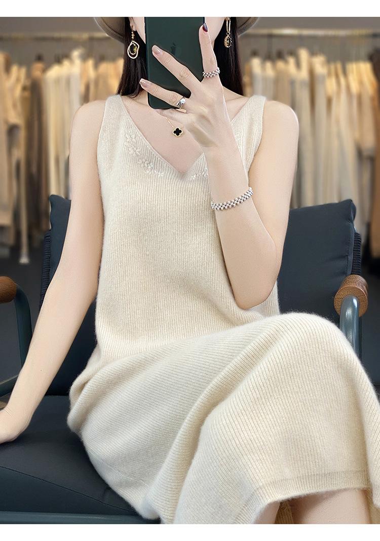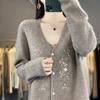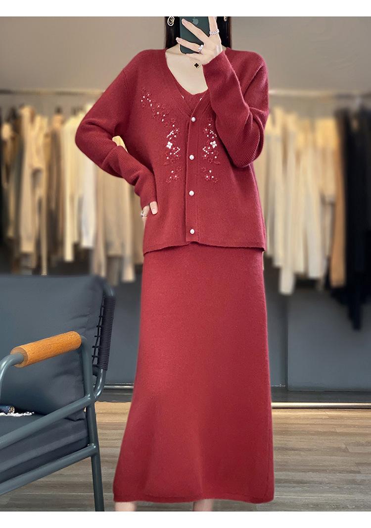 100% Lana Pura Otoño e Invierno Nuevo Cárdigan Corto de Punto con Cuello en V para Mujer Suelto Bordado Traje de Vestido por Encima de la Rodilla