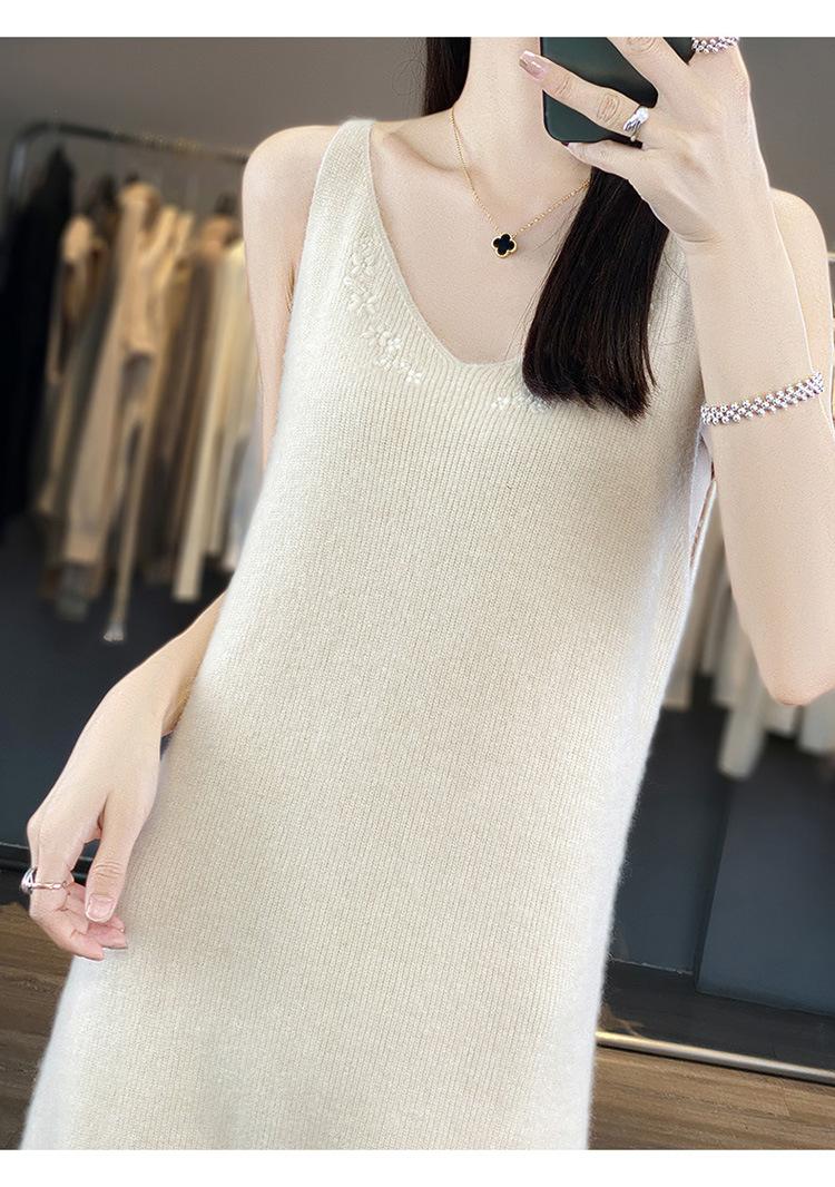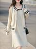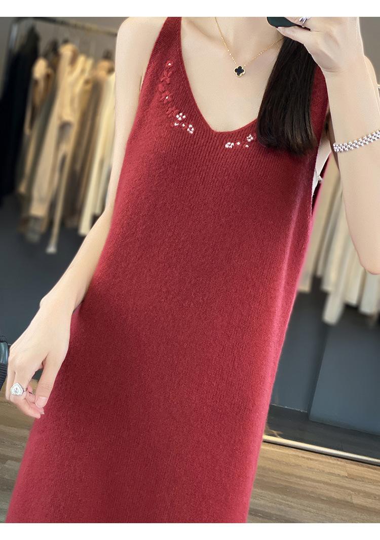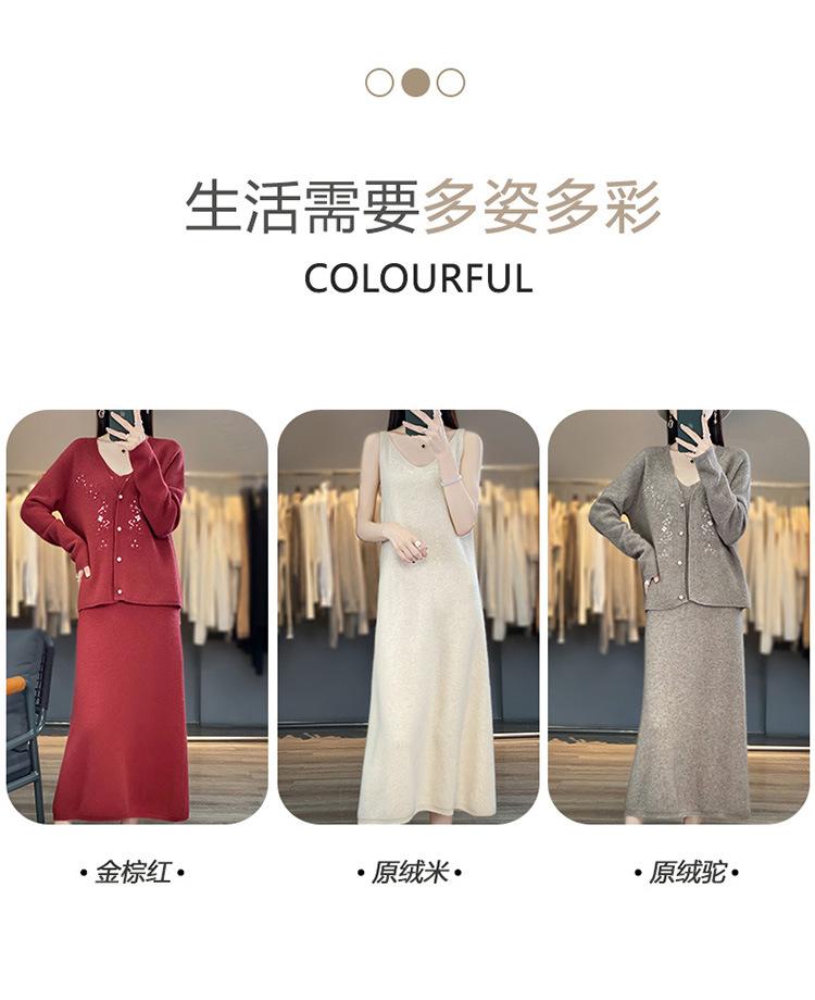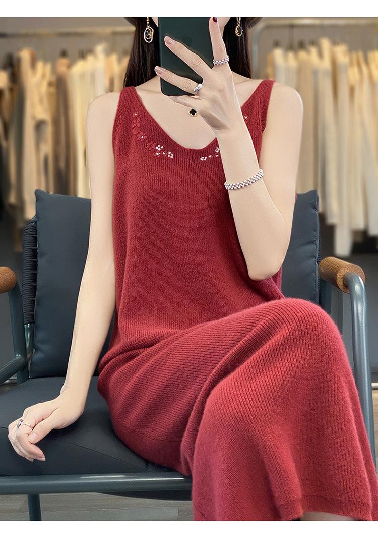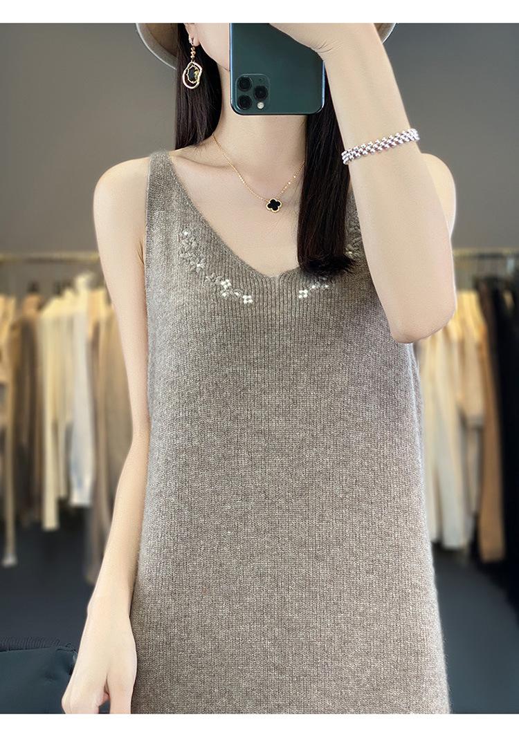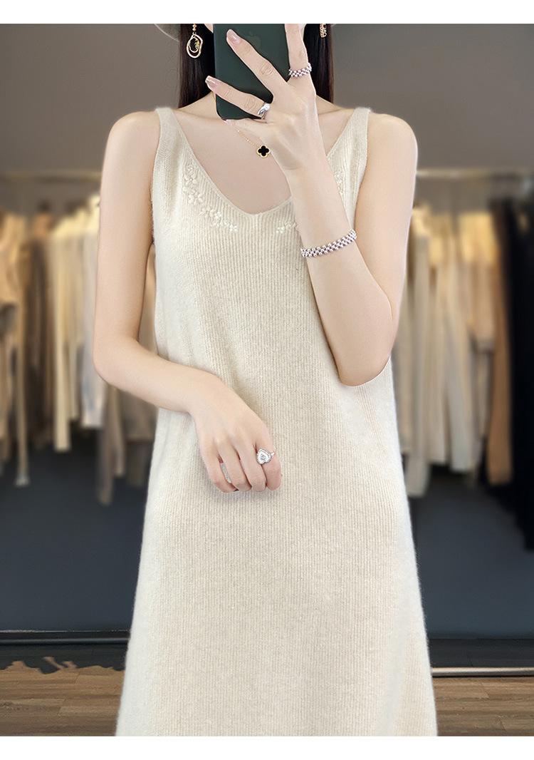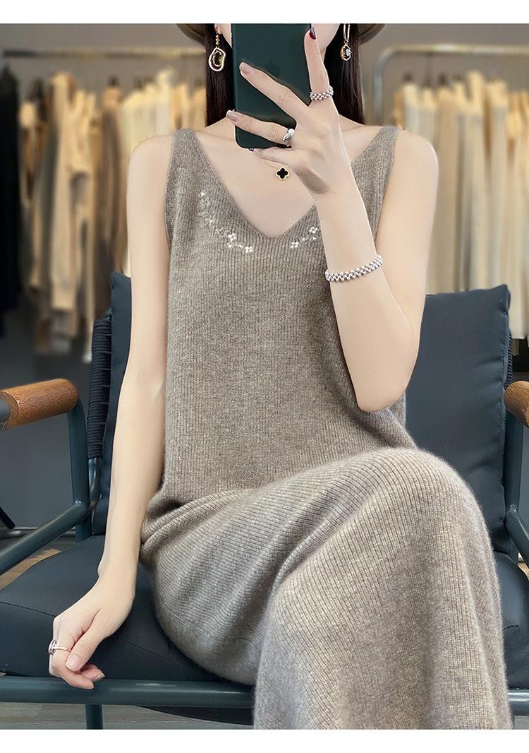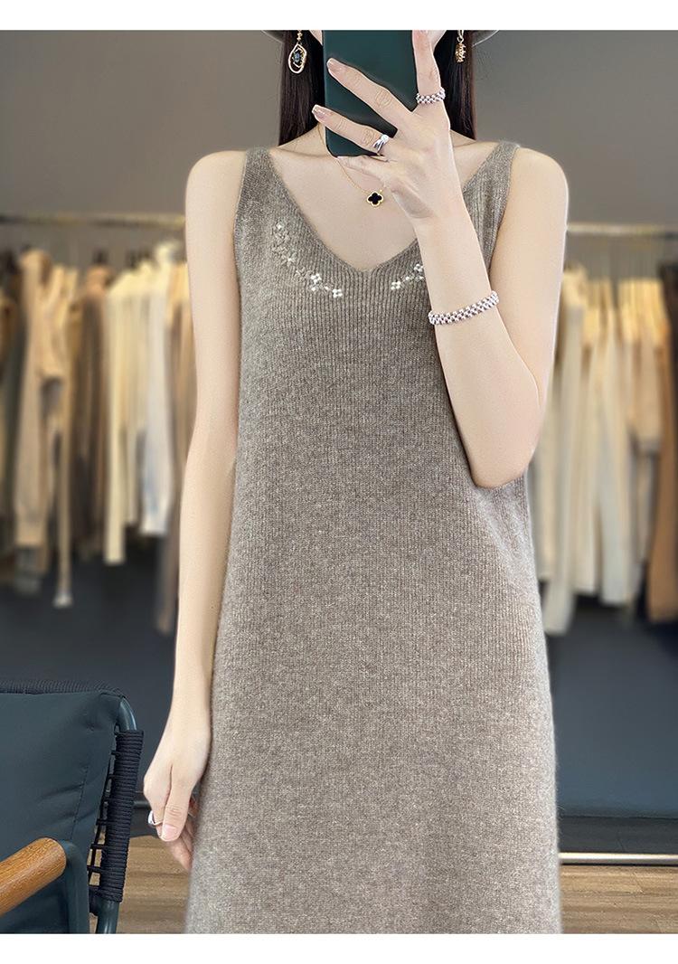 100% Lana Pura Otoño e Invierno Nuevo Cárdigan Corto de Punto con Cuello en V para Mujer Suelto Bordado Traje de Vestido por Encima de la Rodilla
