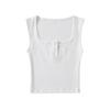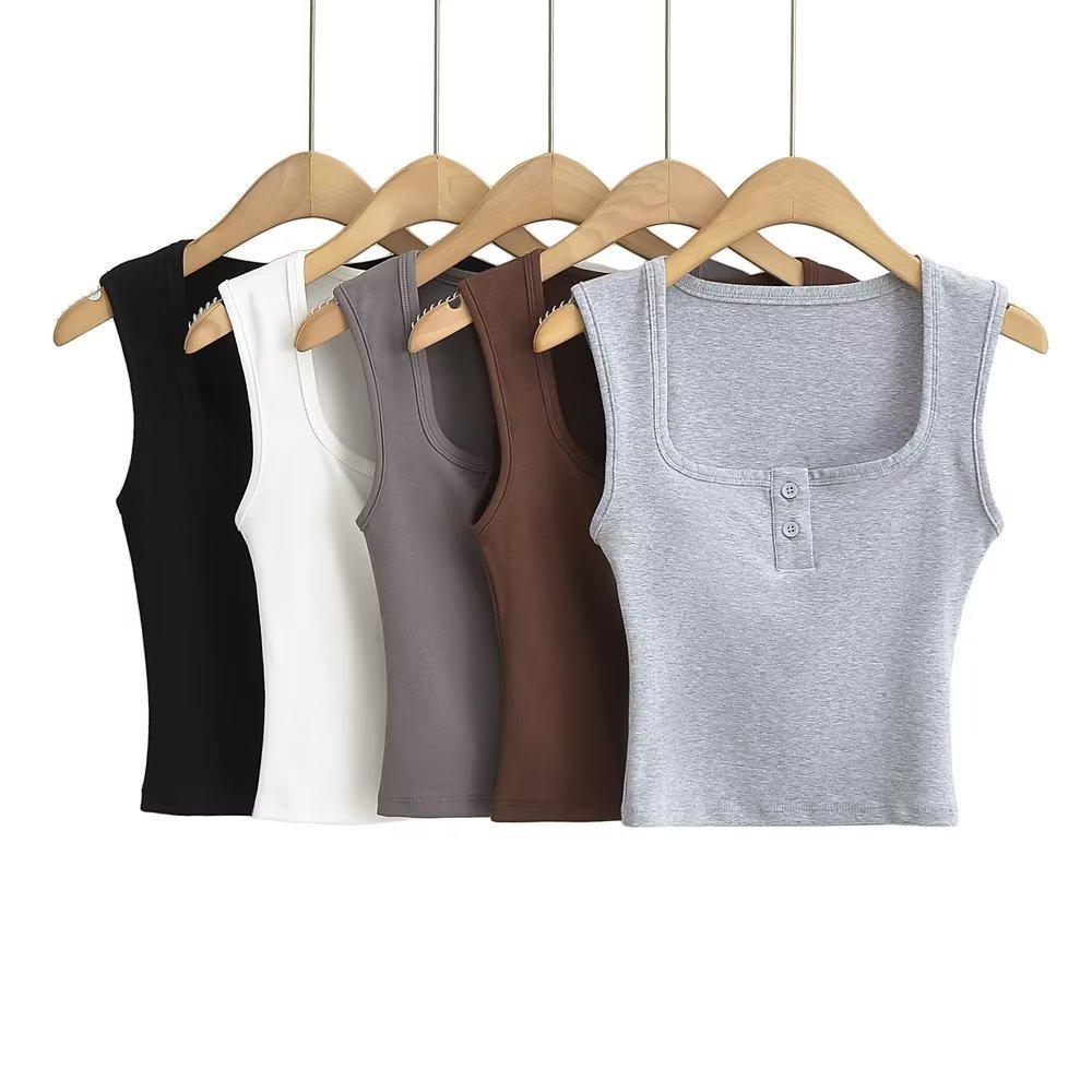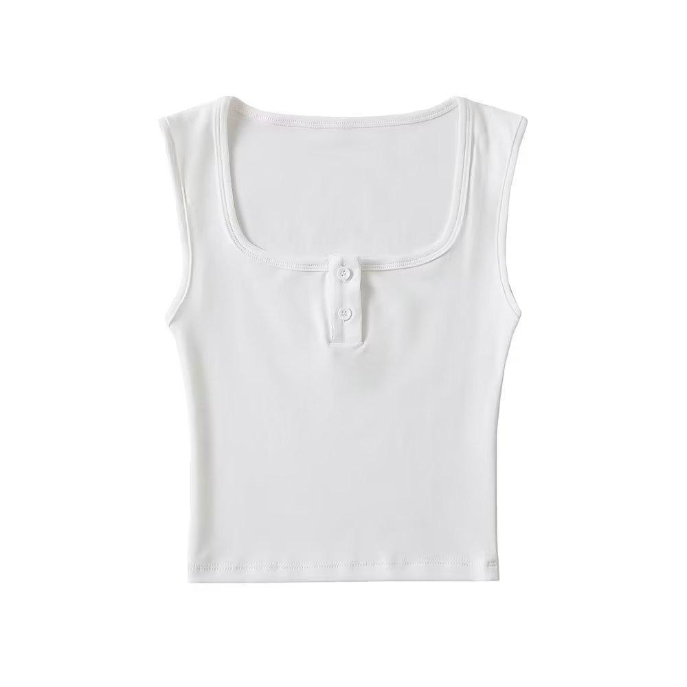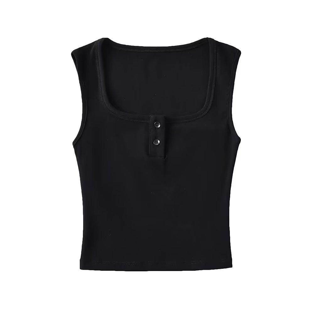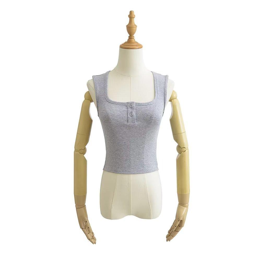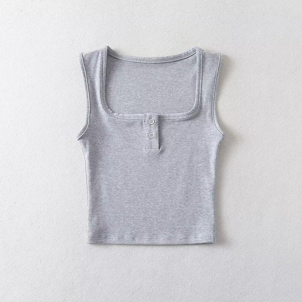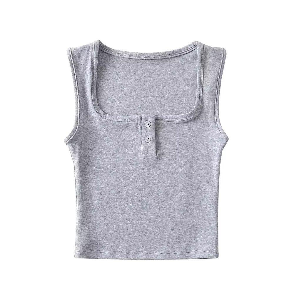 Camisola sexy de verano para mujer, estilo europeo y americano, con cuello cuadrado, dos botones, corte entallado, cintura alta, corta y recortada