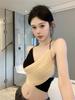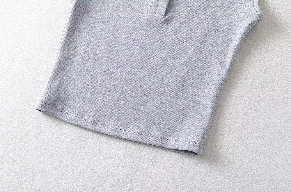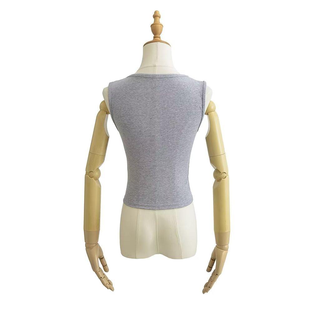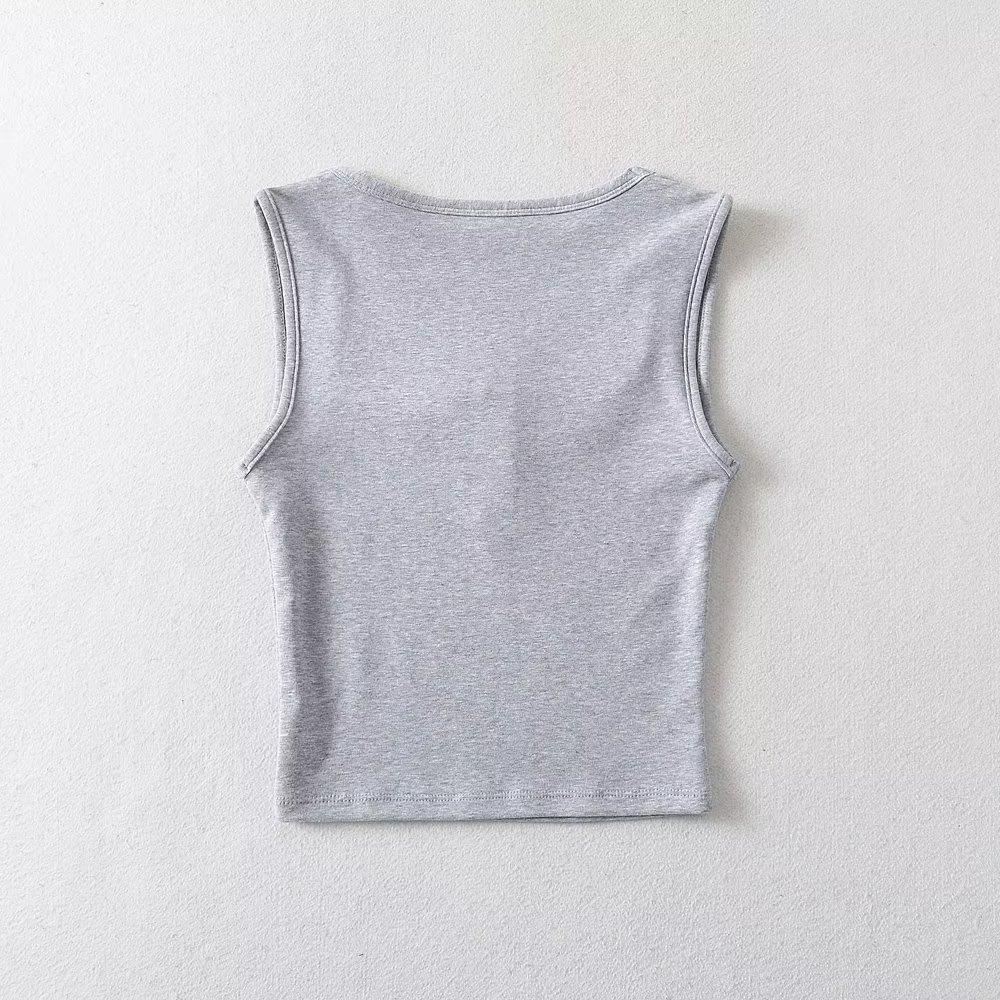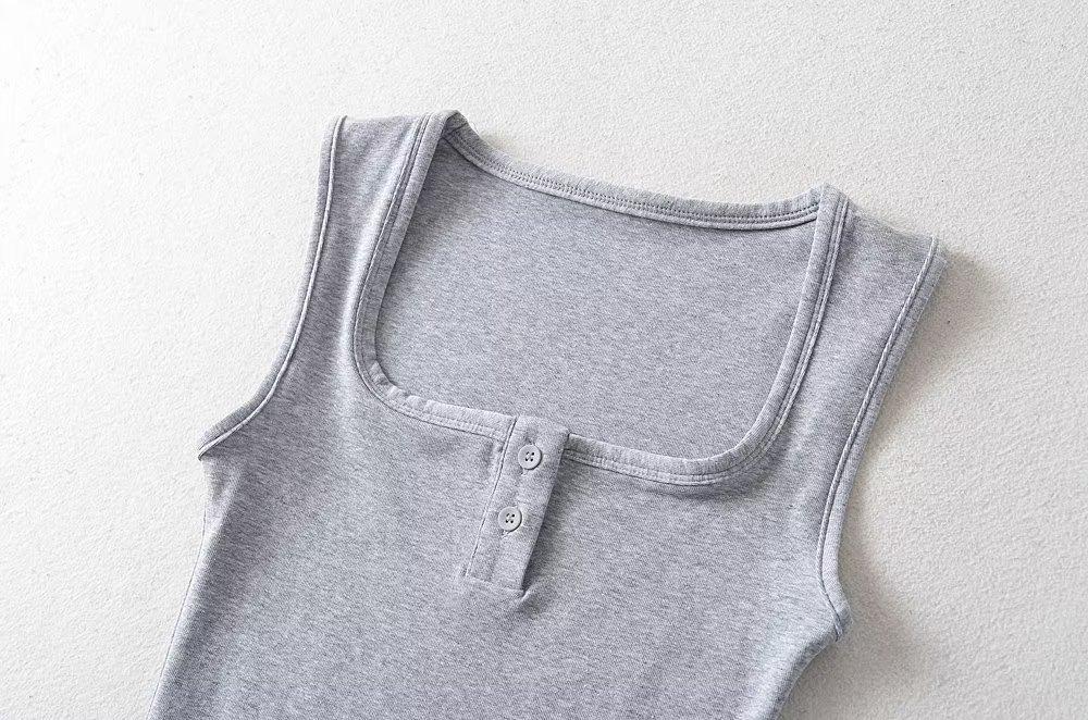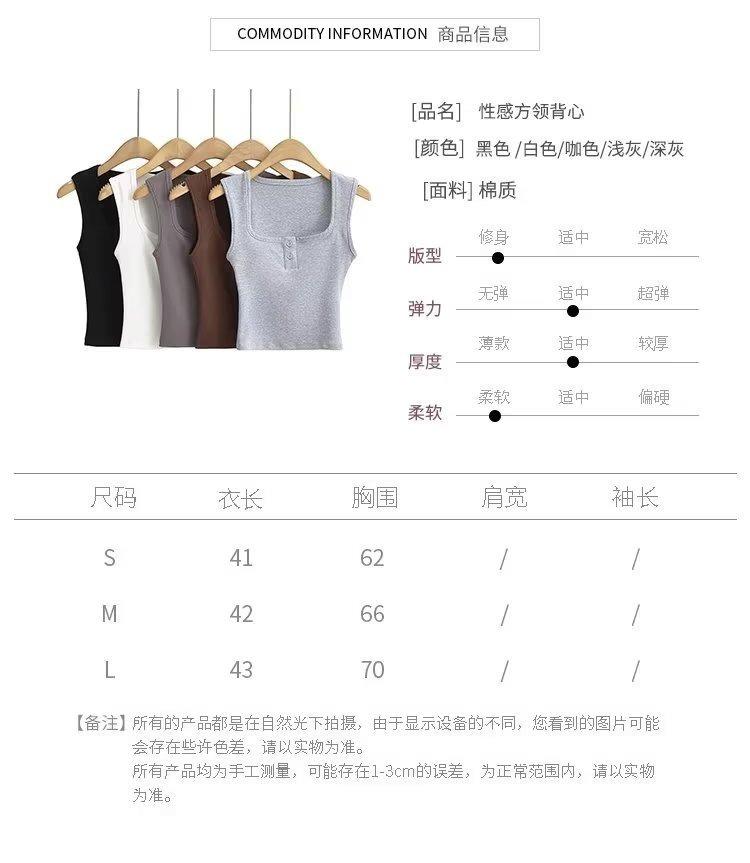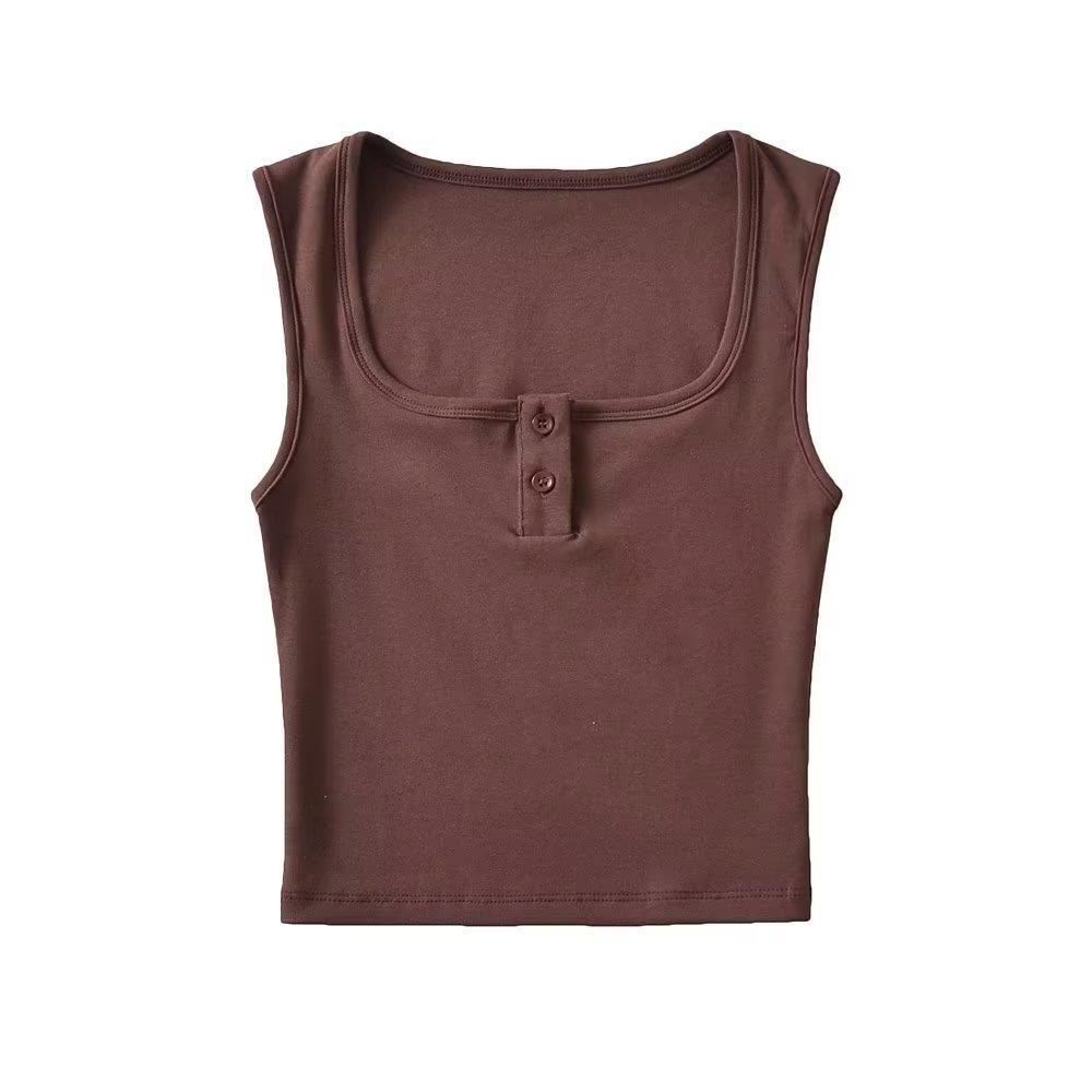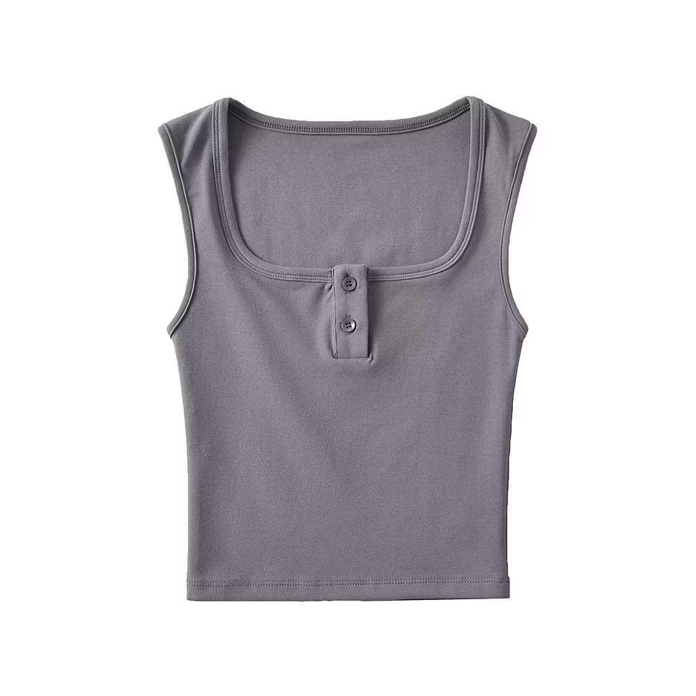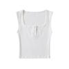 Camisola sexy de verano para mujer, estilo europeo y americano, con cuello cuadrado, dos botones, corte entallado, cintura alta, corta y recortada