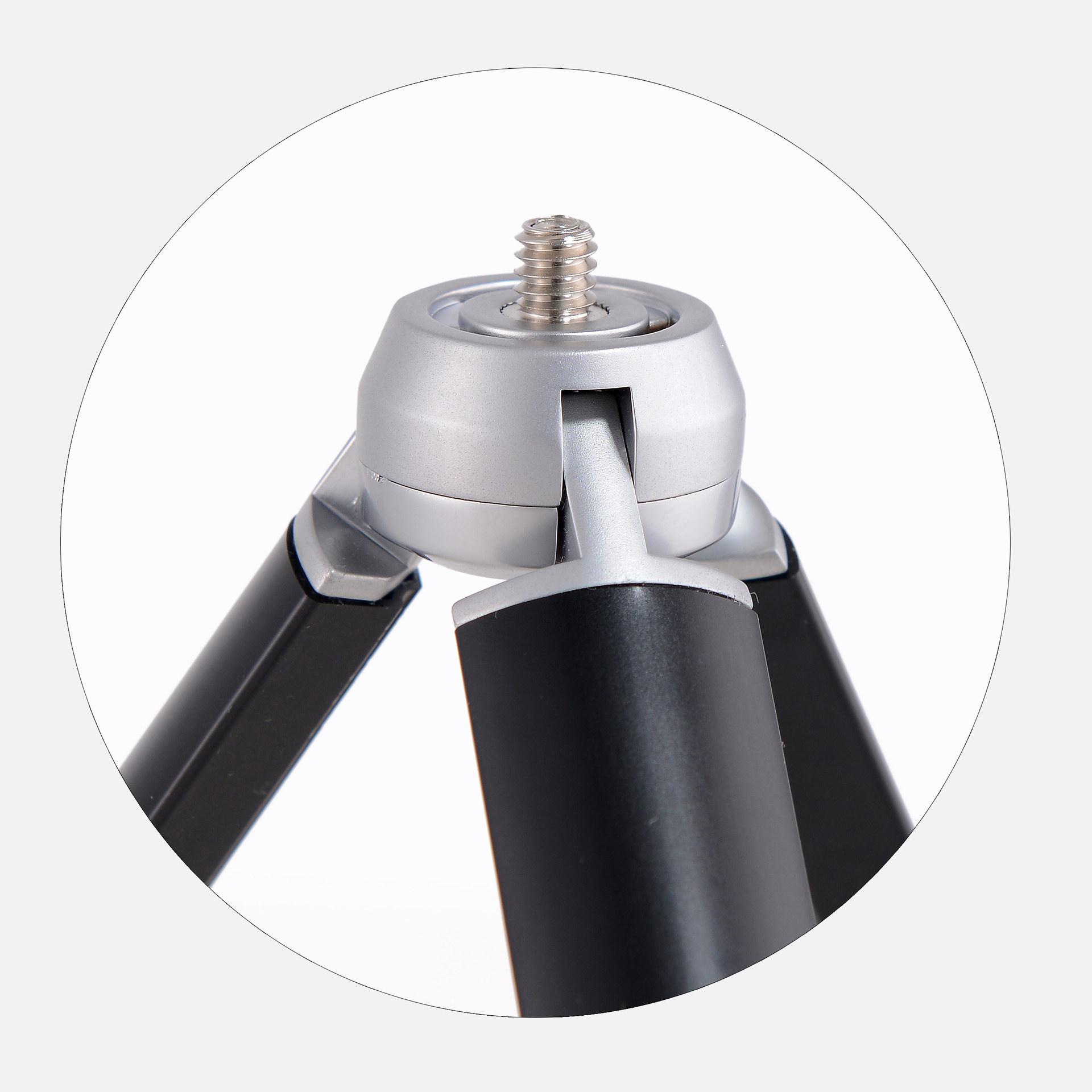 Sea aplicable | Mini trípode de aleación con orificio de tornillo de 1/4 para cámaras, réflex, videocámaras, teléfonos móviles, telescopios, estabilizadores de cardán de tres ejes para teléfonos móviles, etc. |