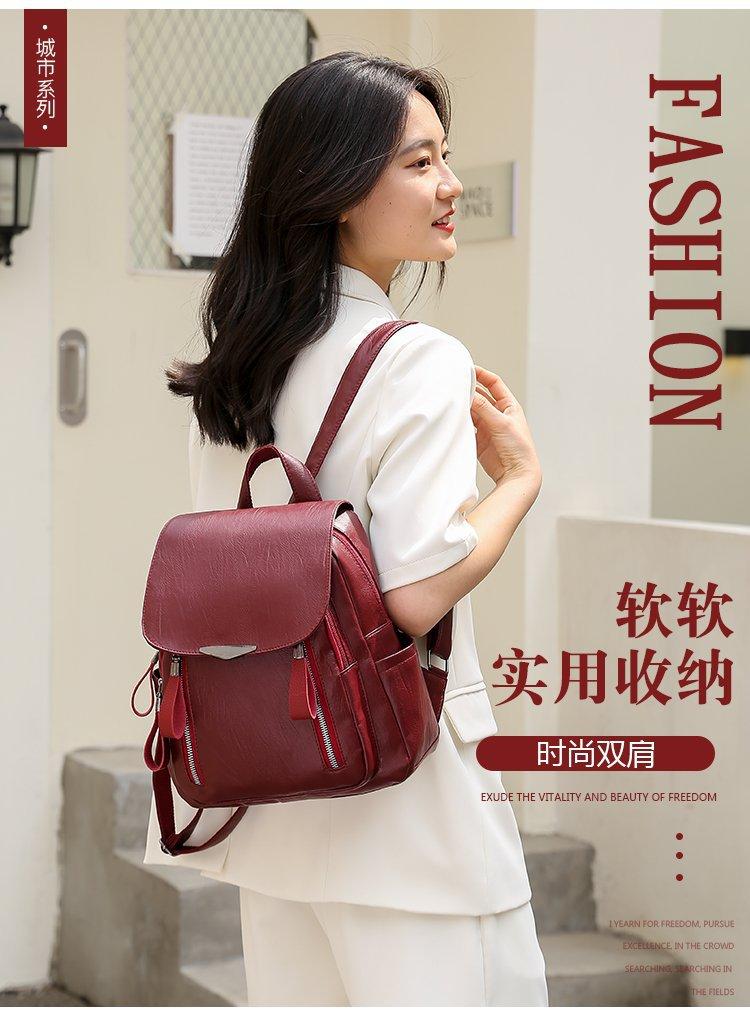 Mochila Nueva de Moda de PU Estilo Japonés y Coreano Casual Elegante de Gran Capacidad Bolso para Mujer Celebridad de Internet Fabricante Venta al por Mayor Dropshipping Transfronterizo