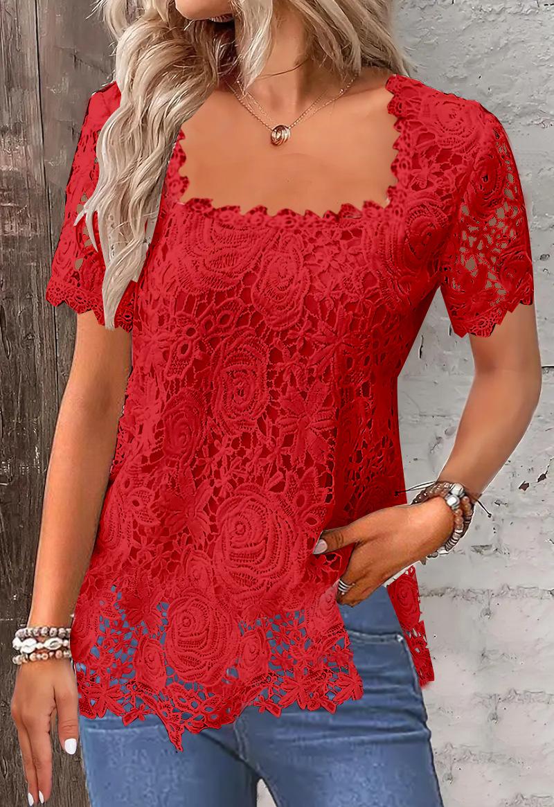 Estación Independiente Amazon 2024 Comercio Exterior Transfronterizo Verano Nuevo Caliente Vacaciones Elegante Camiseta de Encaje
