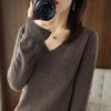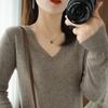 Wool Blbottom 2025 Otoño e Invierno Nuevo Suéter Corto para Mujer Estilo Coreano Cuello en V Ajustado Jersey Color Puro Tejido de Fondo