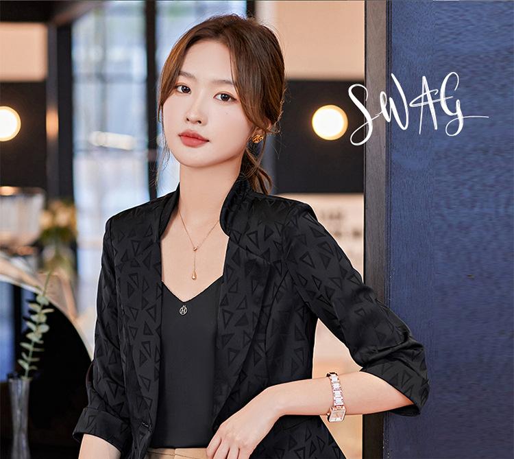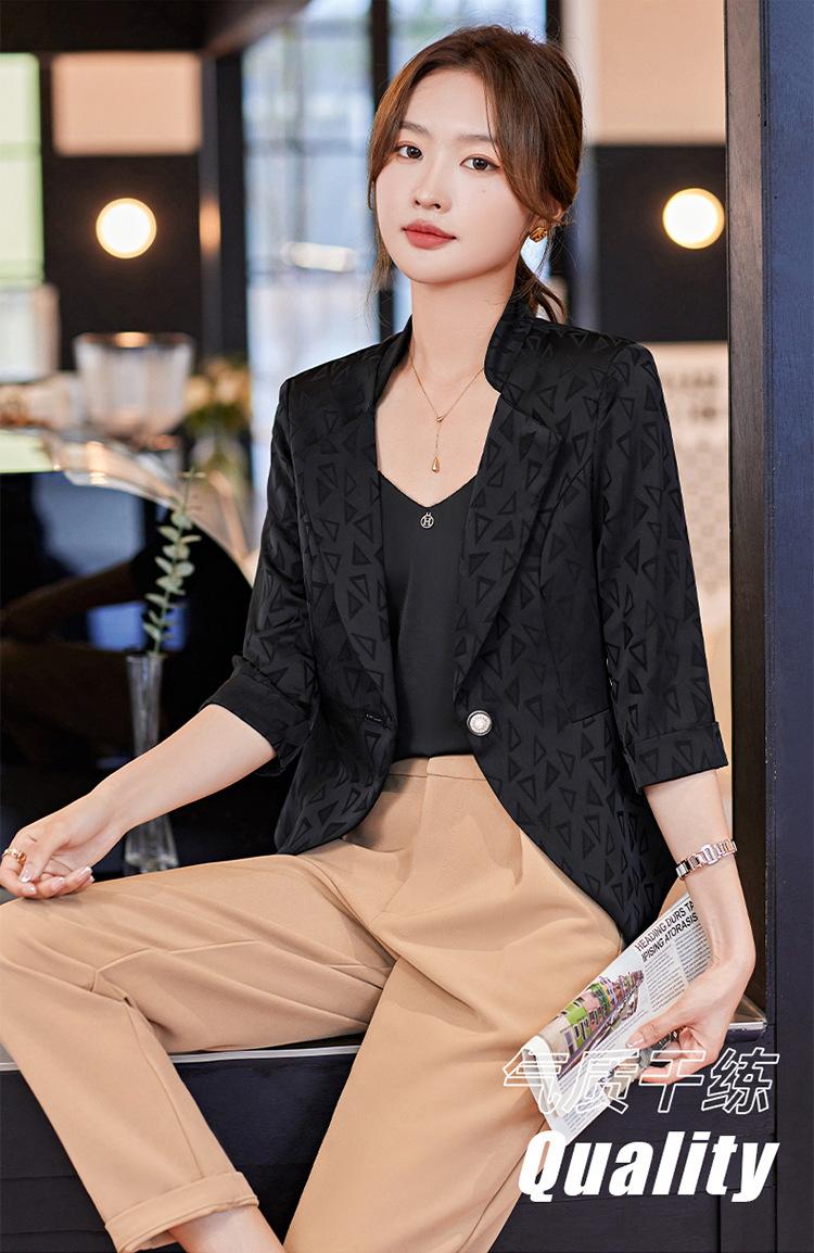 Traje pequeño de manga media con jacquard para mujer, moda coreana, primavera 2023, chaqueta de traje ajustada para negocios