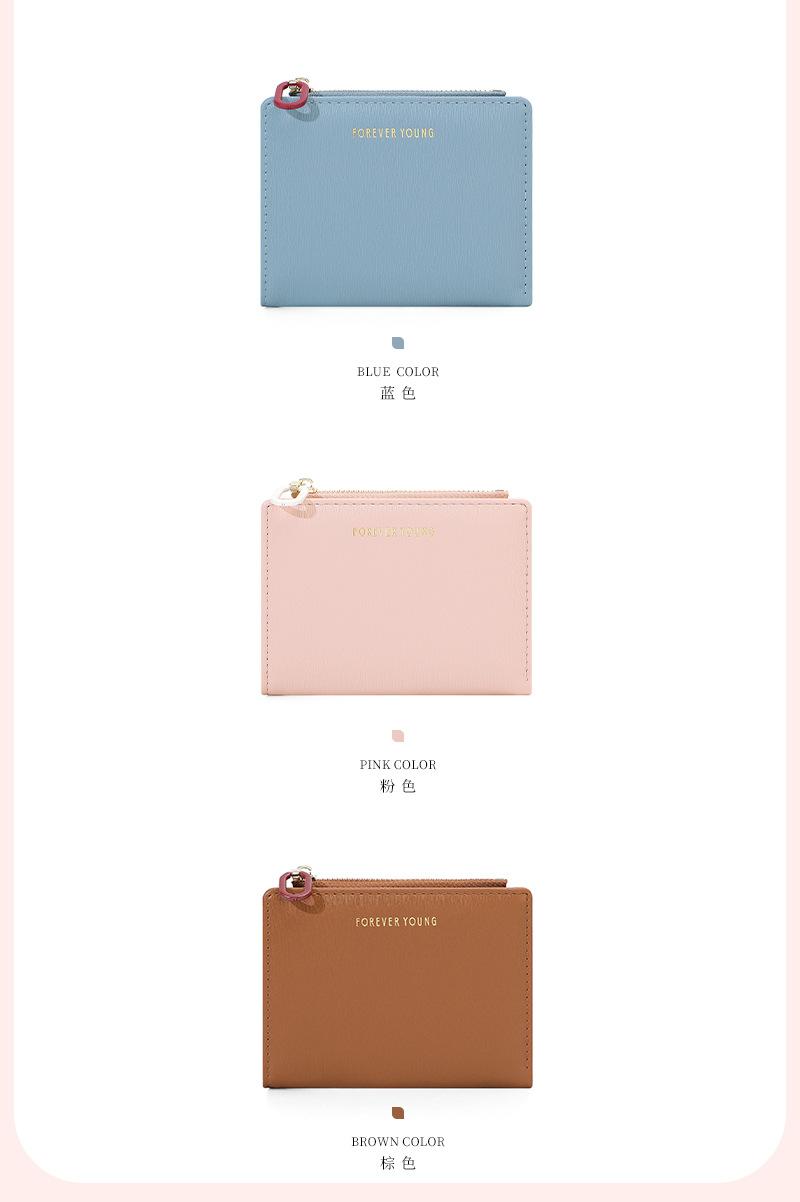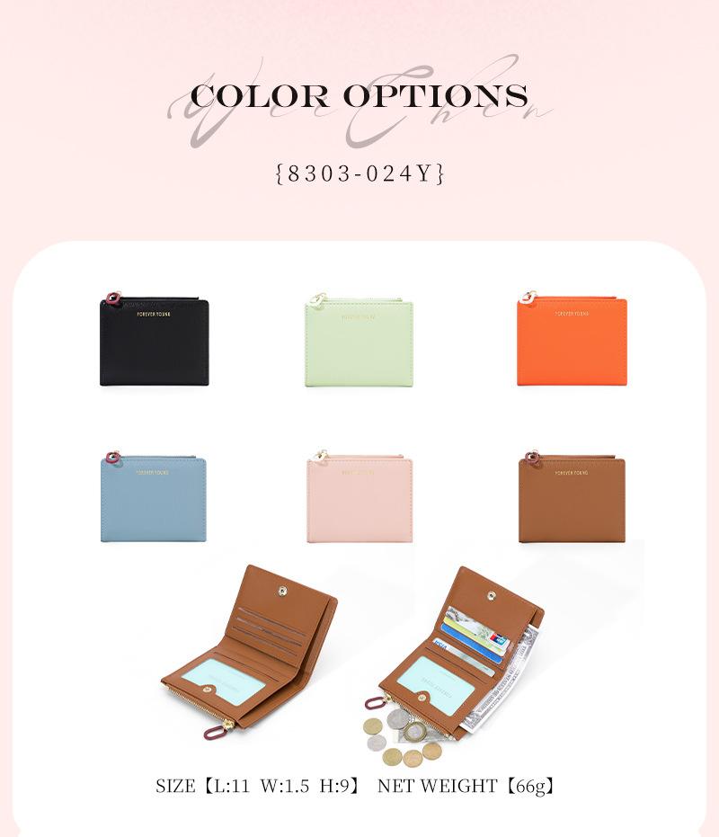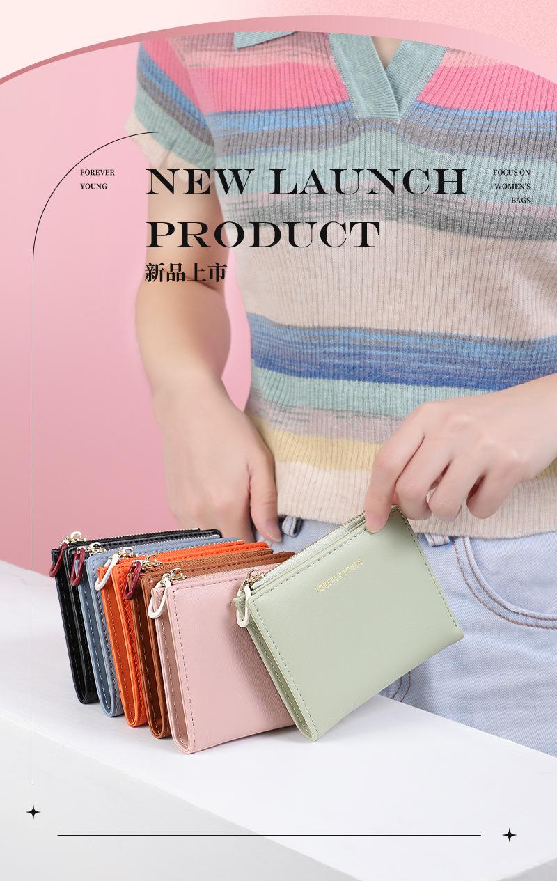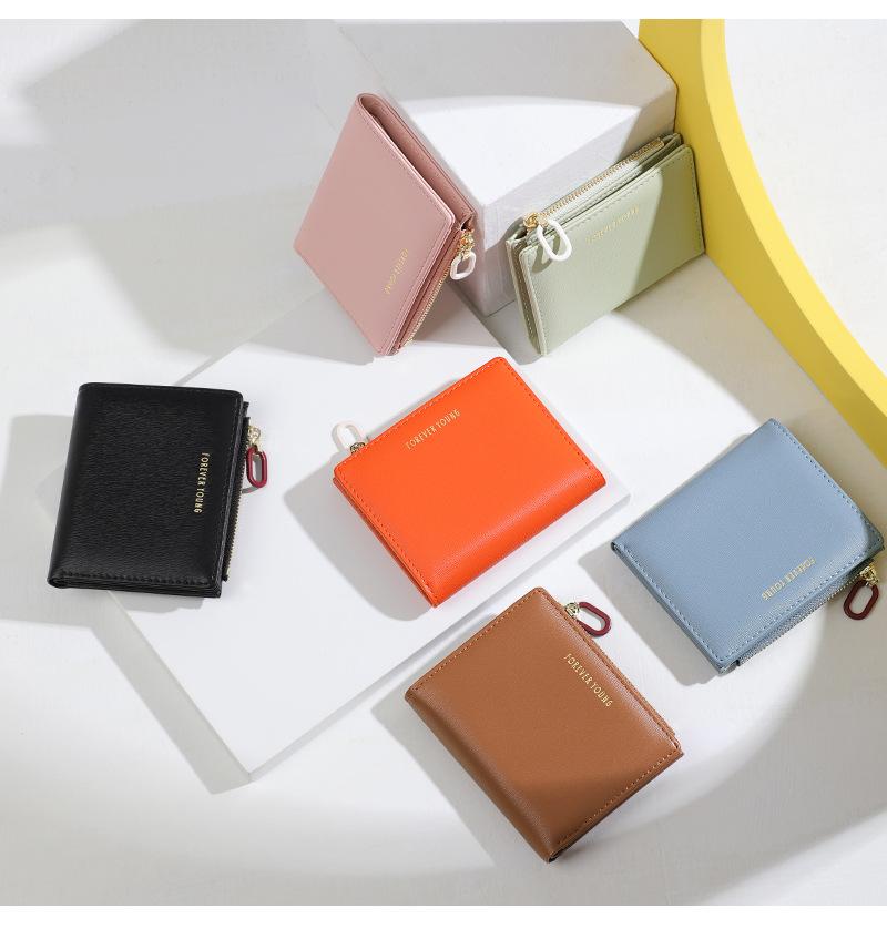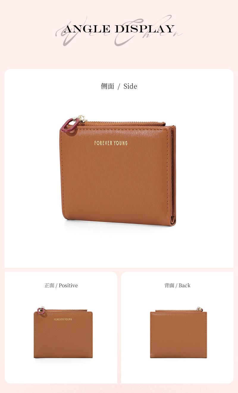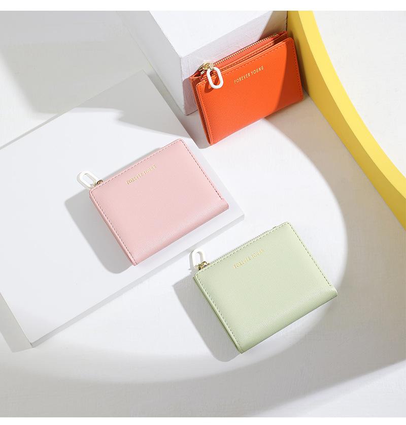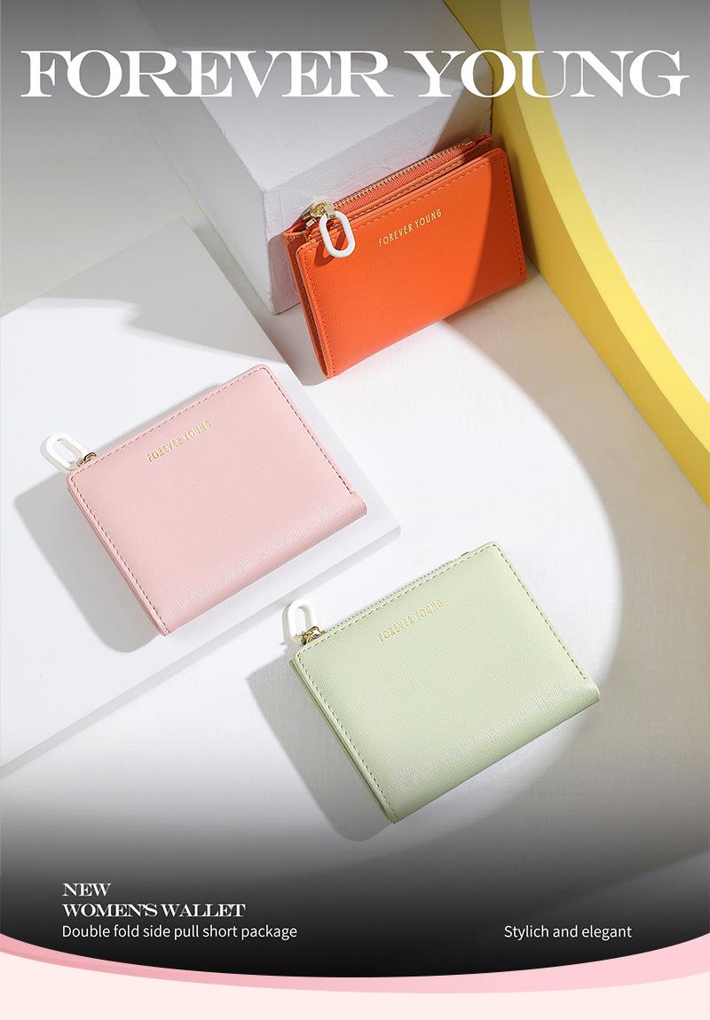 Cartera para mujer Forever Young, con cremallera corta, tarjetero de PU con borde cruzado, monedero de color liso