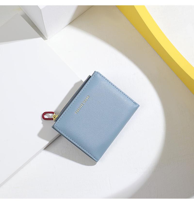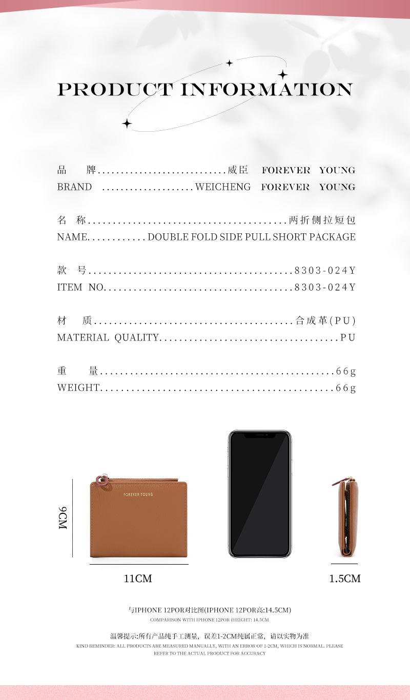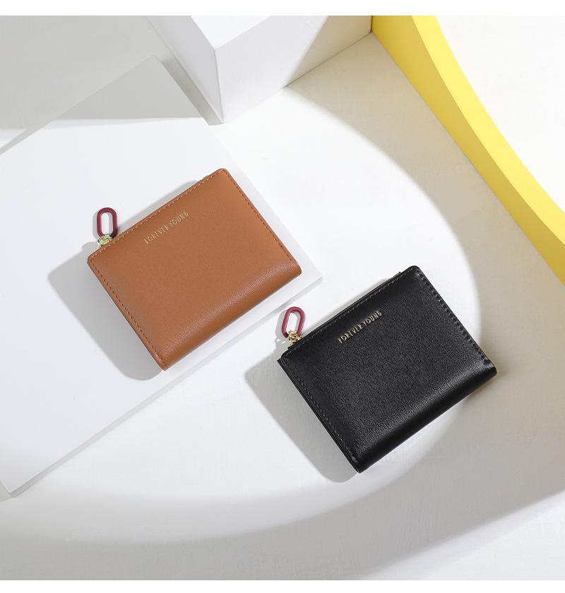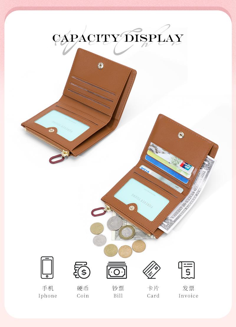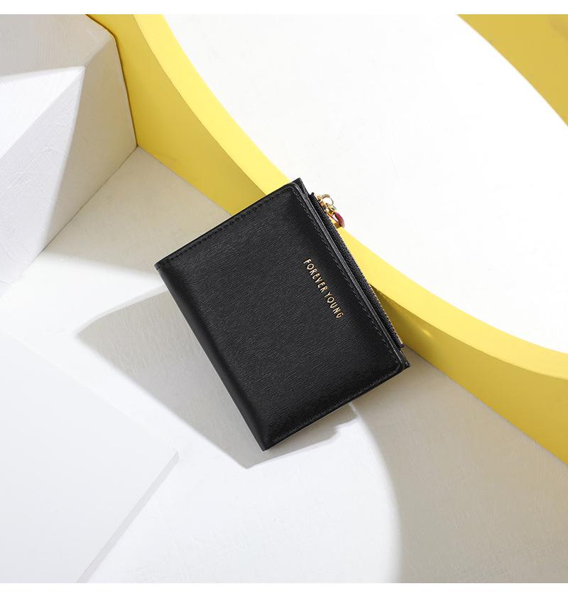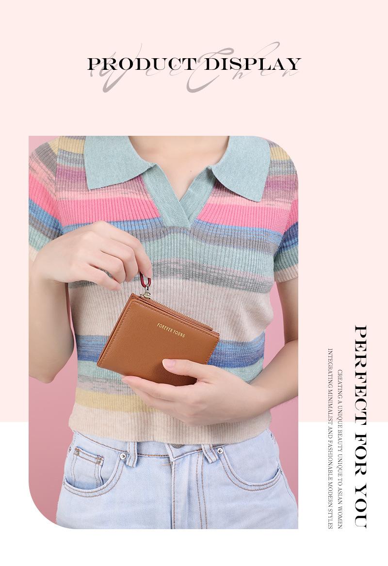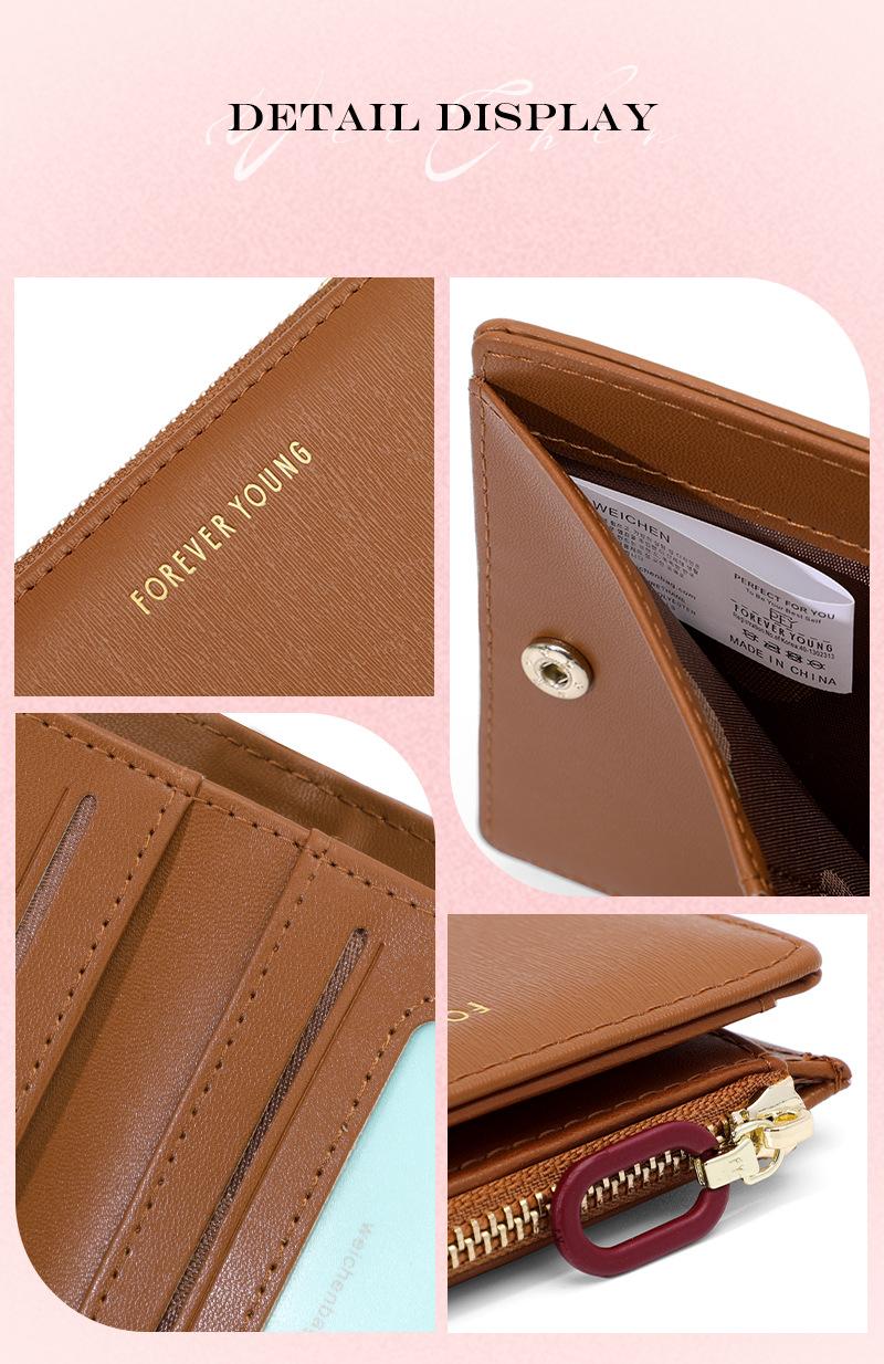 Cartera para mujer Forever Young, con cremallera corta, tarjetero de PU con borde cruzado, monedero de color liso