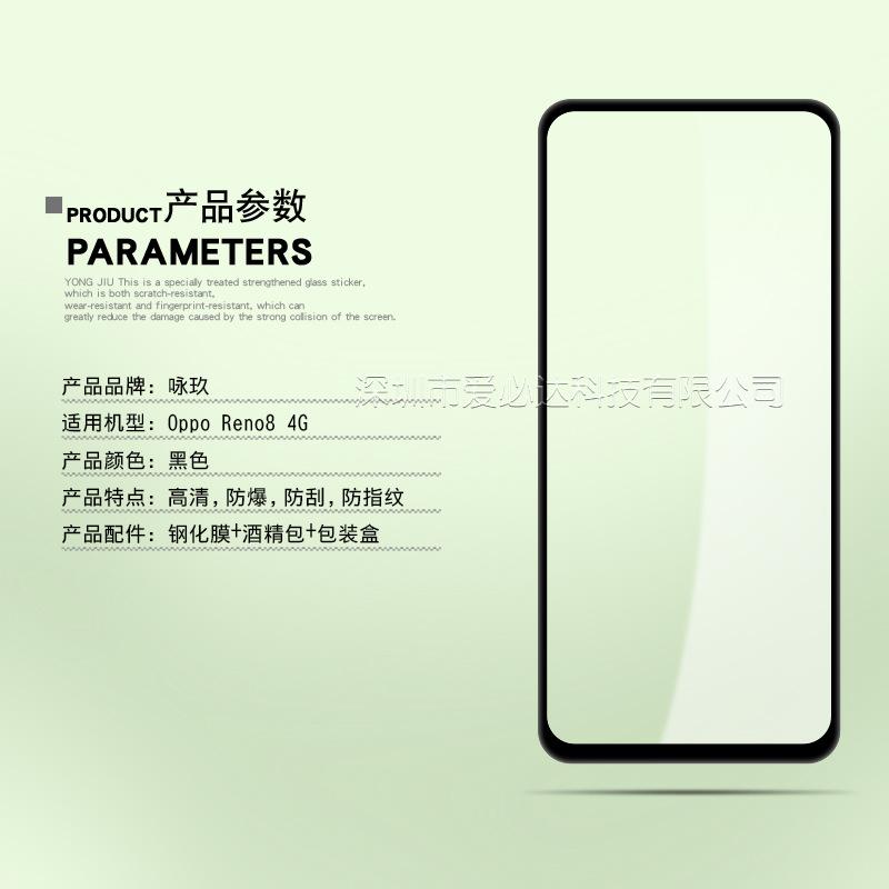Oppo Reno8 4G two strong full glue Black die, Oppo Reno8 4G two strong full Glue black belt packaging