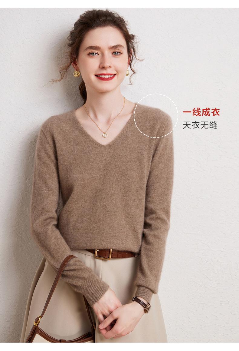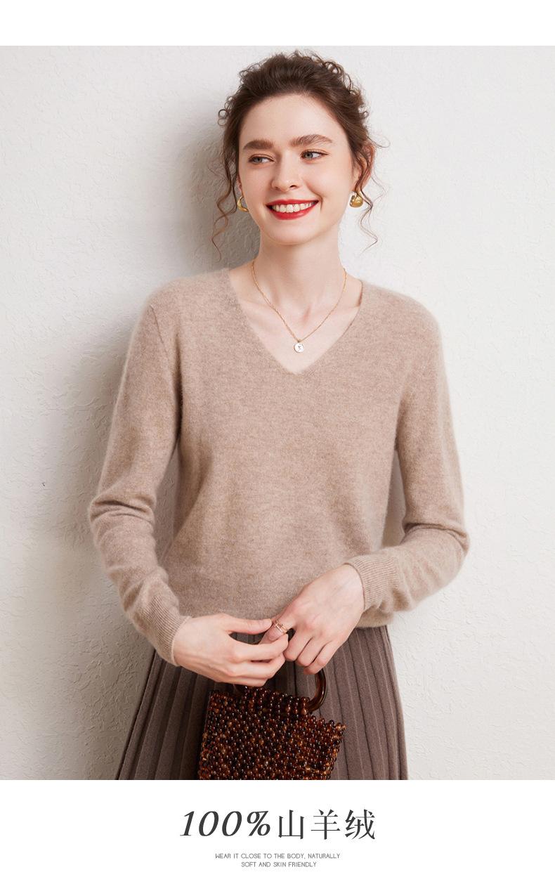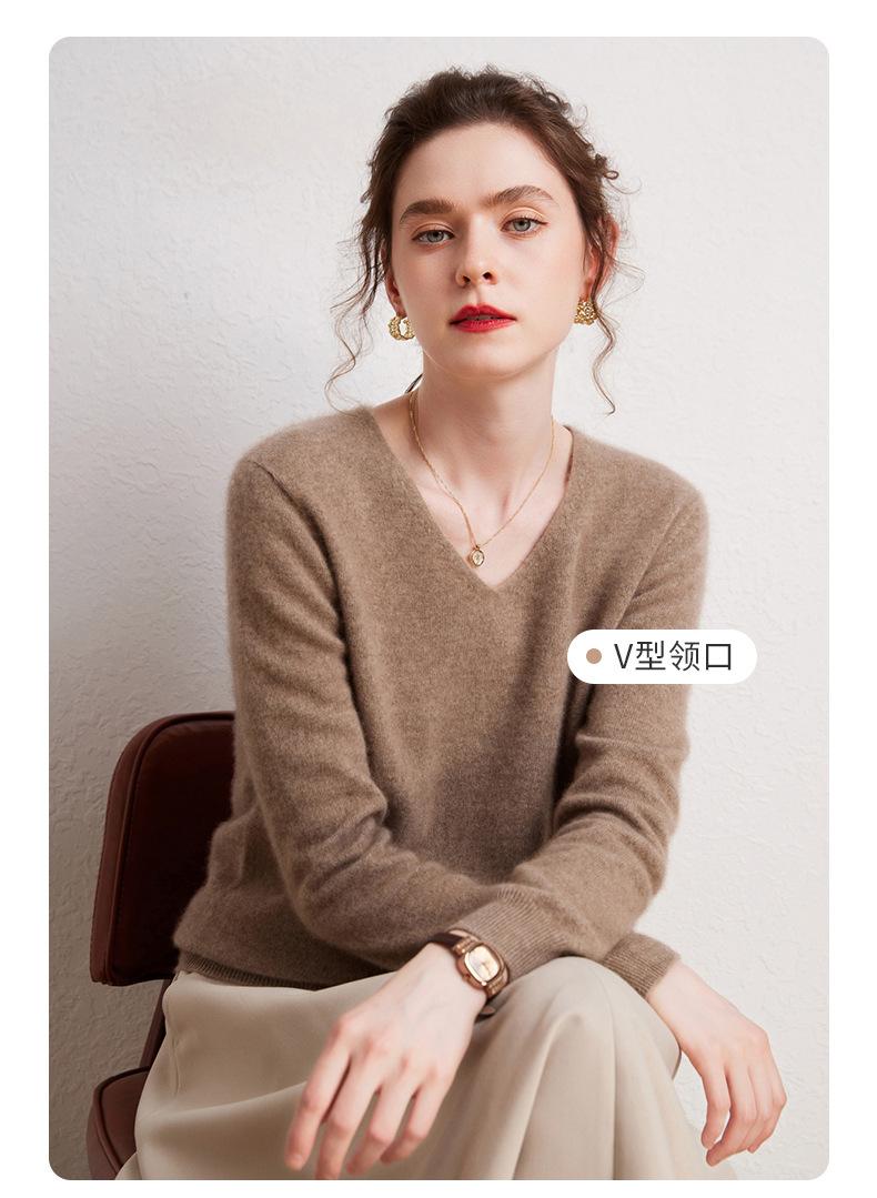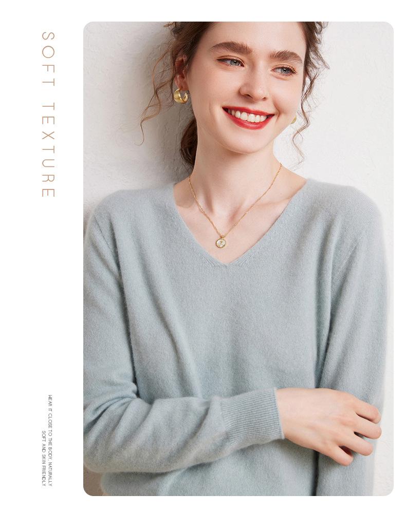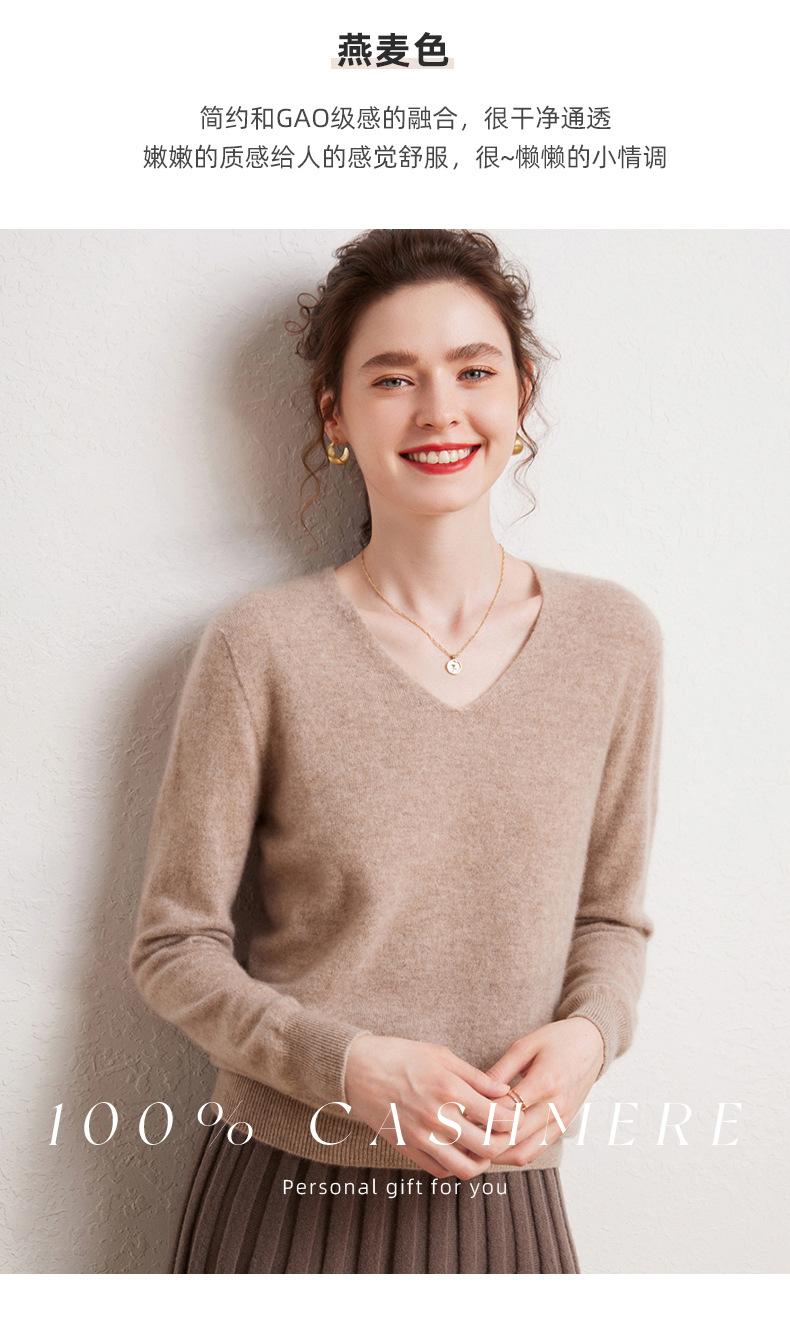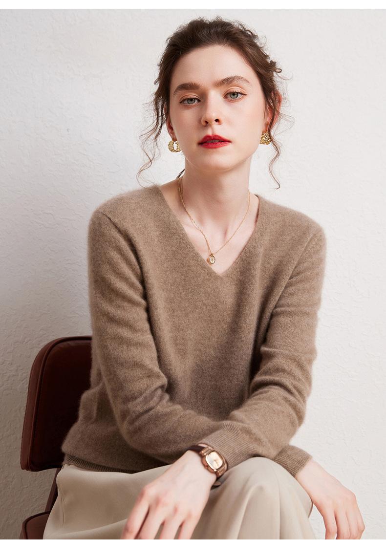 Suéter 100% cachemira pura para mujer, cuello en V, sin costuras, color sólido, de punto, camisa corta, cálida, otoño e invierno, nuevo suéter