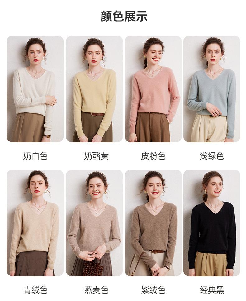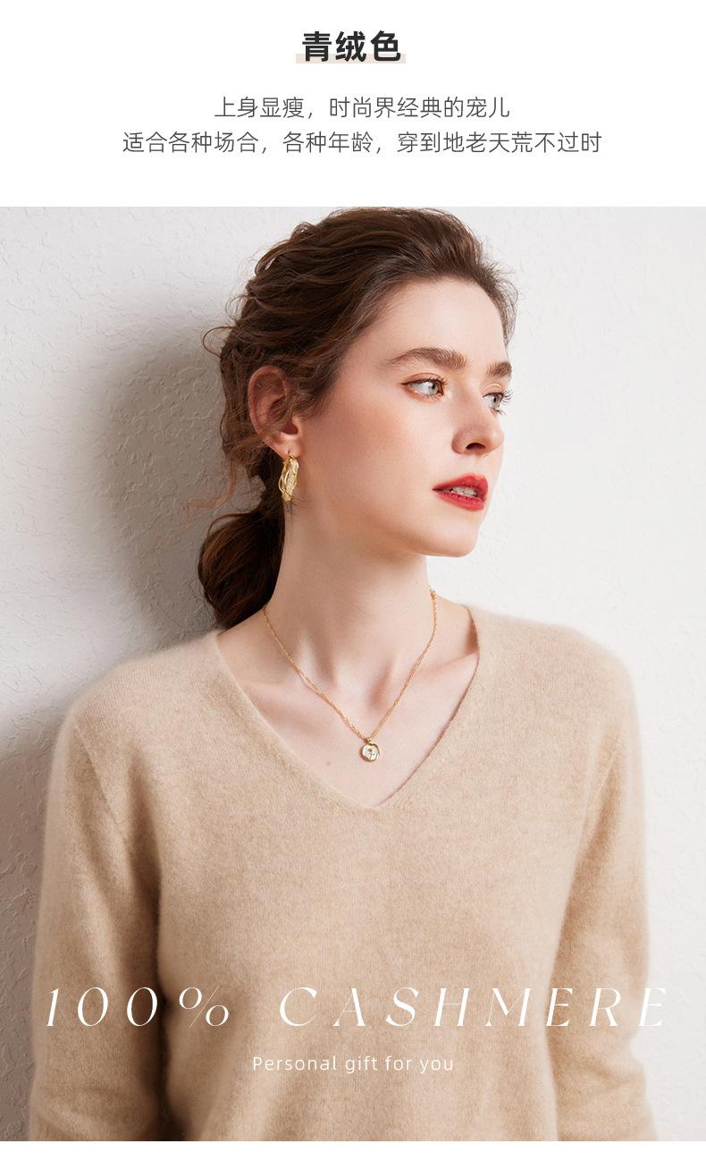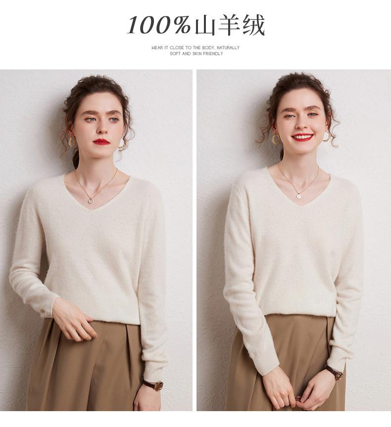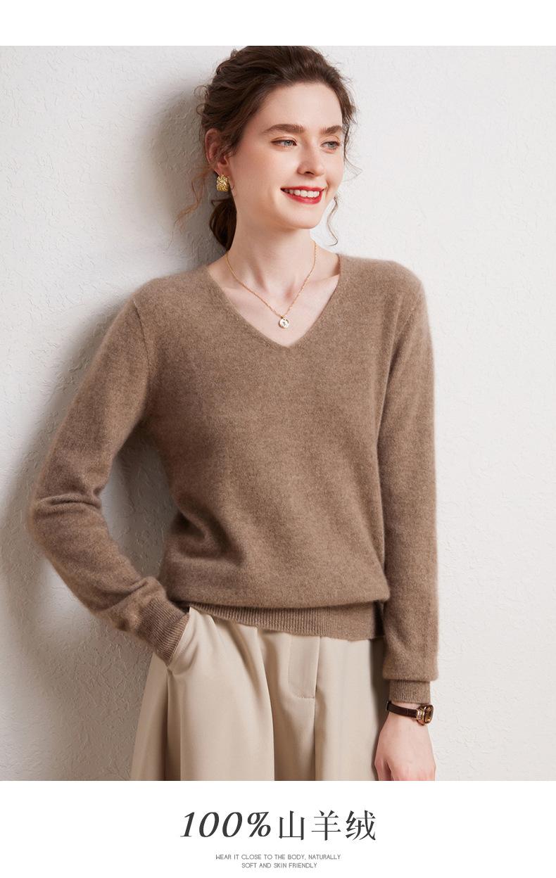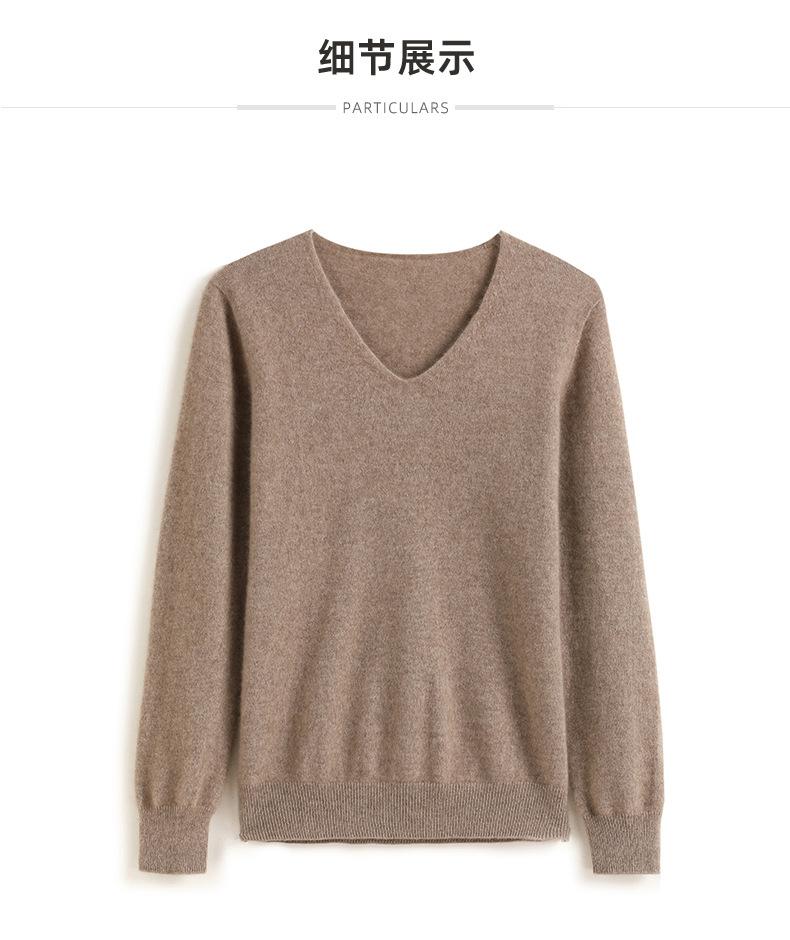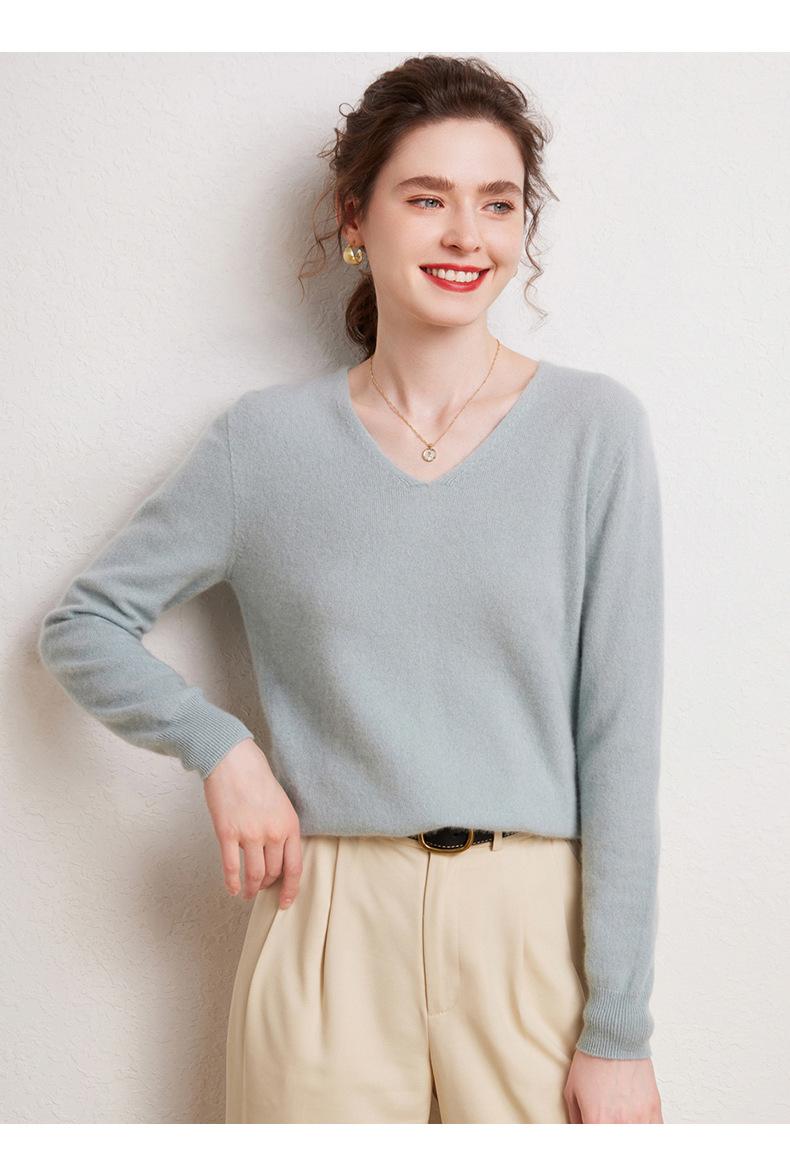 Suéter 100% cachemira pura para mujer, cuello en V, sin costuras, color sólido, de punto, camisa corta, cálida, otoño e invierno, nuevo suéter
