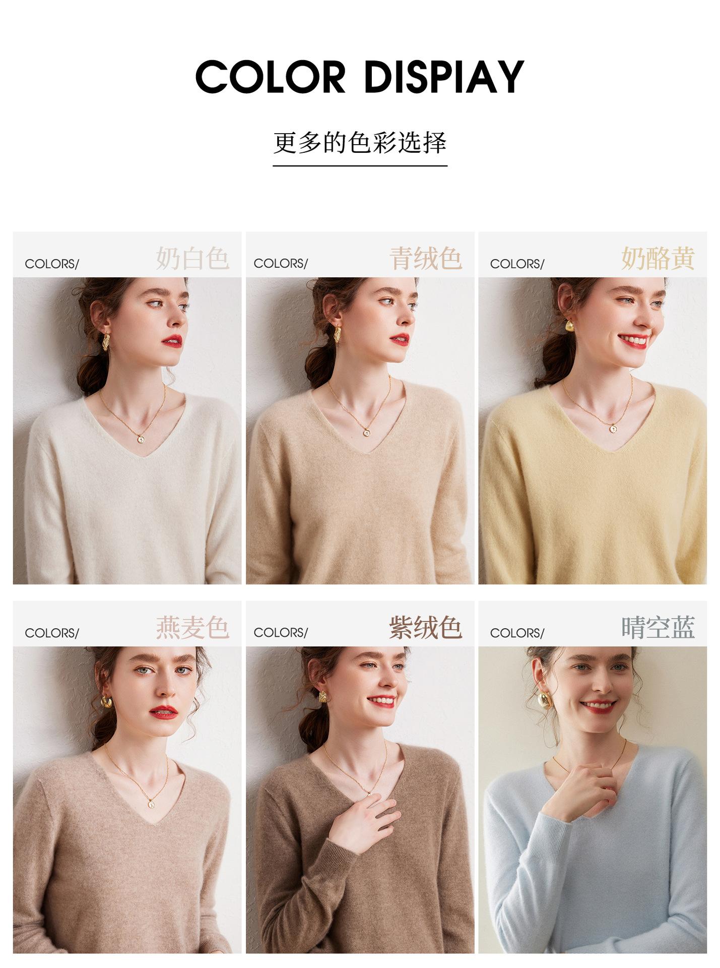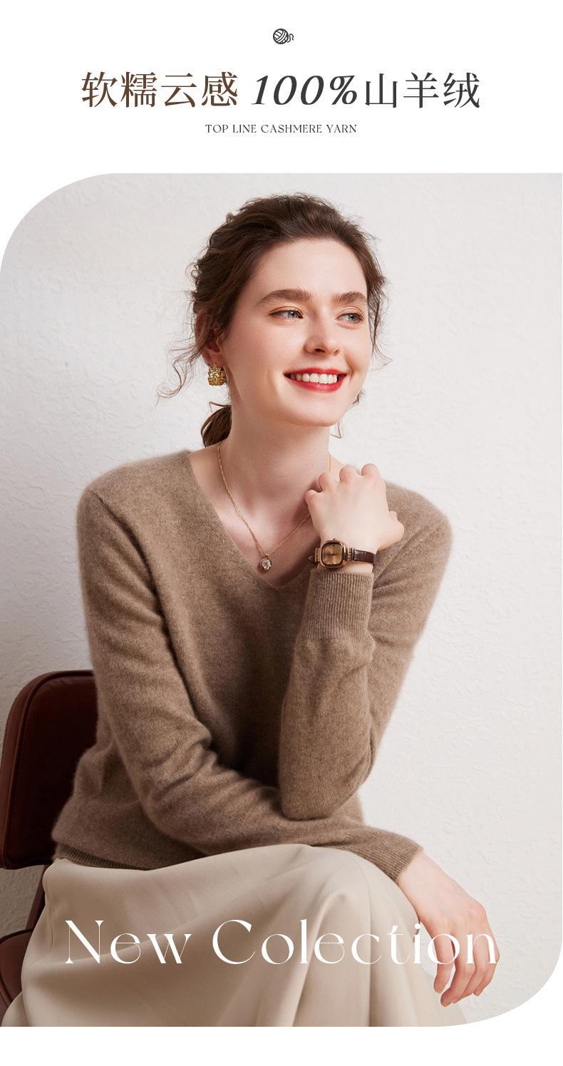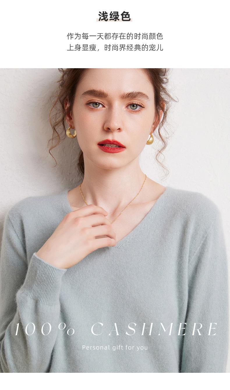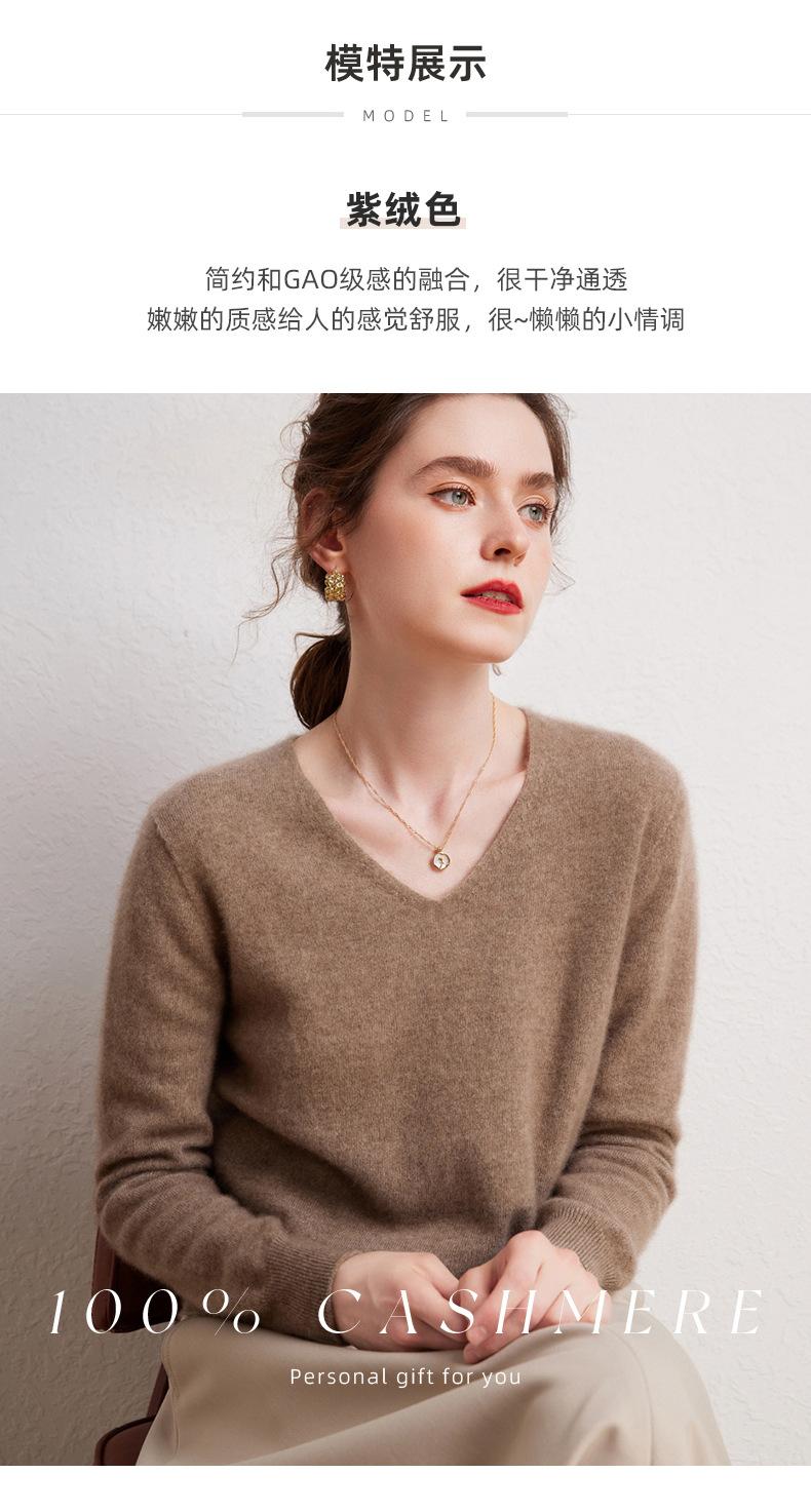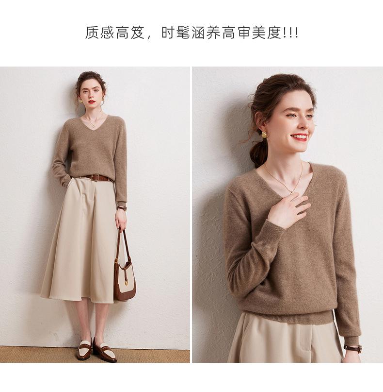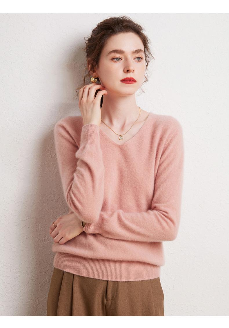 Suéter 100% cachemira pura para mujer, cuello en V, sin costuras, color sólido, de punto, camisa corta, cálida, otoño e invierno, nuevo suéter