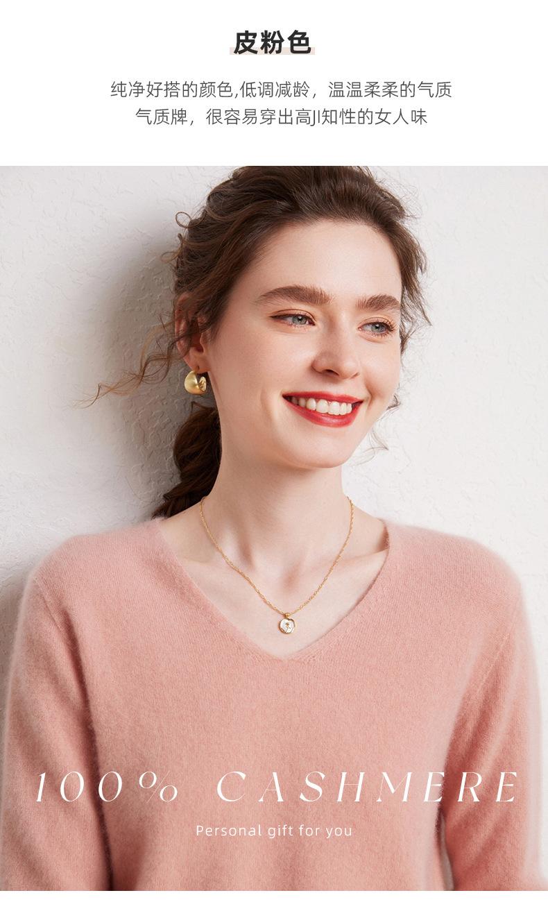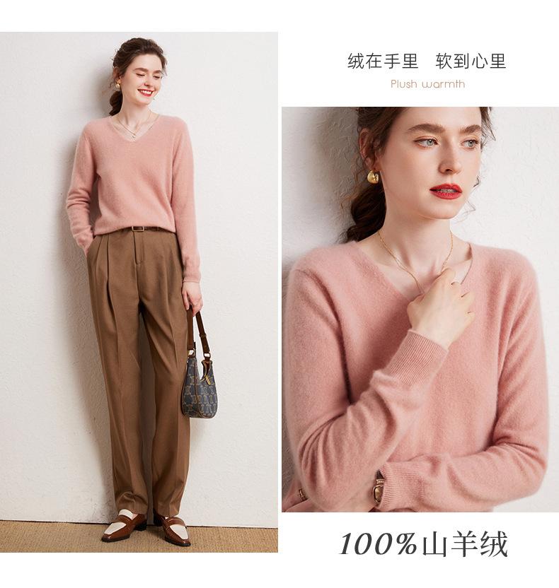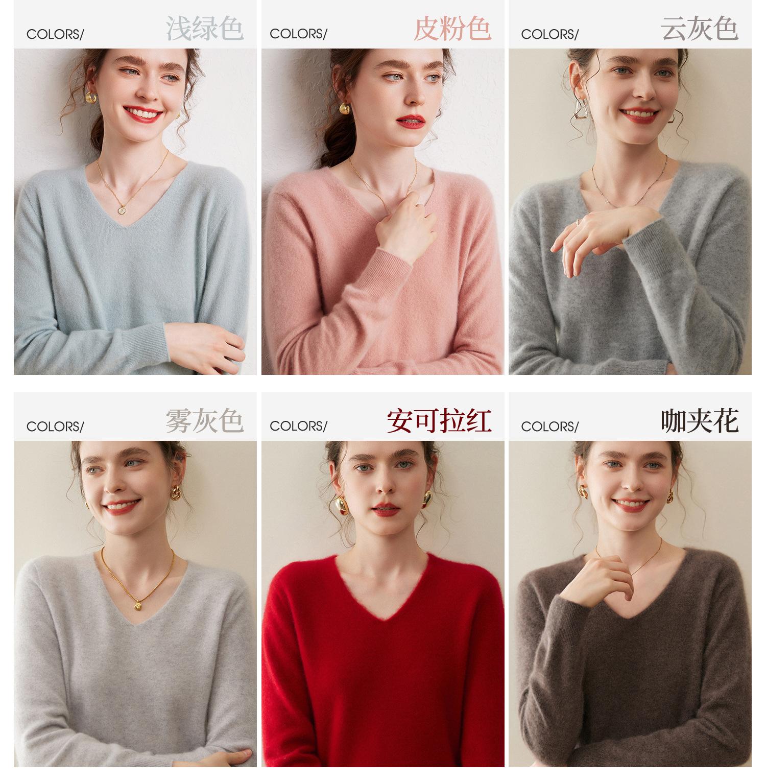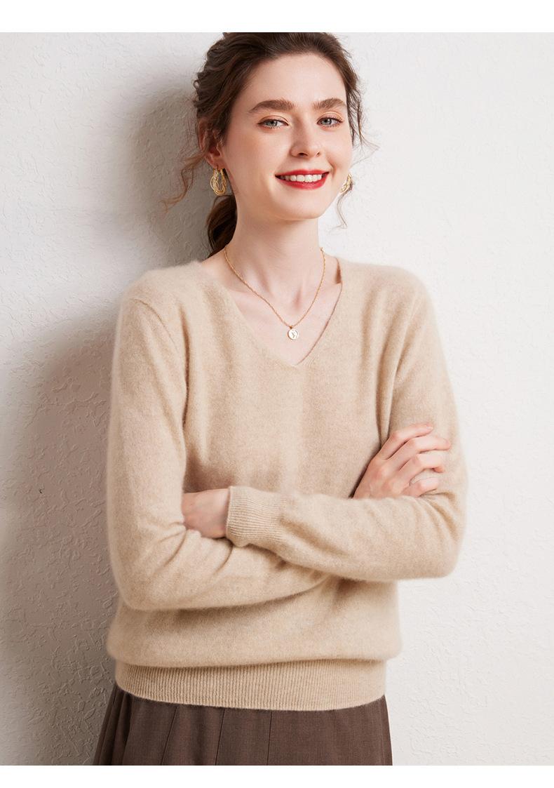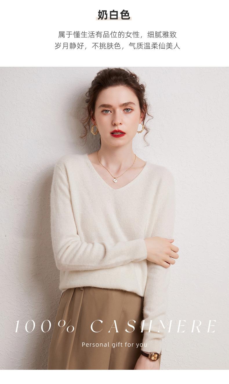 Suéter 100% cachemira pura para mujer, cuello en V, sin costuras, color sólido, de punto, camisa corta, cálida, otoño e invierno, nuevo suéter
