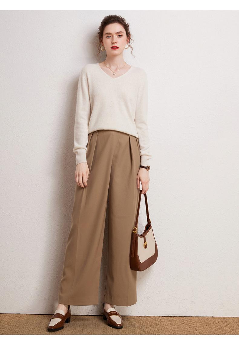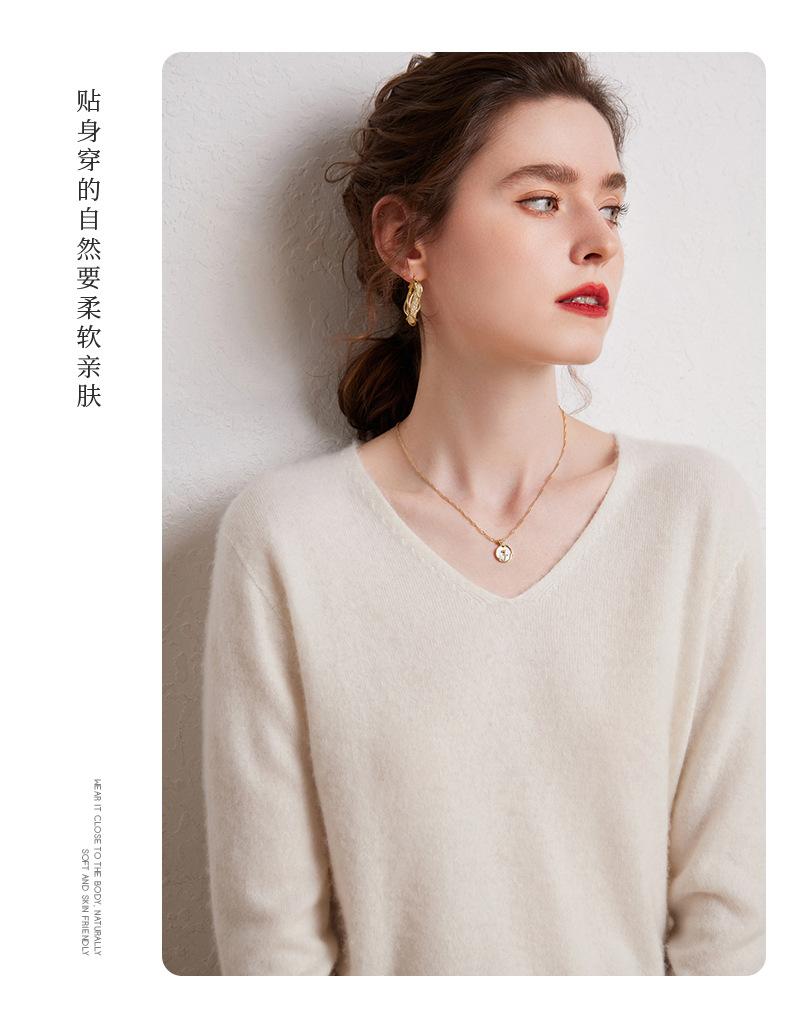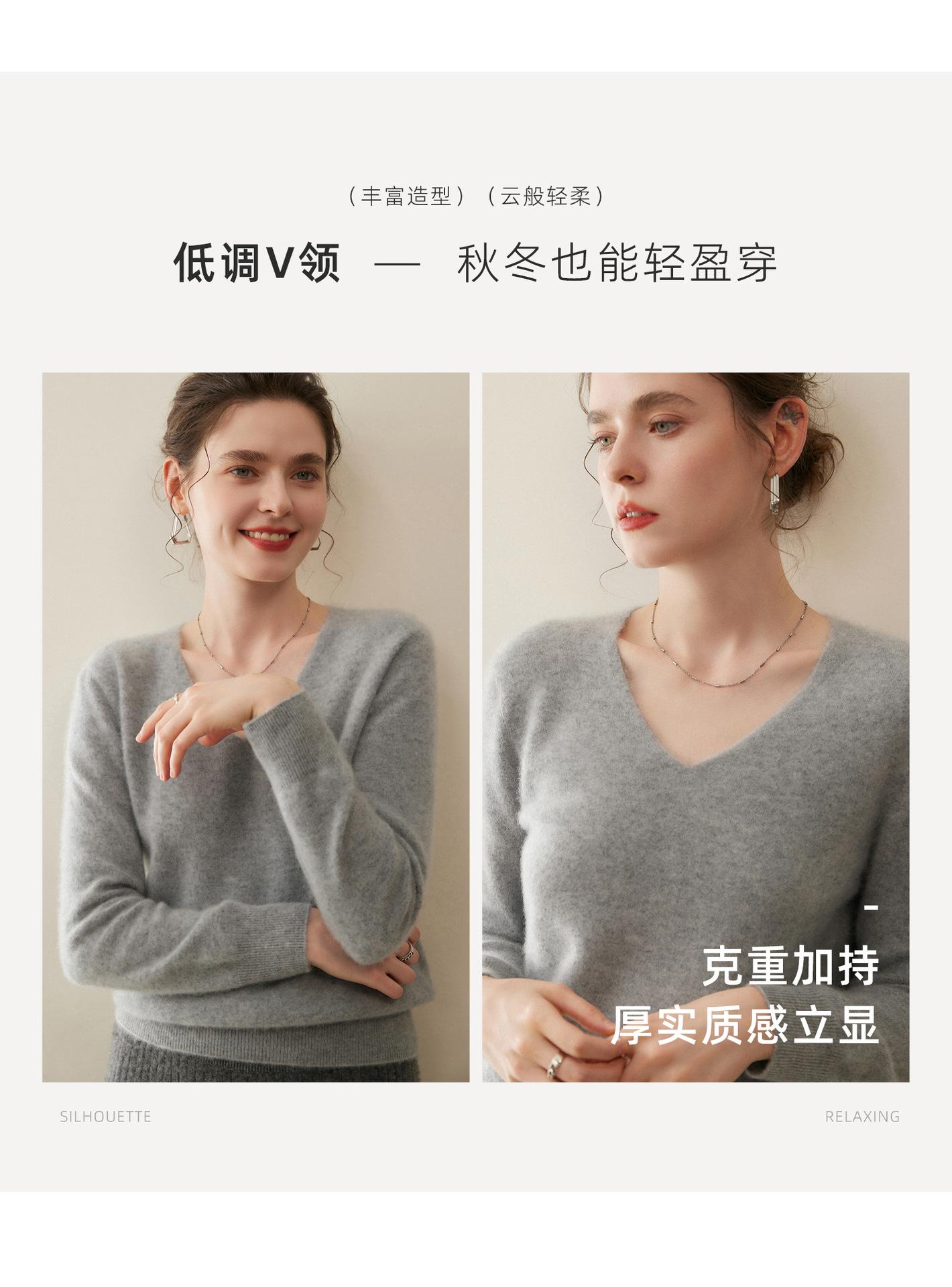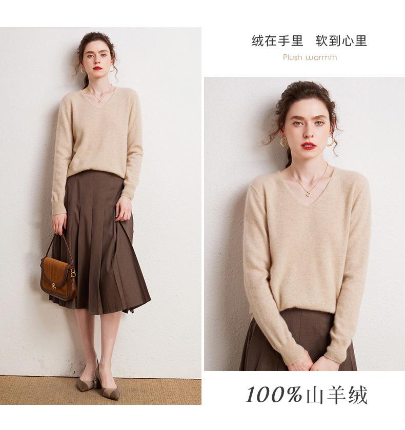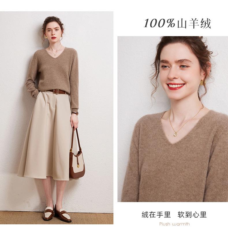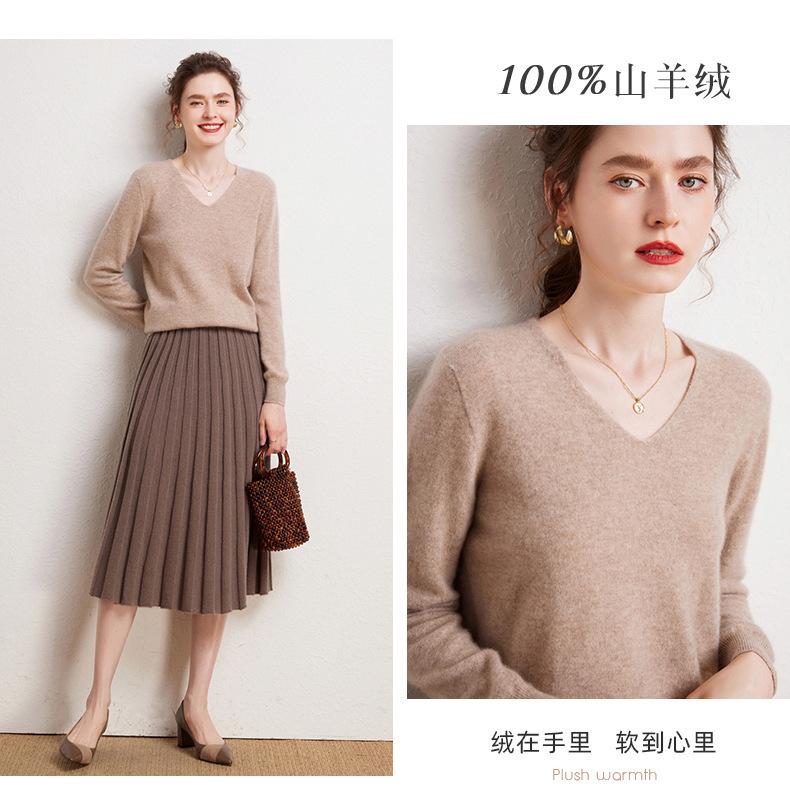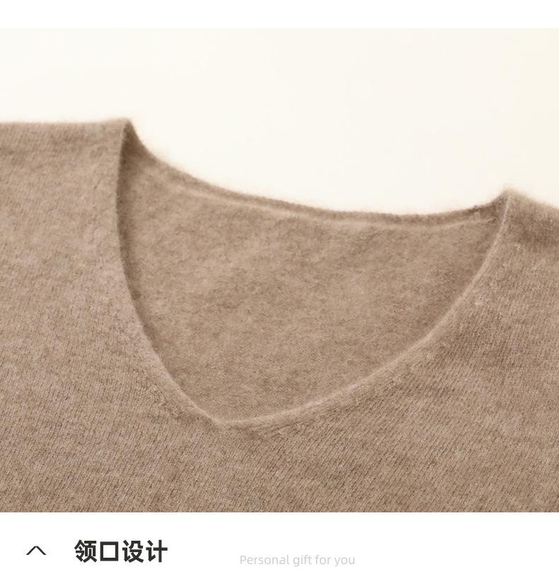 Suéter 100% cachemira pura para mujer, cuello en V, sin costuras, color sólido, de punto, camisa corta, cálida, otoño e invierno, nuevo suéter