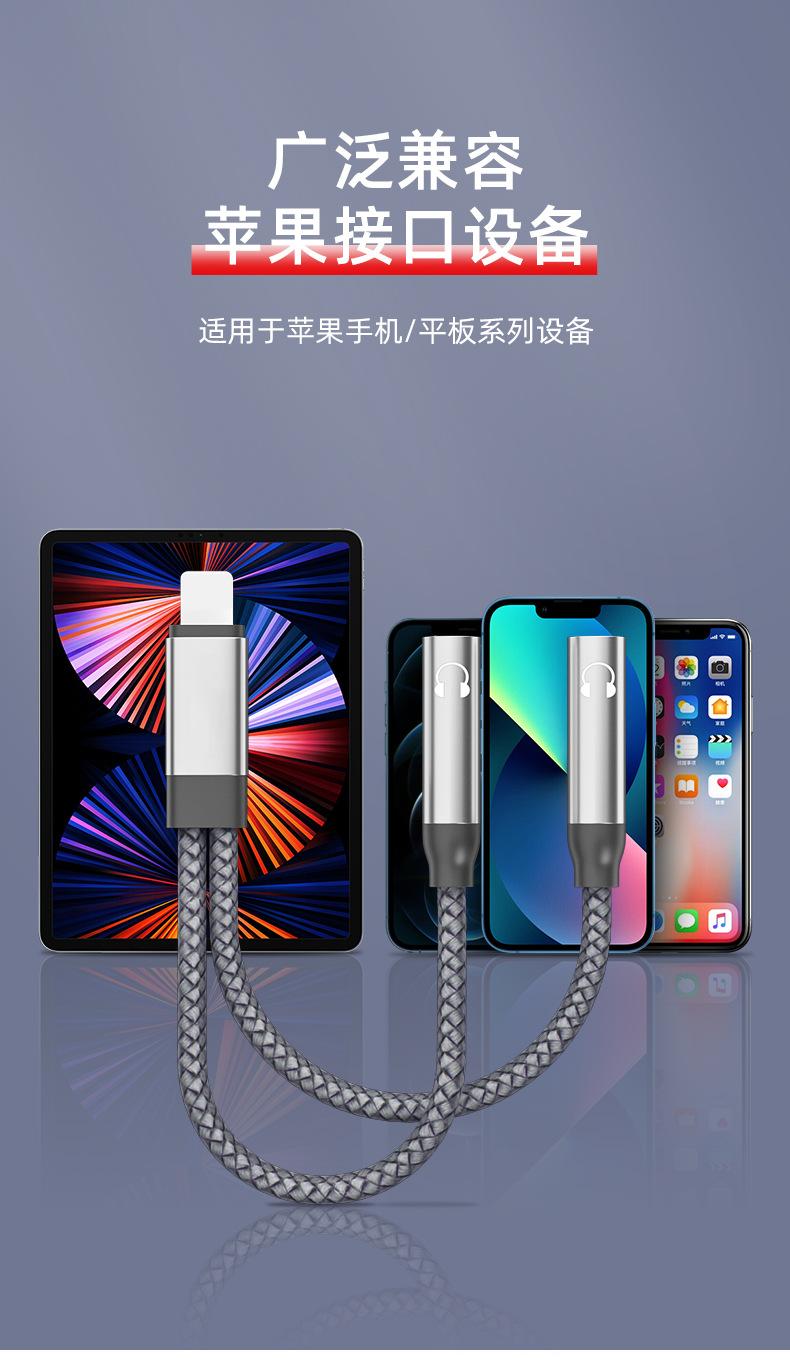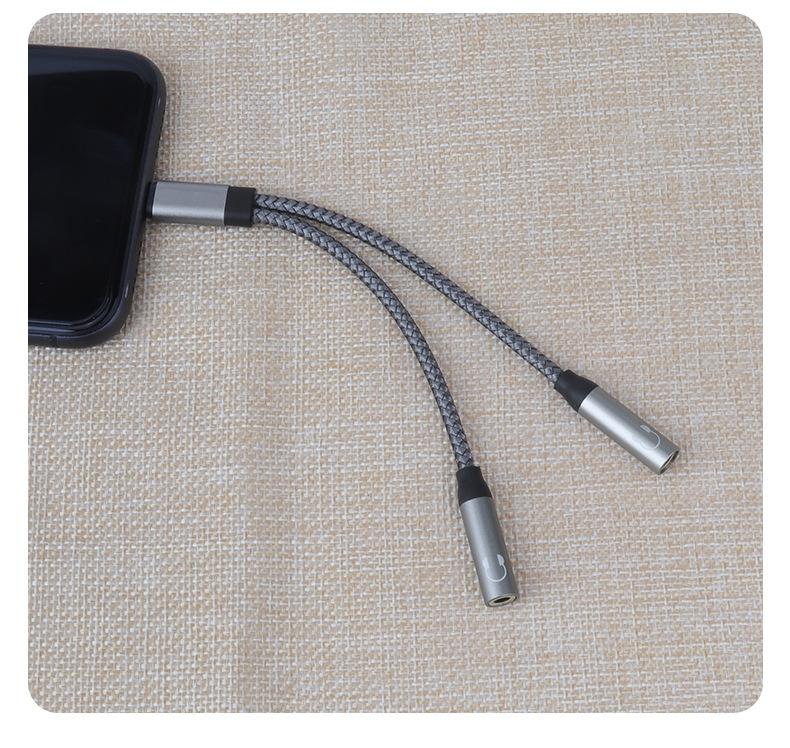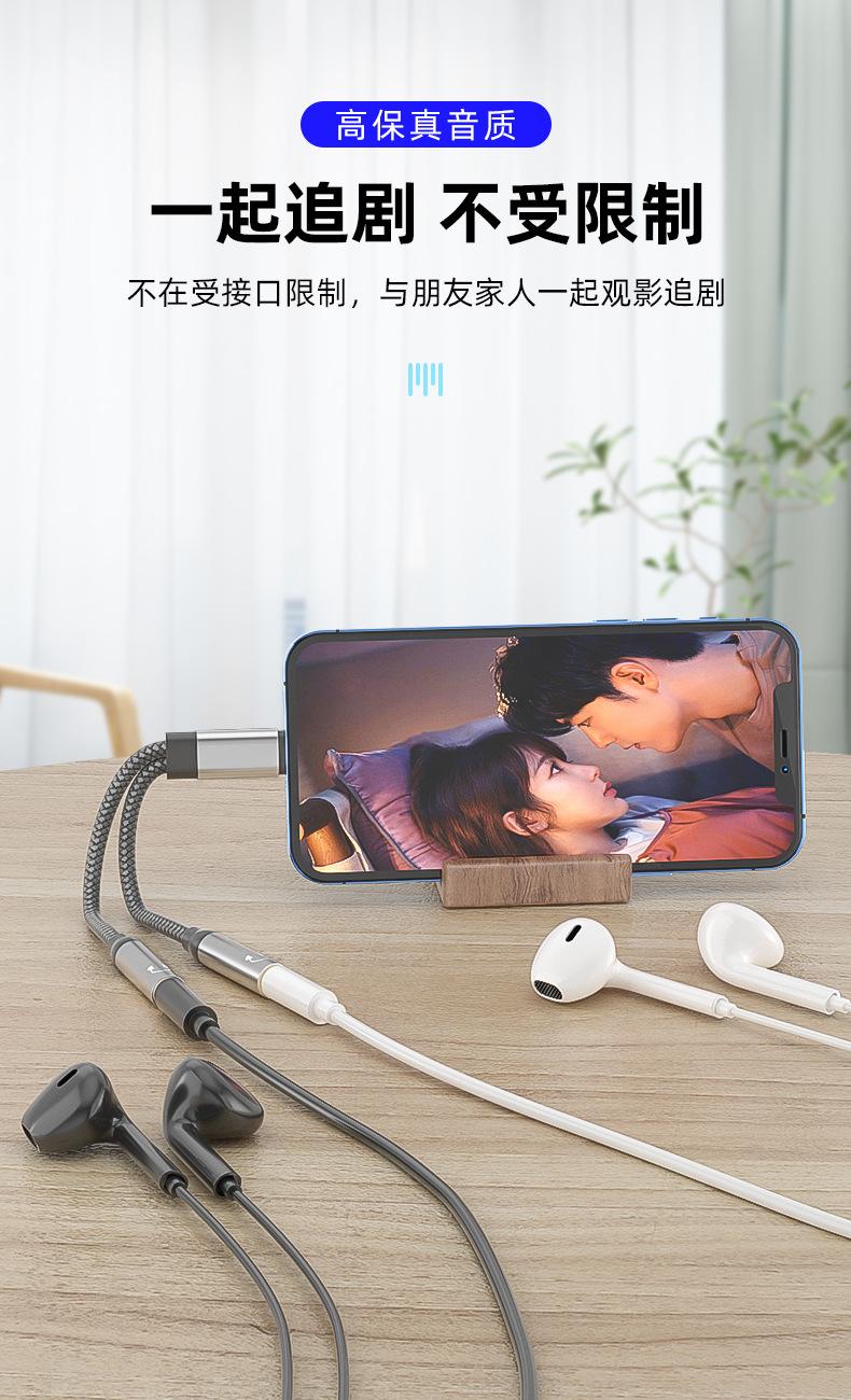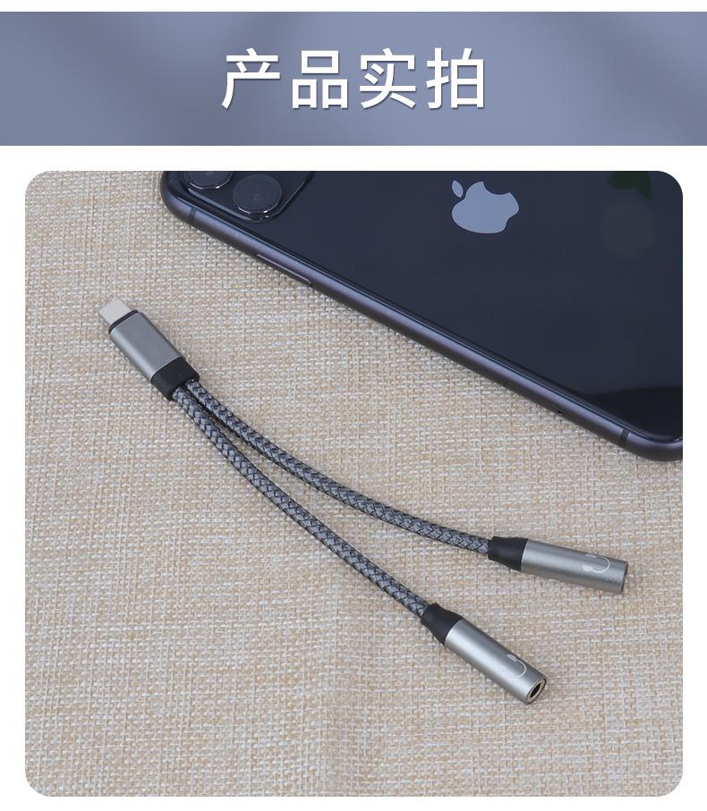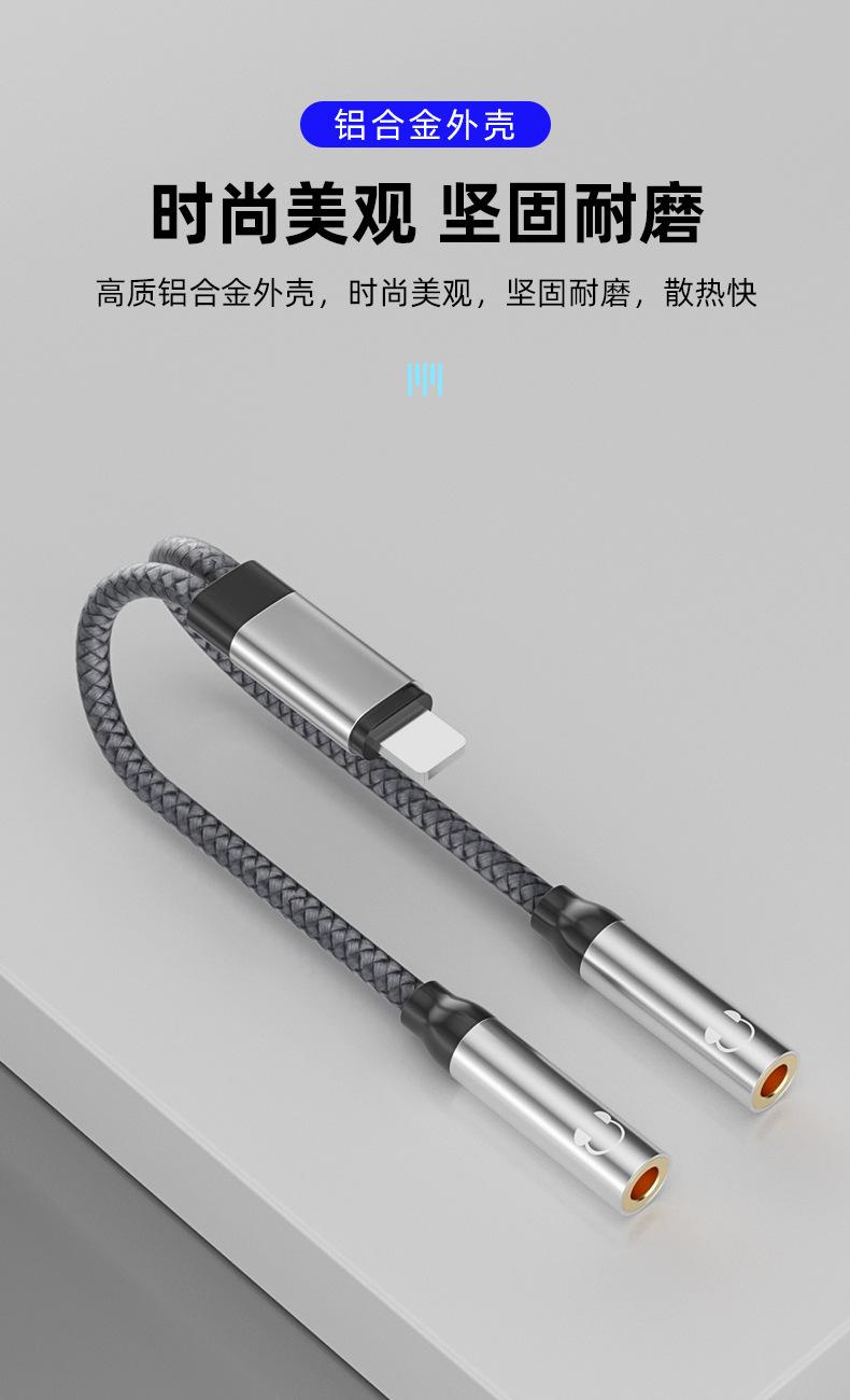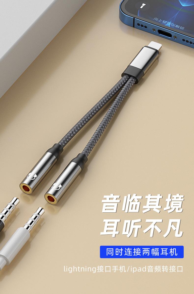 Adecuado para adaptador de teléfono móvil Apple 2 en 1, adaptador Lightning a 3.5, línea de audio para parejas que escuchan canciones