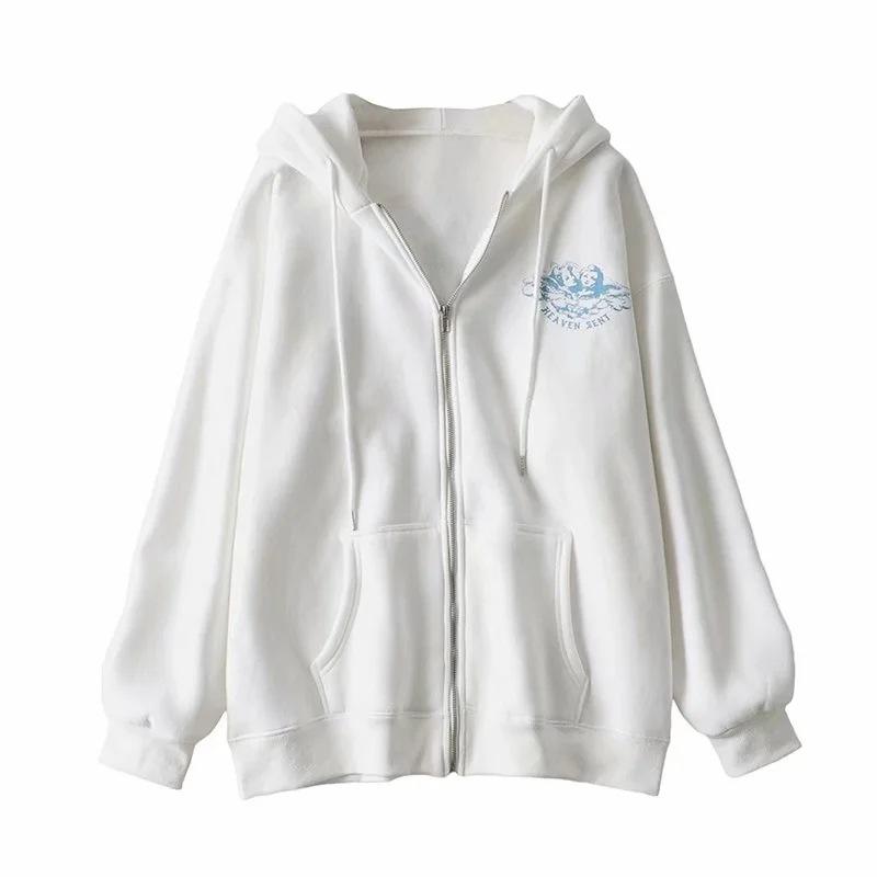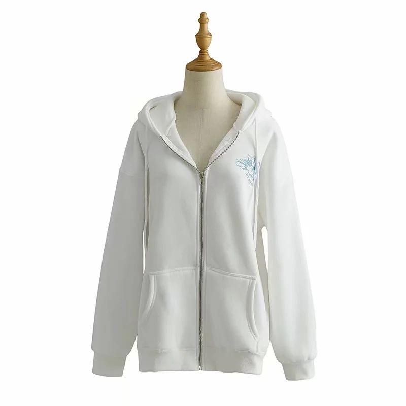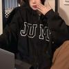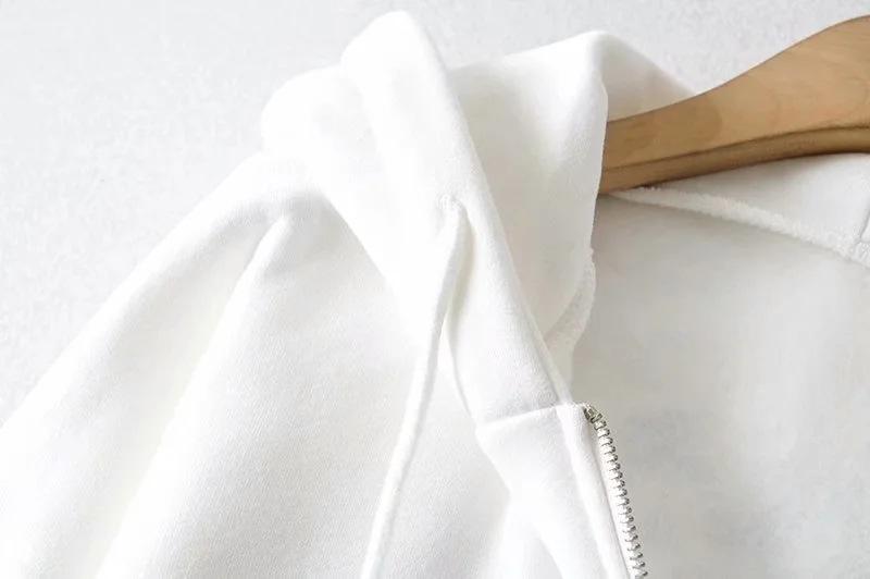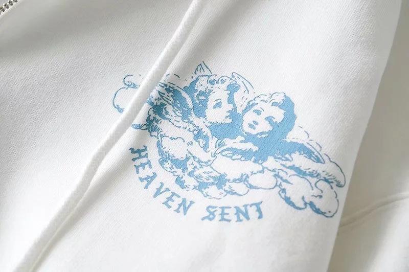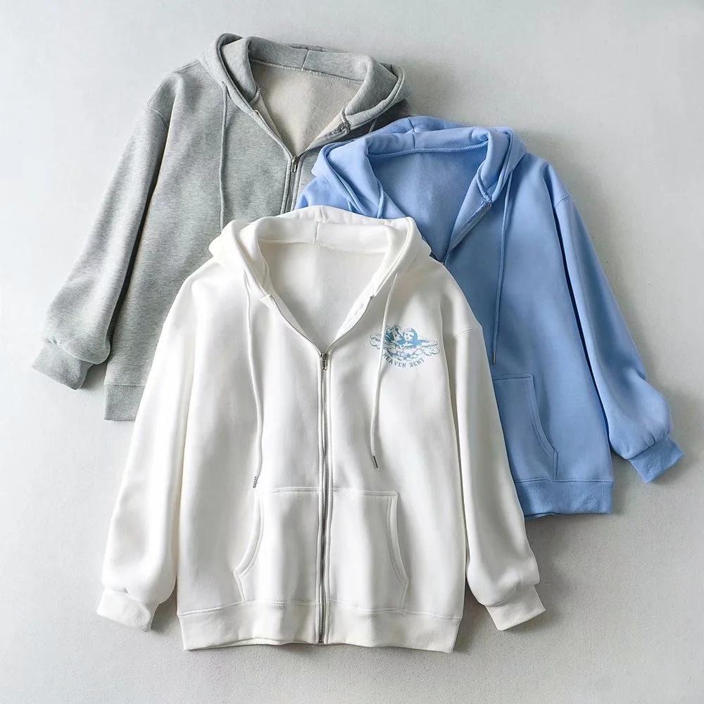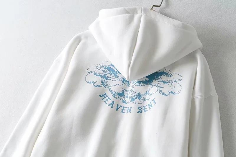 Suéter con capucha y cuello en V para mujer, estilo europeo y americano, holgado, con cremallera y estampado, para otoño e invierno