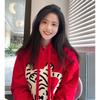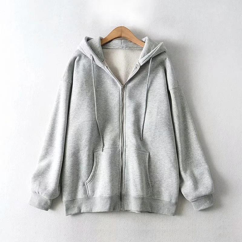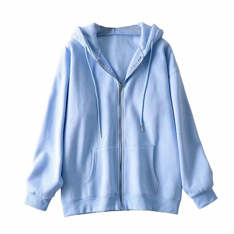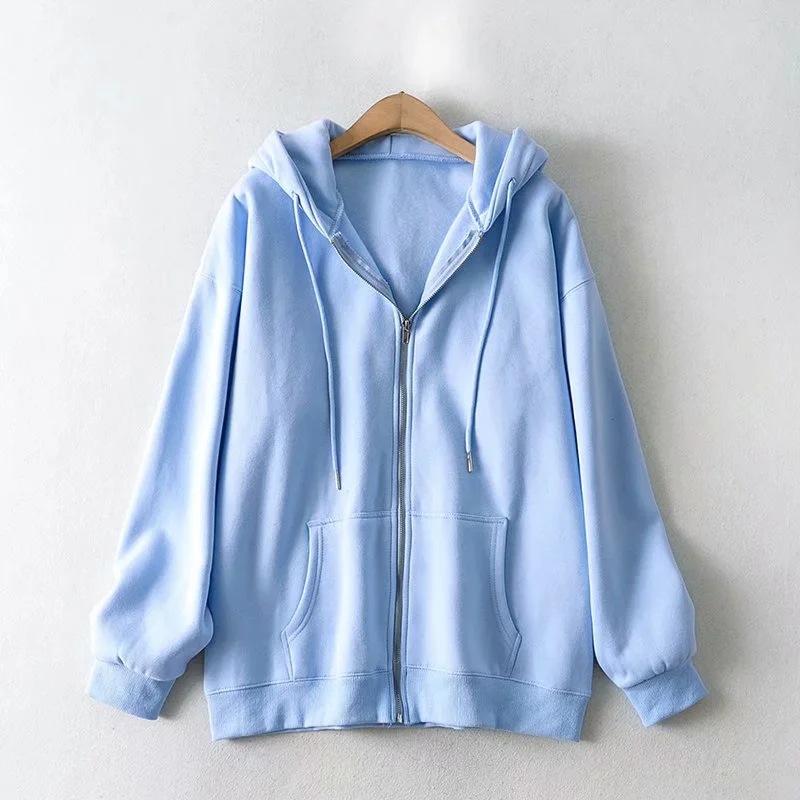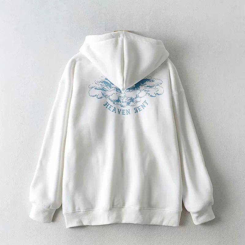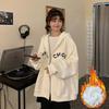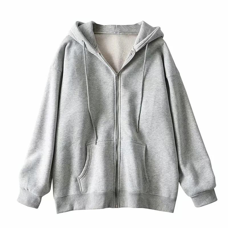 Suéter con capucha y cuello en V para mujer, estilo europeo y americano, holgado, con cremallera y estampado, para otoño e invierno