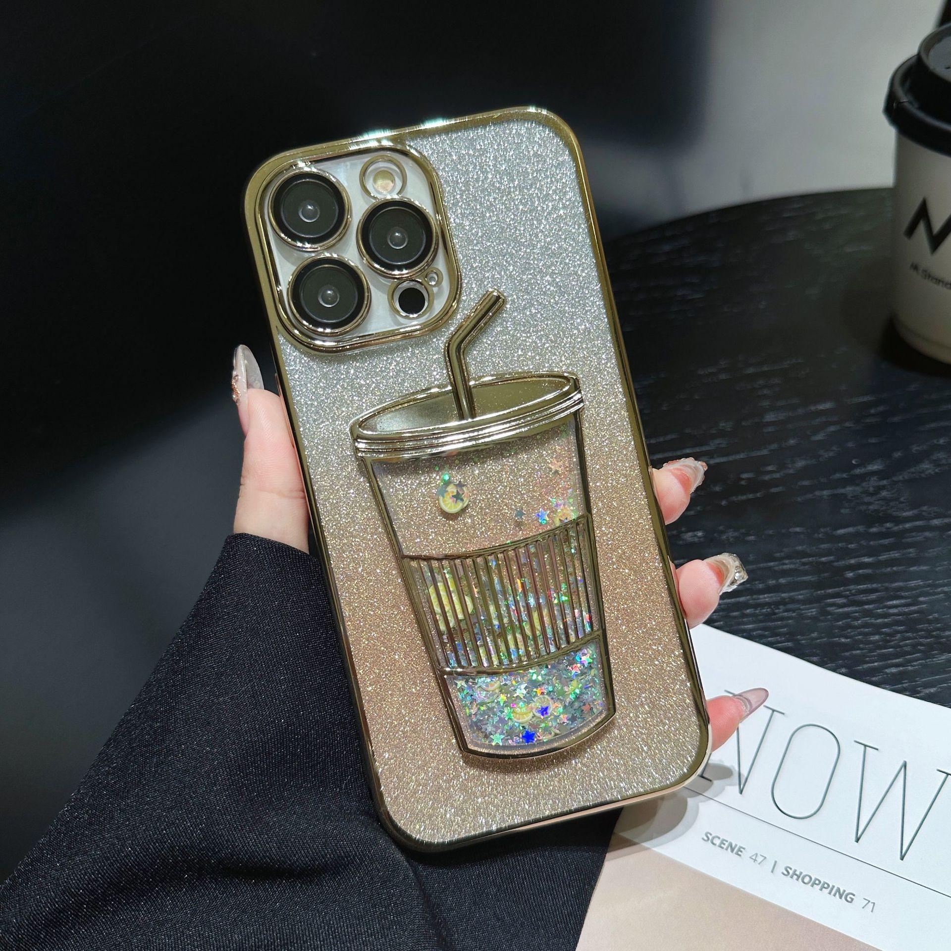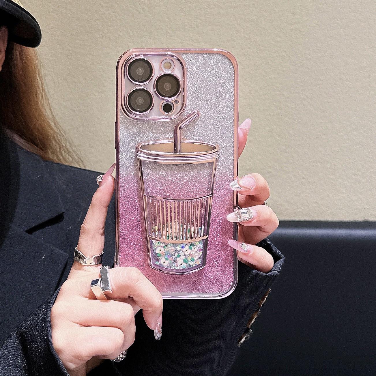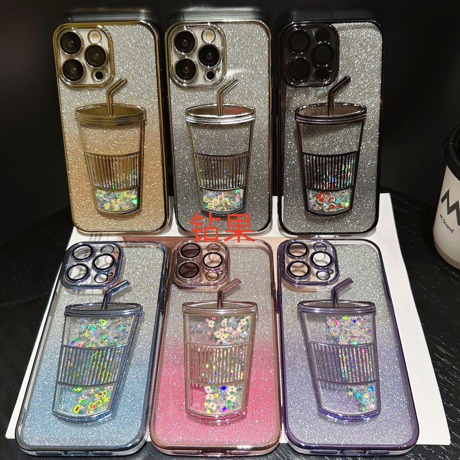 Copa de arena movediza tridimensional adecuada para carcasa de teléfono móvil iPhone15 galvanoplastia de color brillo degradado 14Pro lente funda protectora resistente a caídas 2