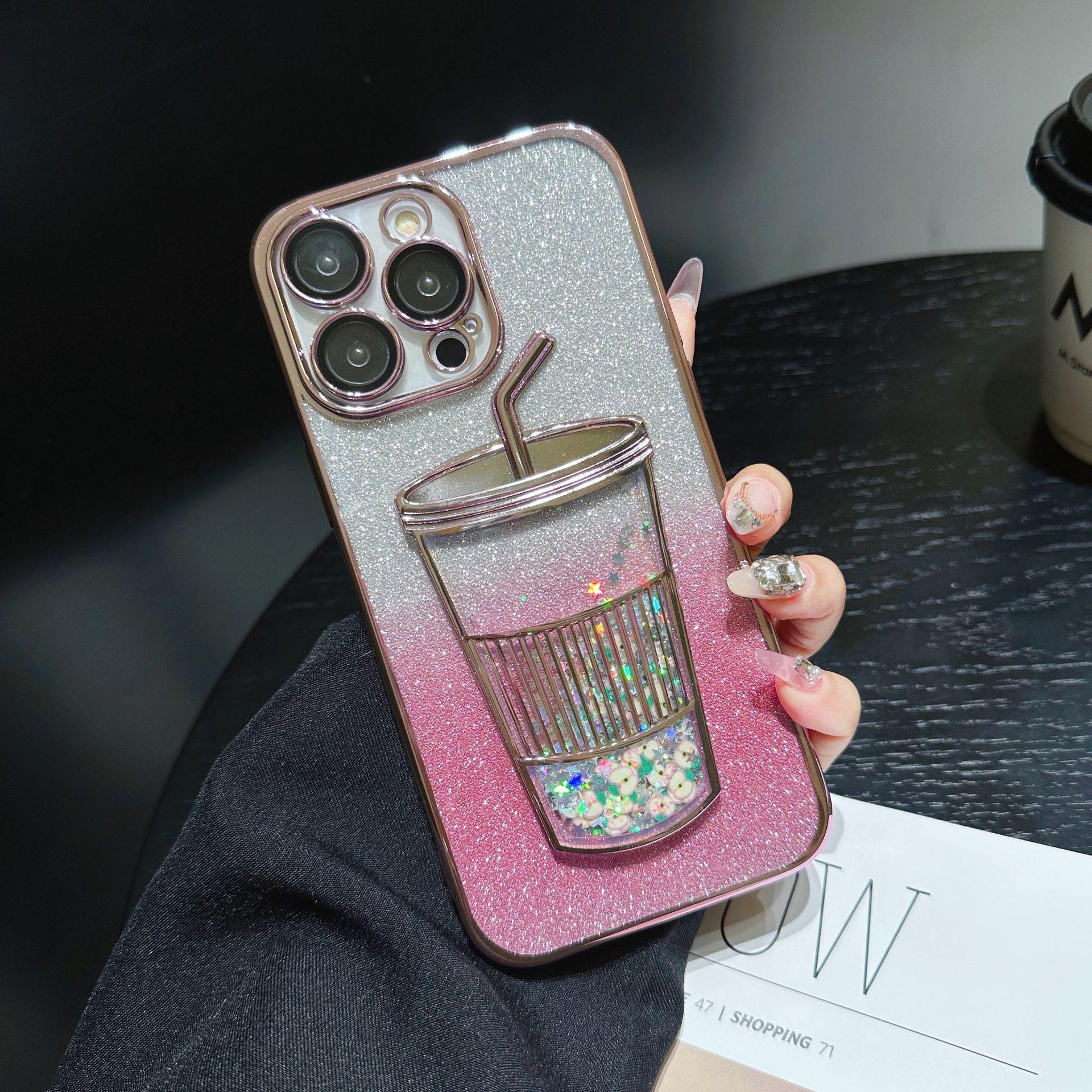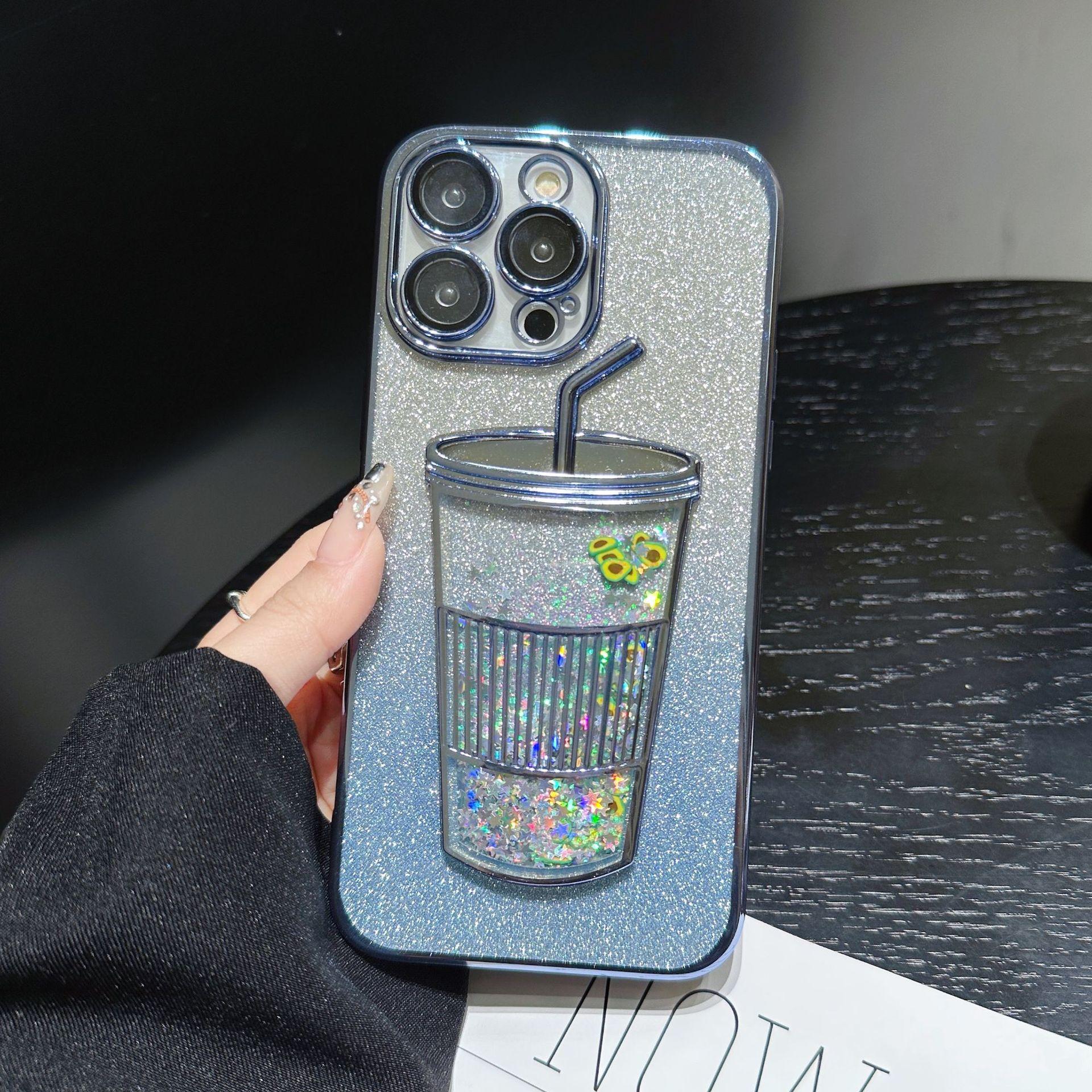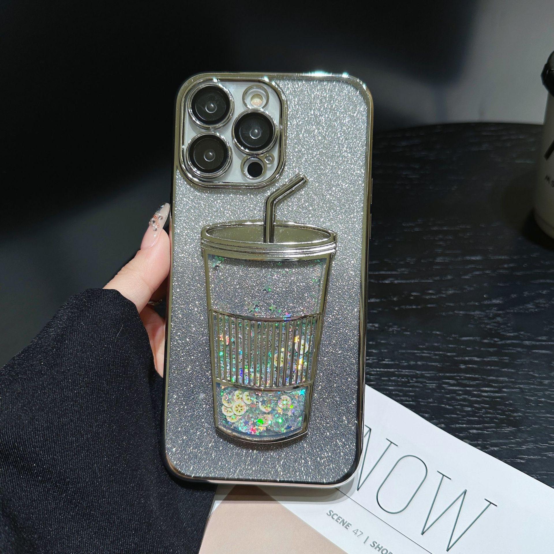 Copa de arena movediza tridimensional adecuada para carcasa de teléfono móvil iPhone15 galvanoplastia de color brillo degradado 14Pro lente funda protectora resistente a caídas 2