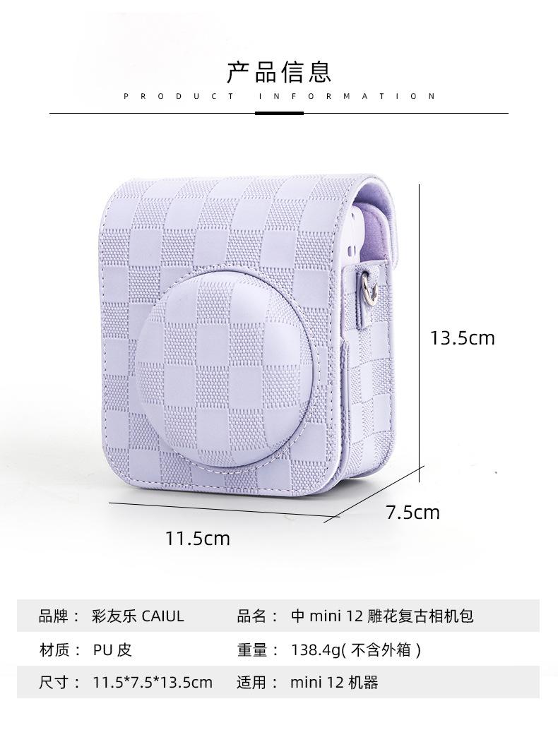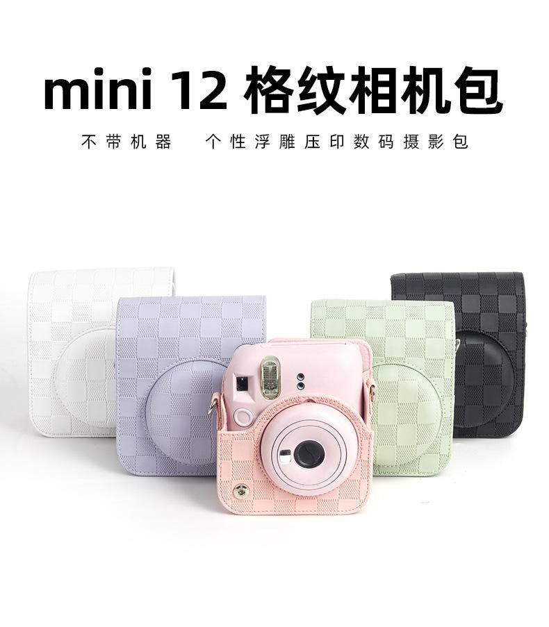 Nueva Bolsa para Cámara Retro a Cuadros Instax mini12 Estilo Ins Fresca para Almacenamiento al Aire Libre Bolsa para Fotografía
