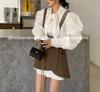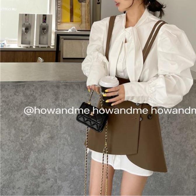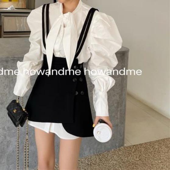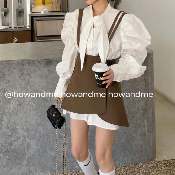 White Shirt, Khaki Strb Dress, Black Strap Dress, White shirt + khaki strap skirt, White shirt + black strap skirt