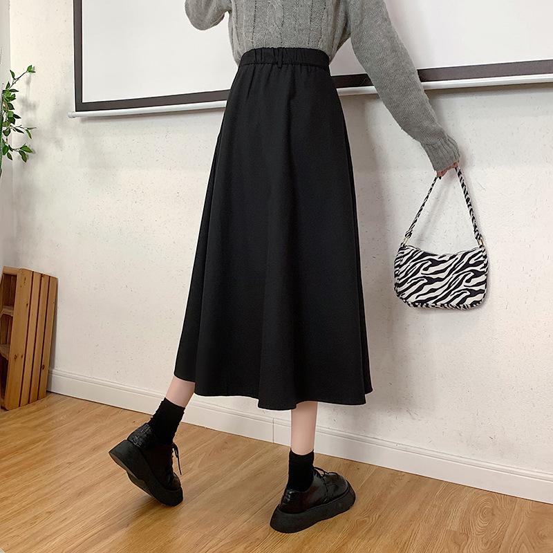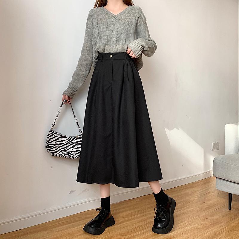 6826# Falda Midi Retro de Cintura Alta para Mujer Otoño Nueva Adelgazante Falda de Largo Medio Popular Falda A de Vuelo Amplio