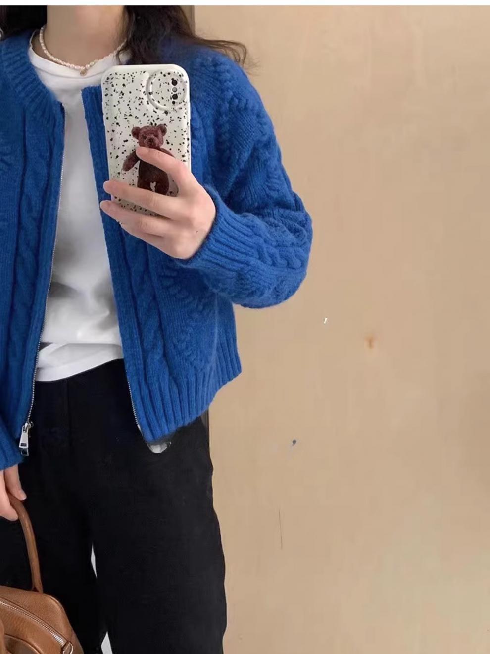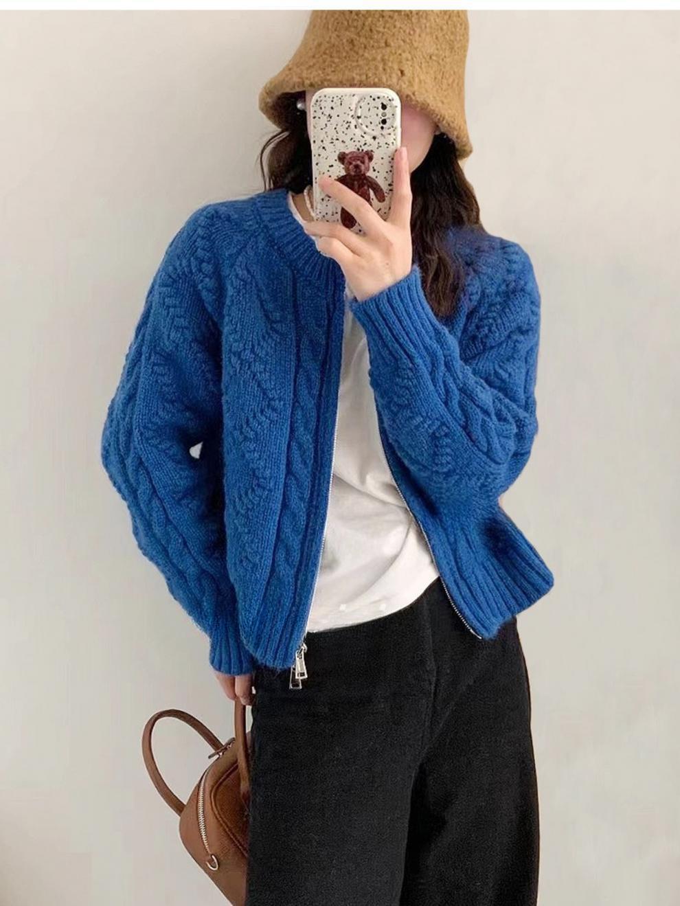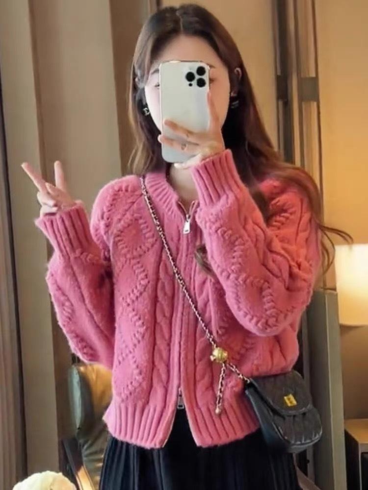 Chaqueta Suéter Retro Twist para Mujer Primavera y Otoño Pequeña Holgada Exterior Corta Cárdigan de Punto Otoño Top de Manga Larga