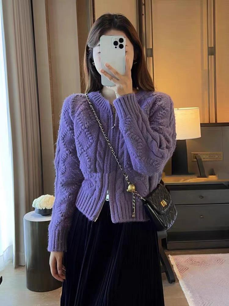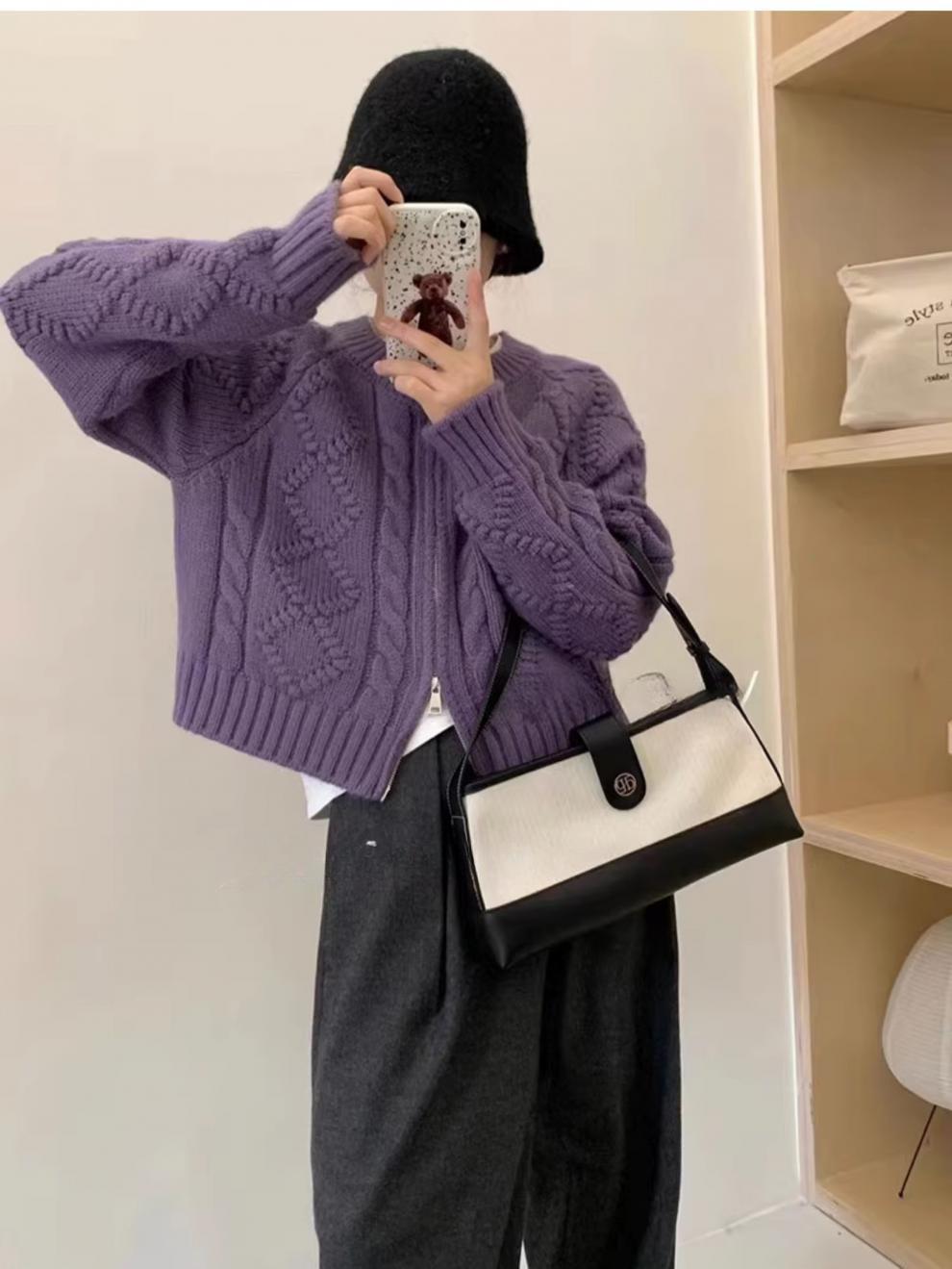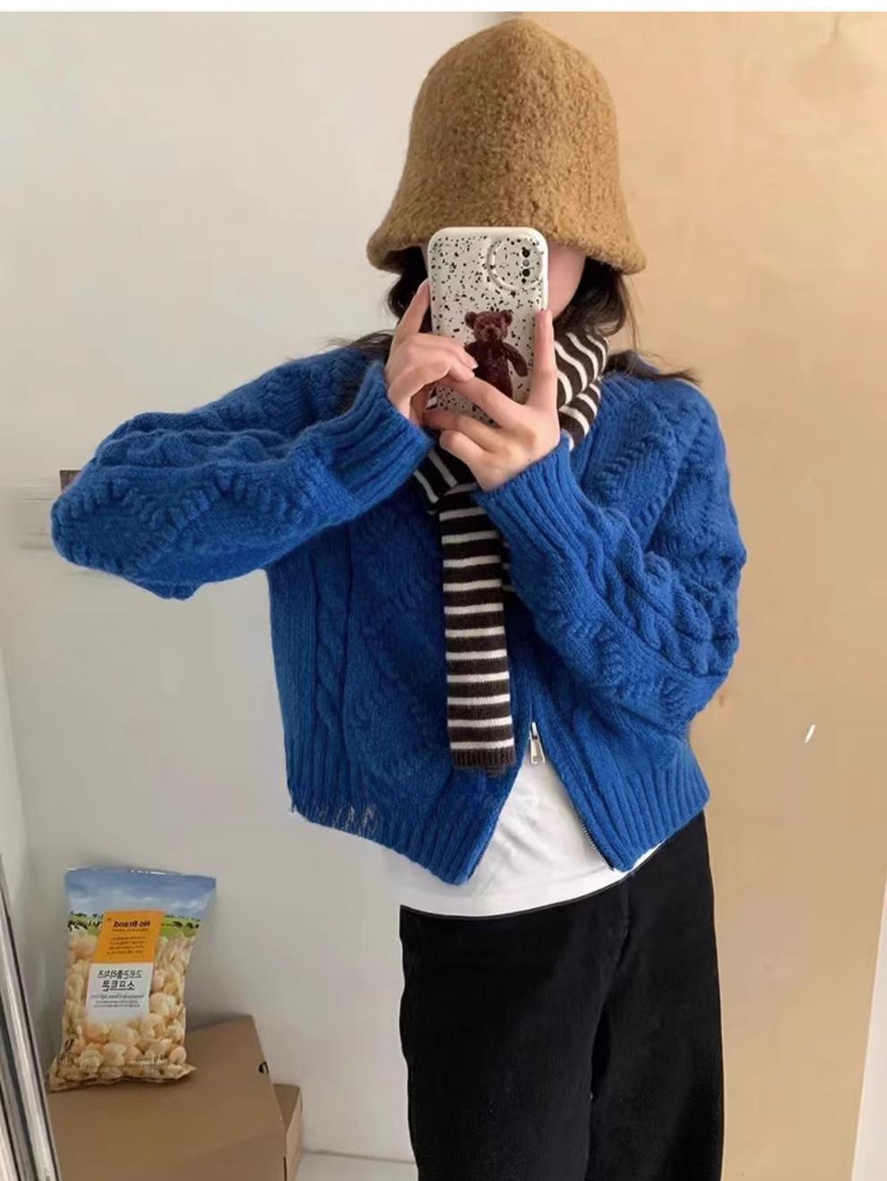 Chaqueta Suéter Retro Twist para Mujer Primavera y Otoño Pequeña Holgada Exterior Corta Cárdigan de Punto Otoño Top de Manga Larga