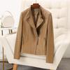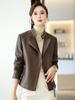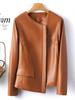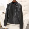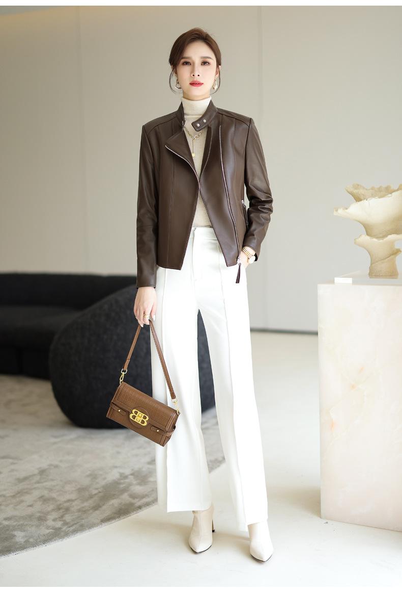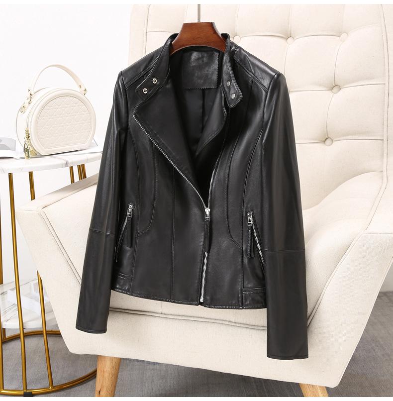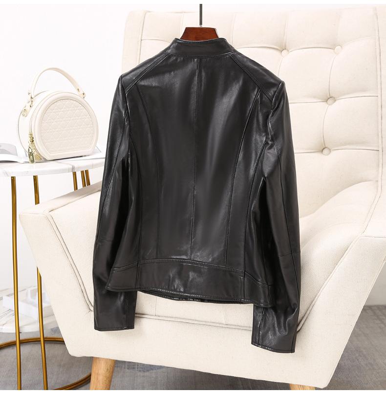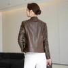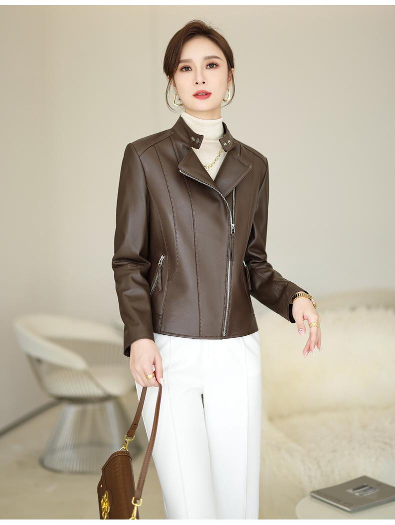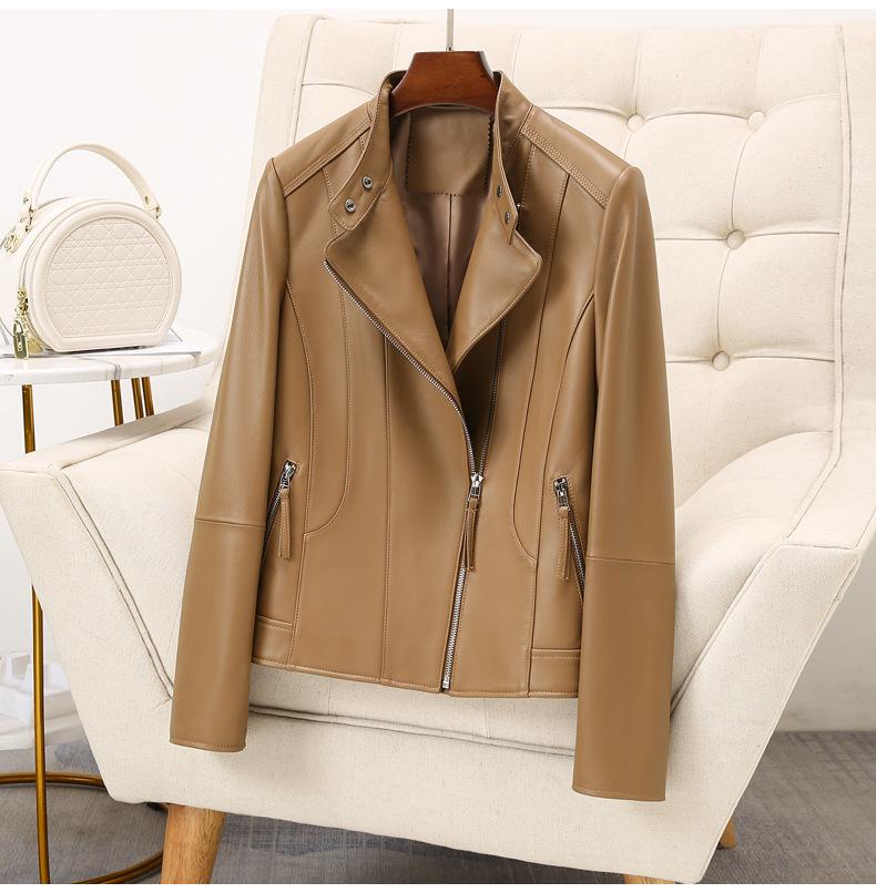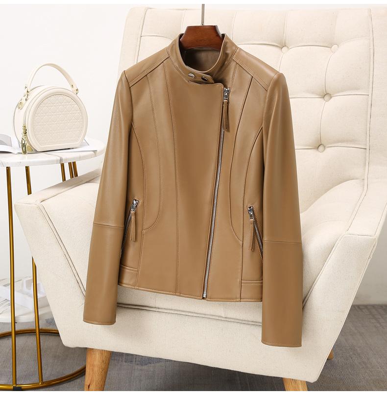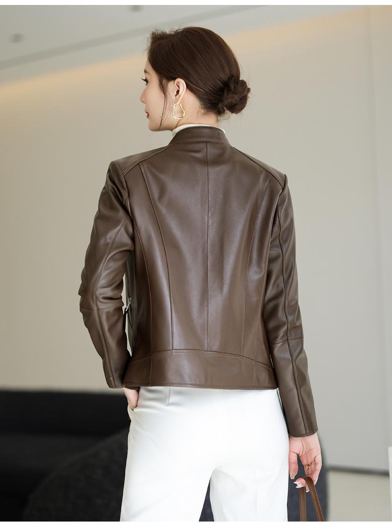 Chaqueta de Cuero Haining 2025 Nueva Primavera y Otoño Corta para Mujer Cuero Genuino Piel de Cabra Moda Motocicleta Chaqueta Corta de Cuero