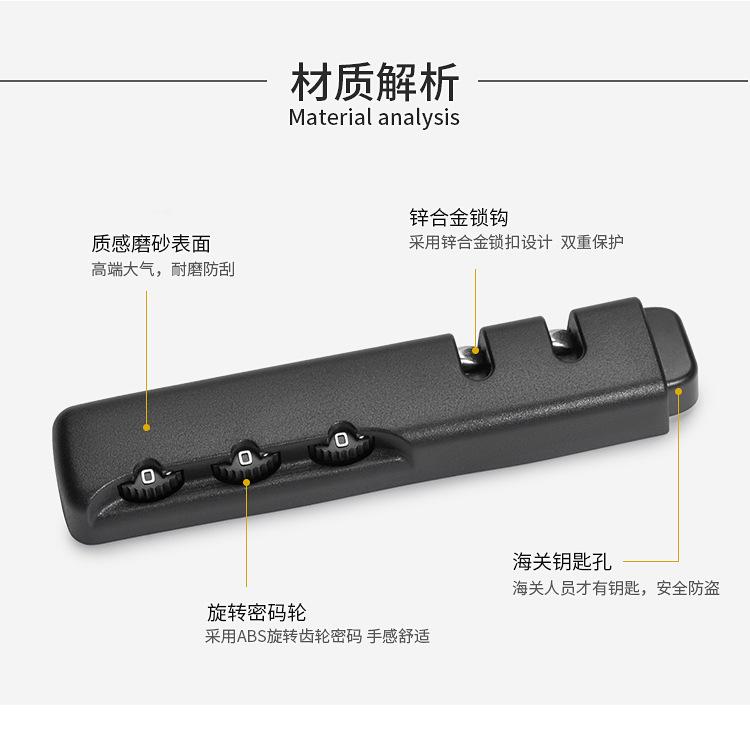 Guangzhou Zhengbo Luggage Products Co., Ltd. se especializa en la producción de una serie de accesorios para equipaje, como cerraduras de combinación, candados, cerraduras fijas, cerraduras aduaneras TSA, carritos, ruedas para maletas, ruedas para maletas y asas. Nuestros productos son populares en el mercado y gozan de gran prestigio. La empresa ha establecido relaciones de cooperación duraderas y estables con importantes fabricantes y agentes de equipaje. Ofrece una gama completa de productos a precios razonables. Con una sólida trayectoria comercial, valoramos la credibilidad, cumplimos los contratos y garantizamos la calidad de nuestros productos. Nos hemos ganado la confianza de nuestros clientes gracias a nuestra amplia gama de productos y al principio de bajos beneficios y rápida rotación.