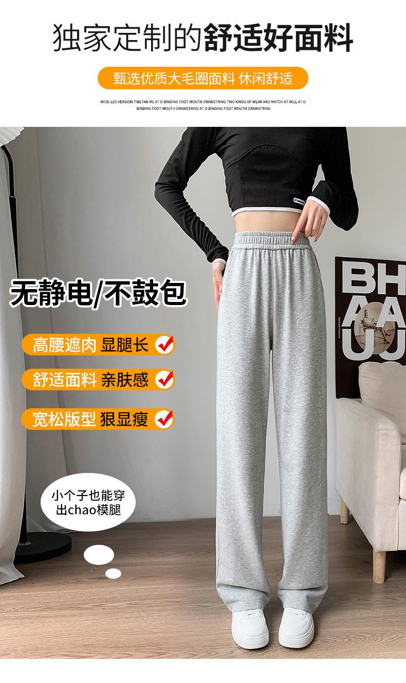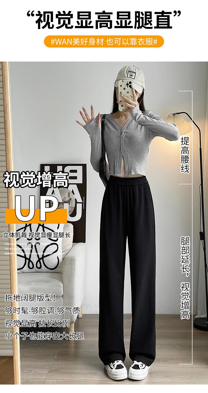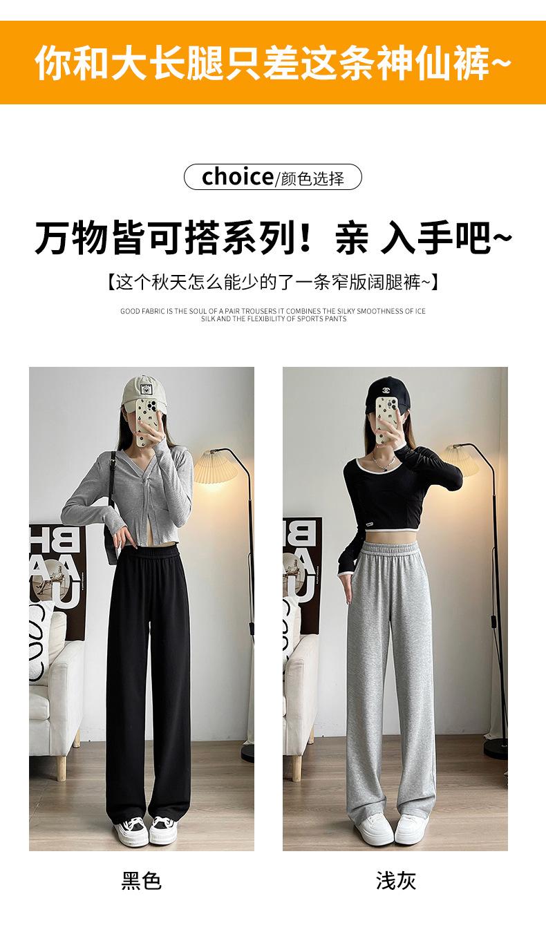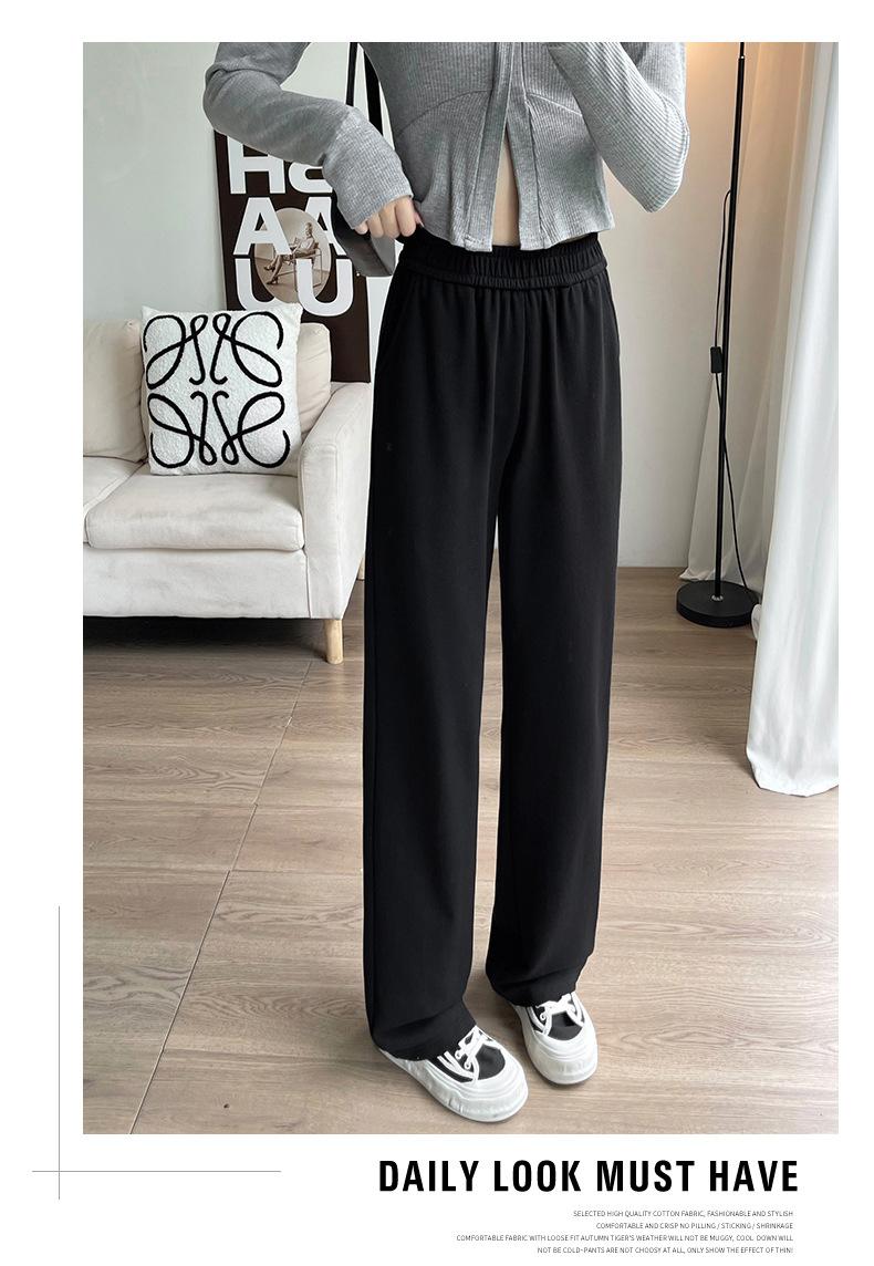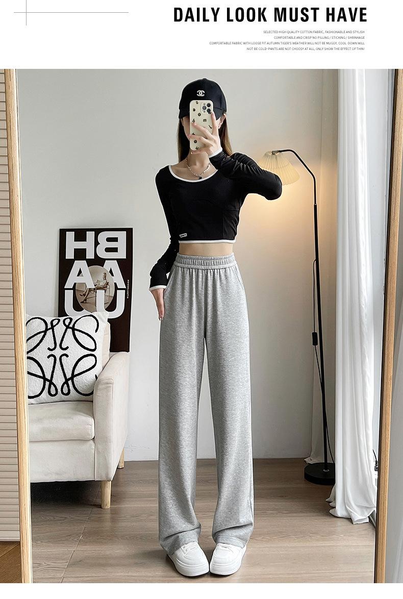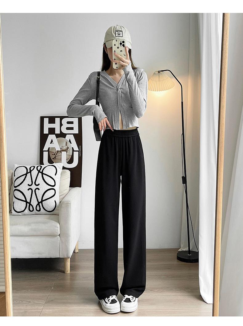 Pantalones deportivos de pierna ancha para mujer Verano Delgados Cintura alta Drapeados 2025 Nuevo Sueltos Rectos Casuales Ins Pantalones de moda