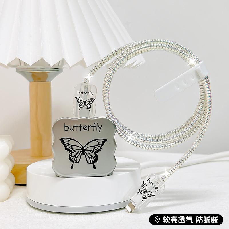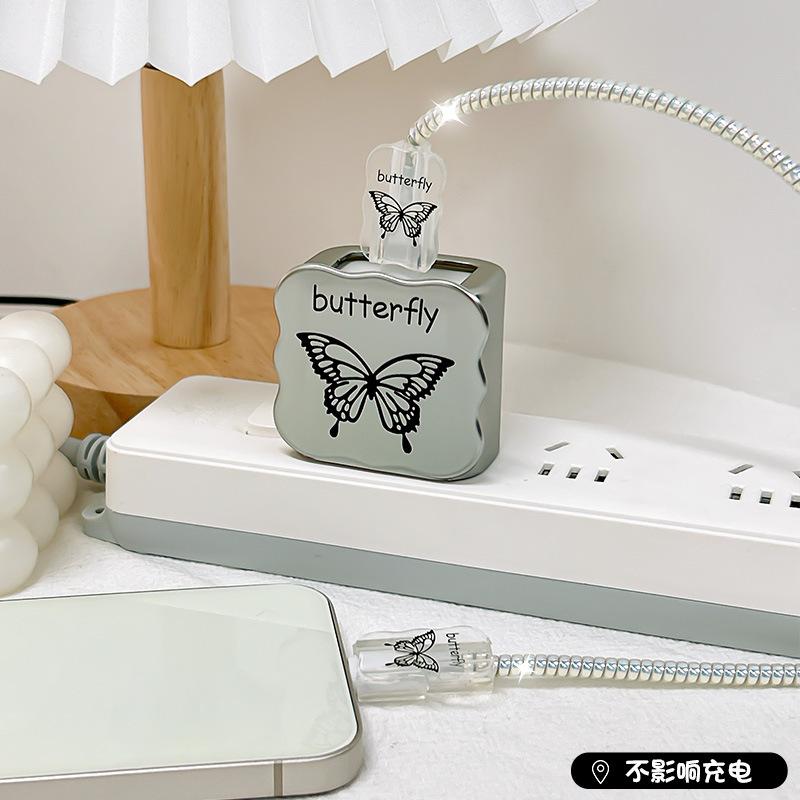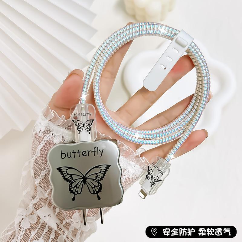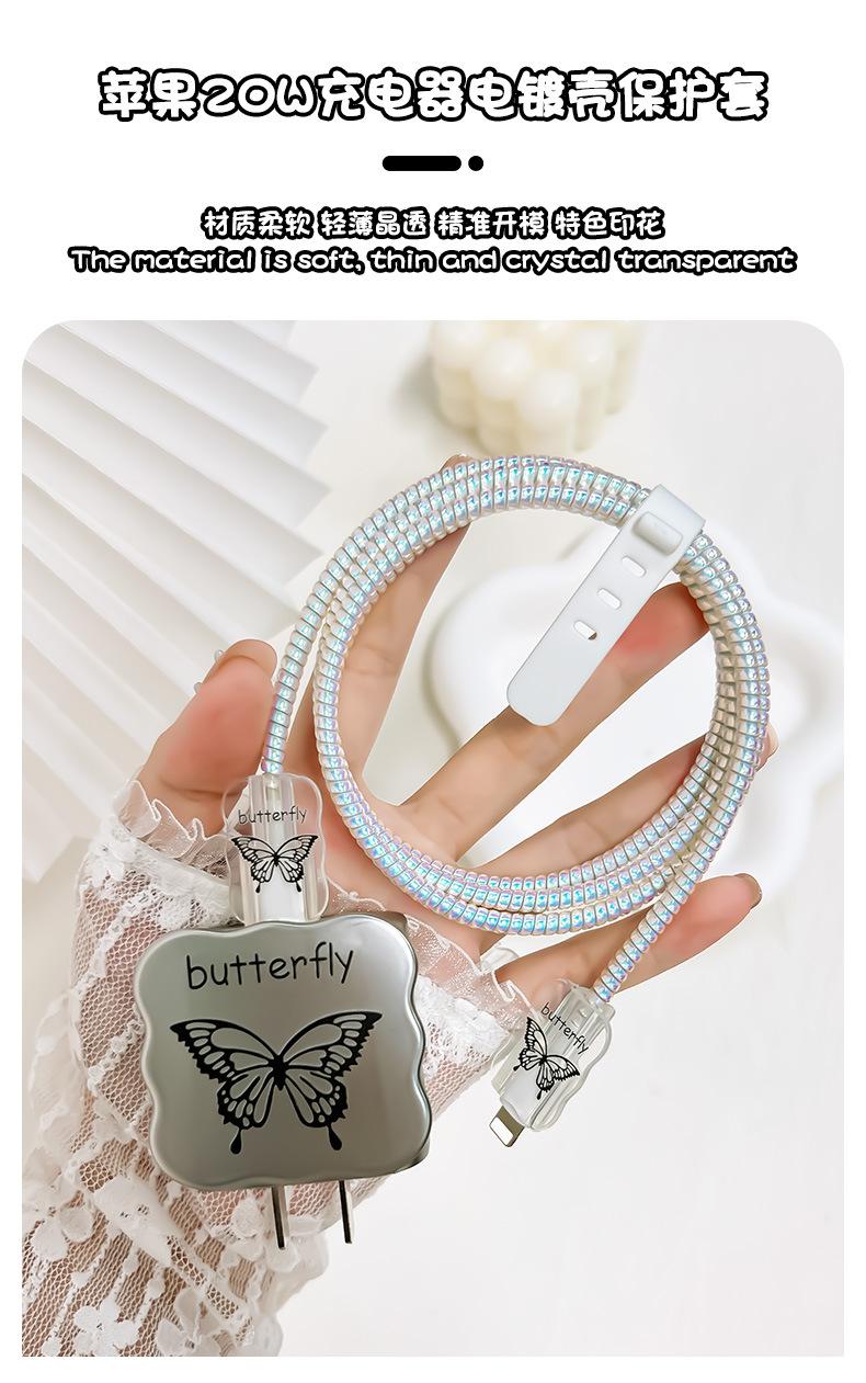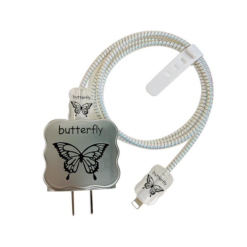 Modelo de Onda Adecuado para Cubierta Protectora de Cabezal de Carga Apple 20W Cubierta Protectora de Cable de Datos de Carga Rápida 18W Línea de Galvanoplastia Mariposa