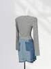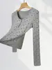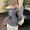 Camiseta de algodón puro de alta calidad para mujer, estilo americano, cuello en V, manga larga, cuello semiabierto, estilo dulce y picante.