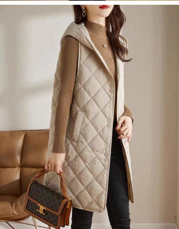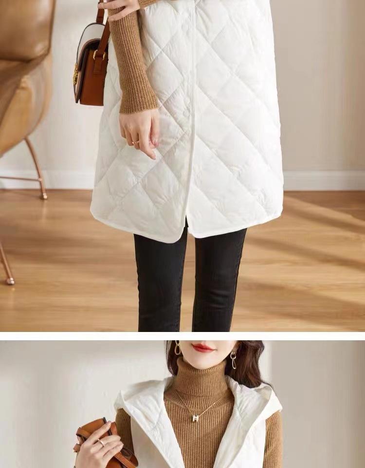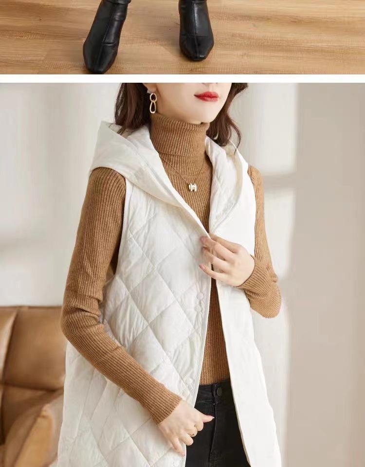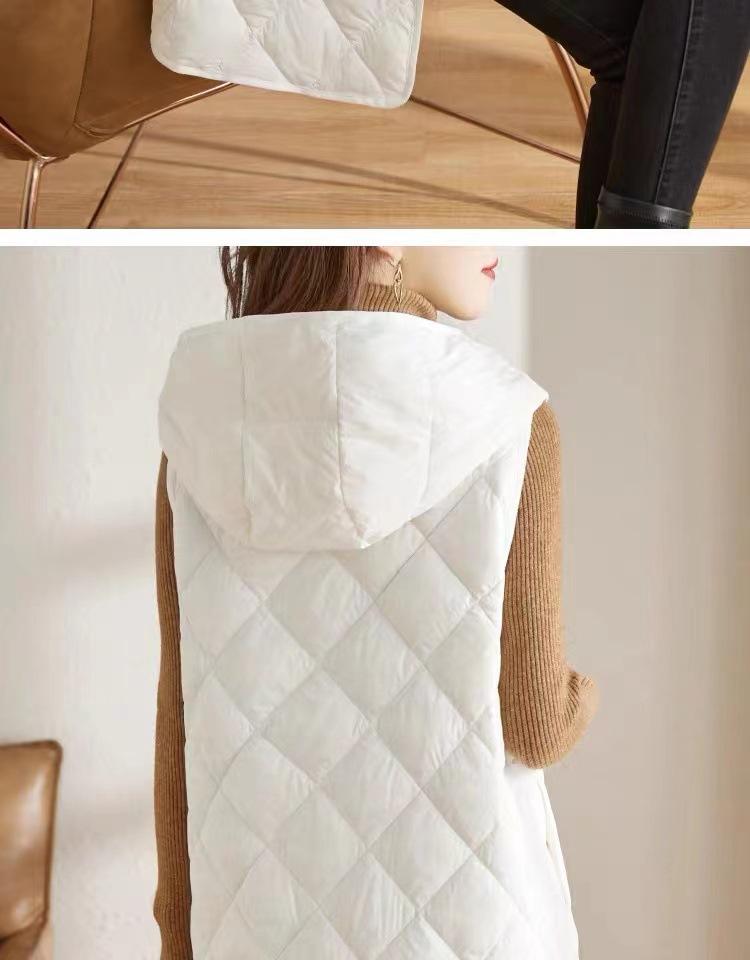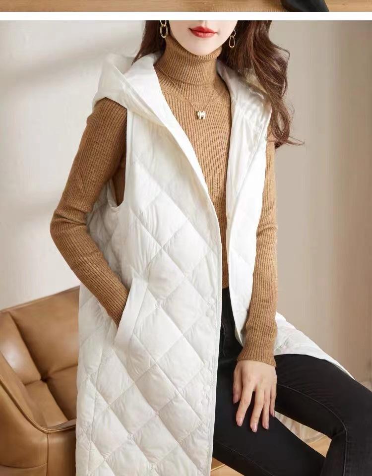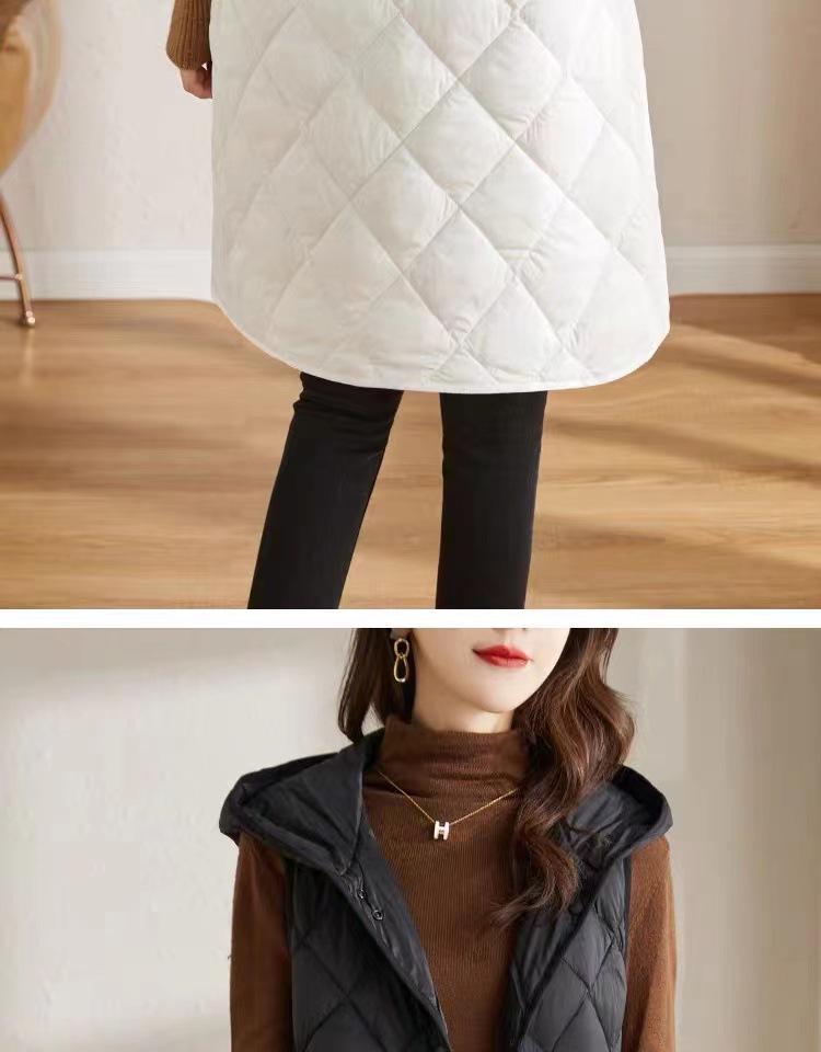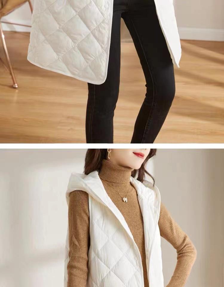 2025 Nuevo Chaleco Ligero Cálido de Plumón con Capucha para Mujer Abrigo de Largo Medio Temperamento Suelto Chaqueta sin Mangas