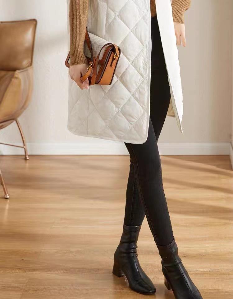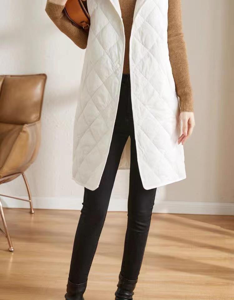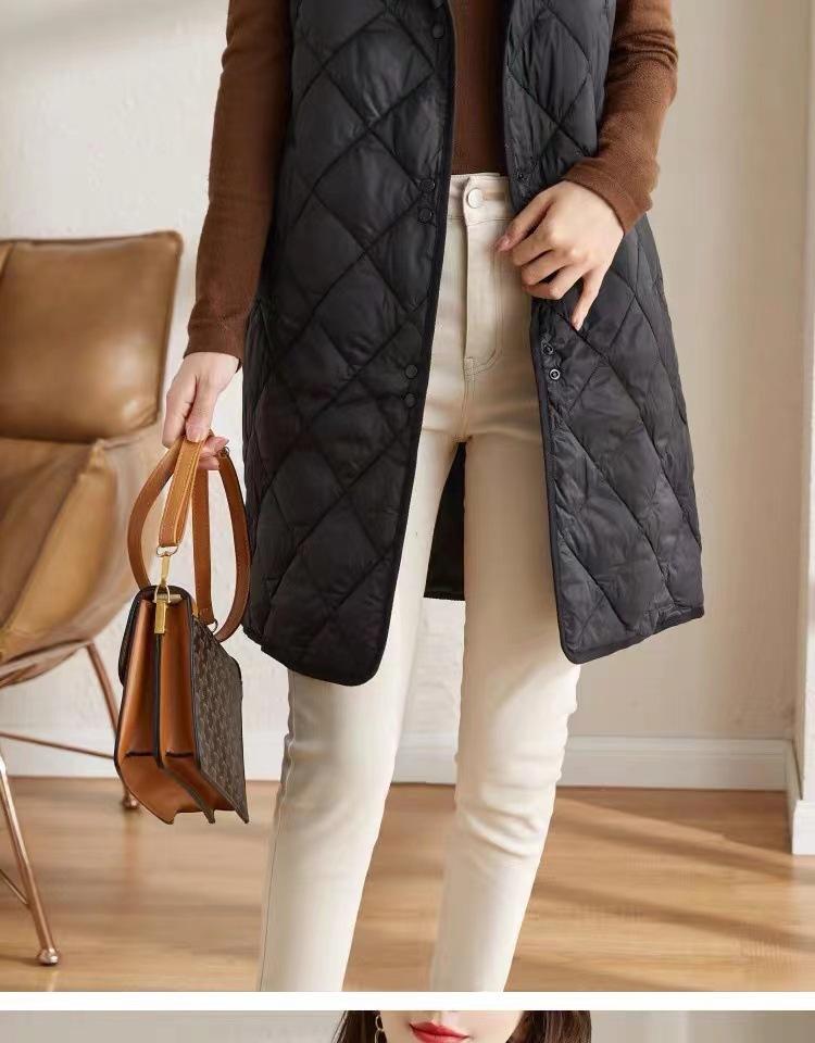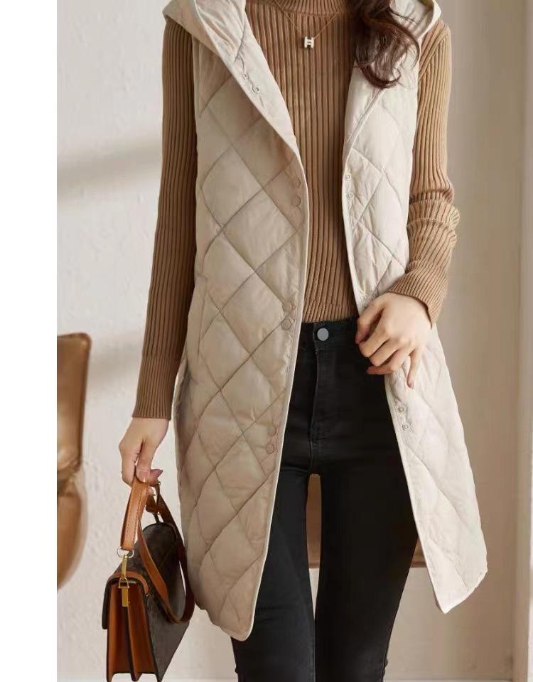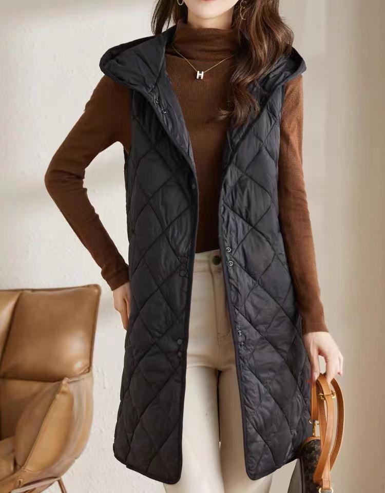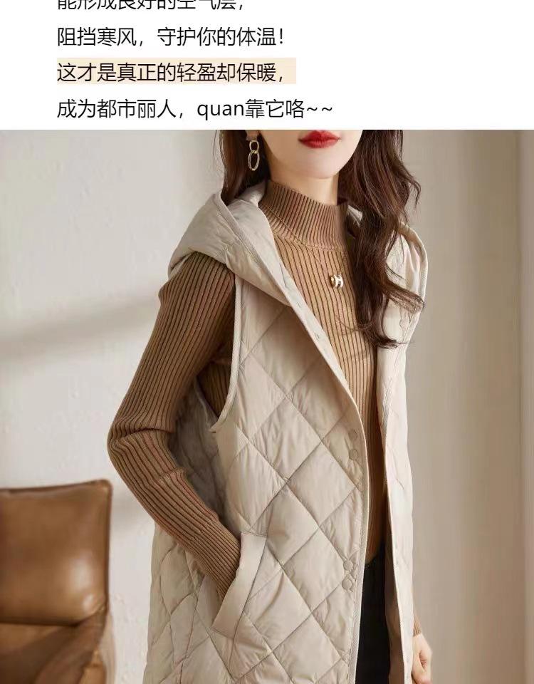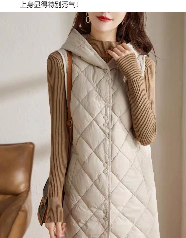 2025 Nuevo Chaleco Ligero Cálido de Plumón con Capucha para Mujer Abrigo de Largo Medio Temperamento Suelto Chaqueta sin Mangas
