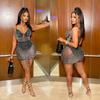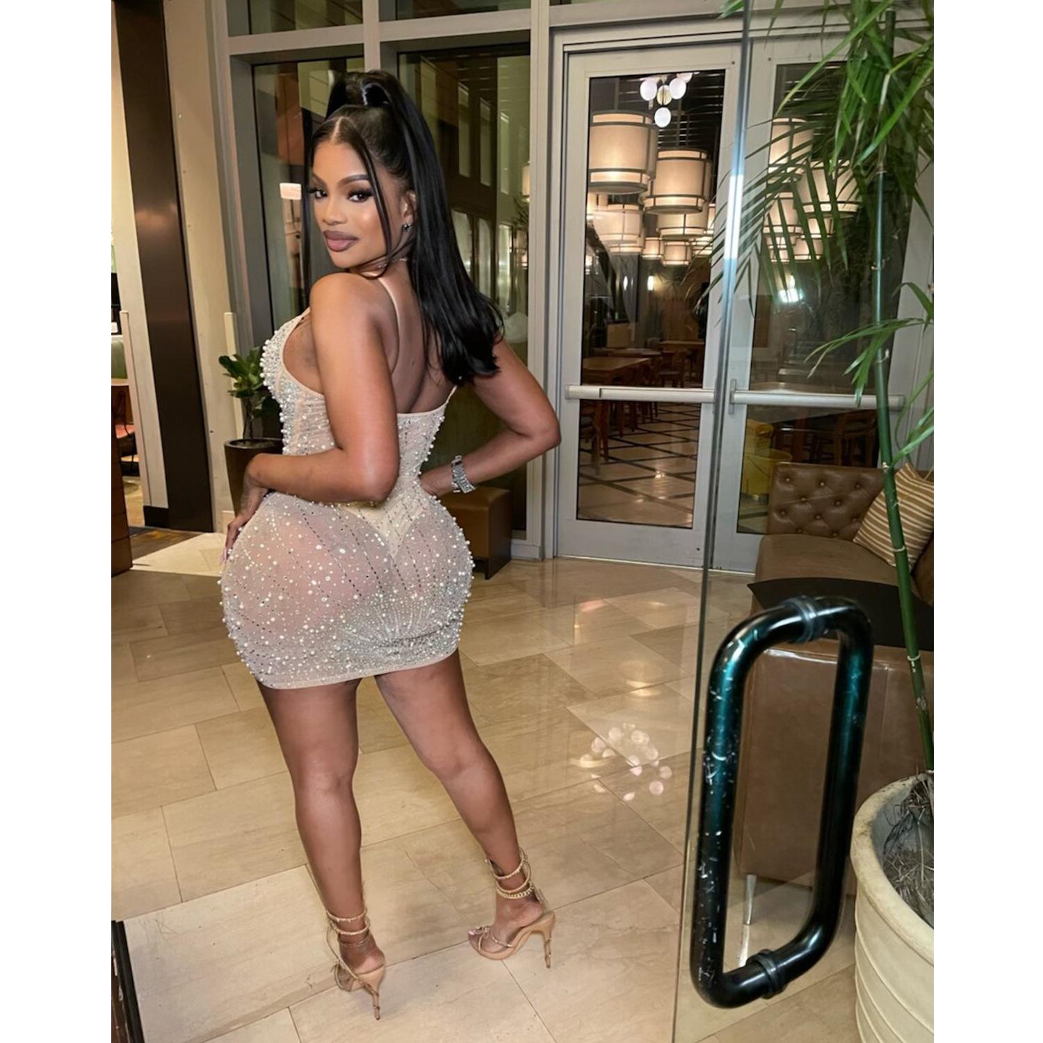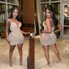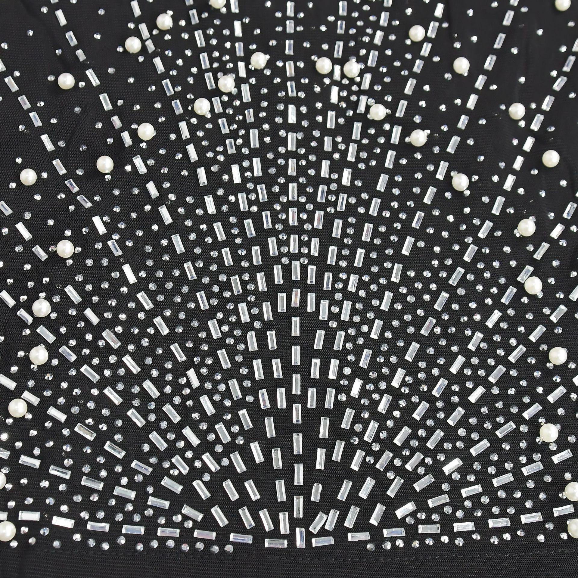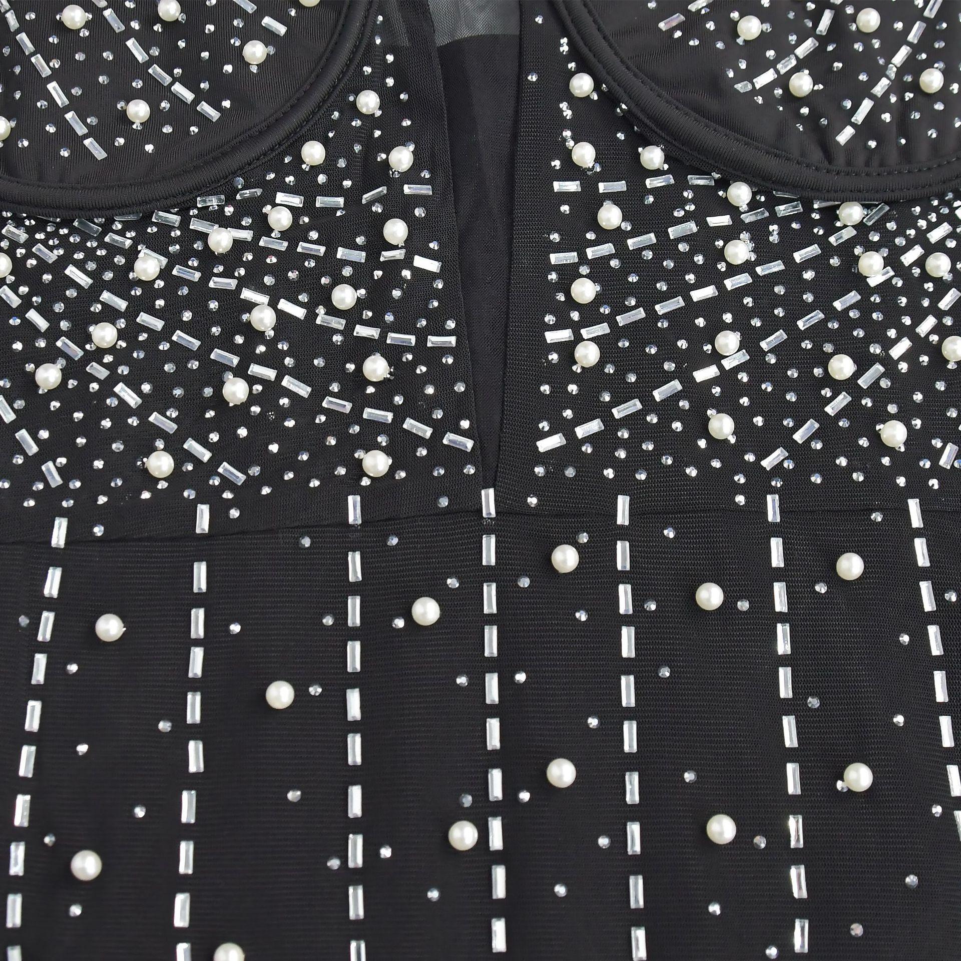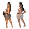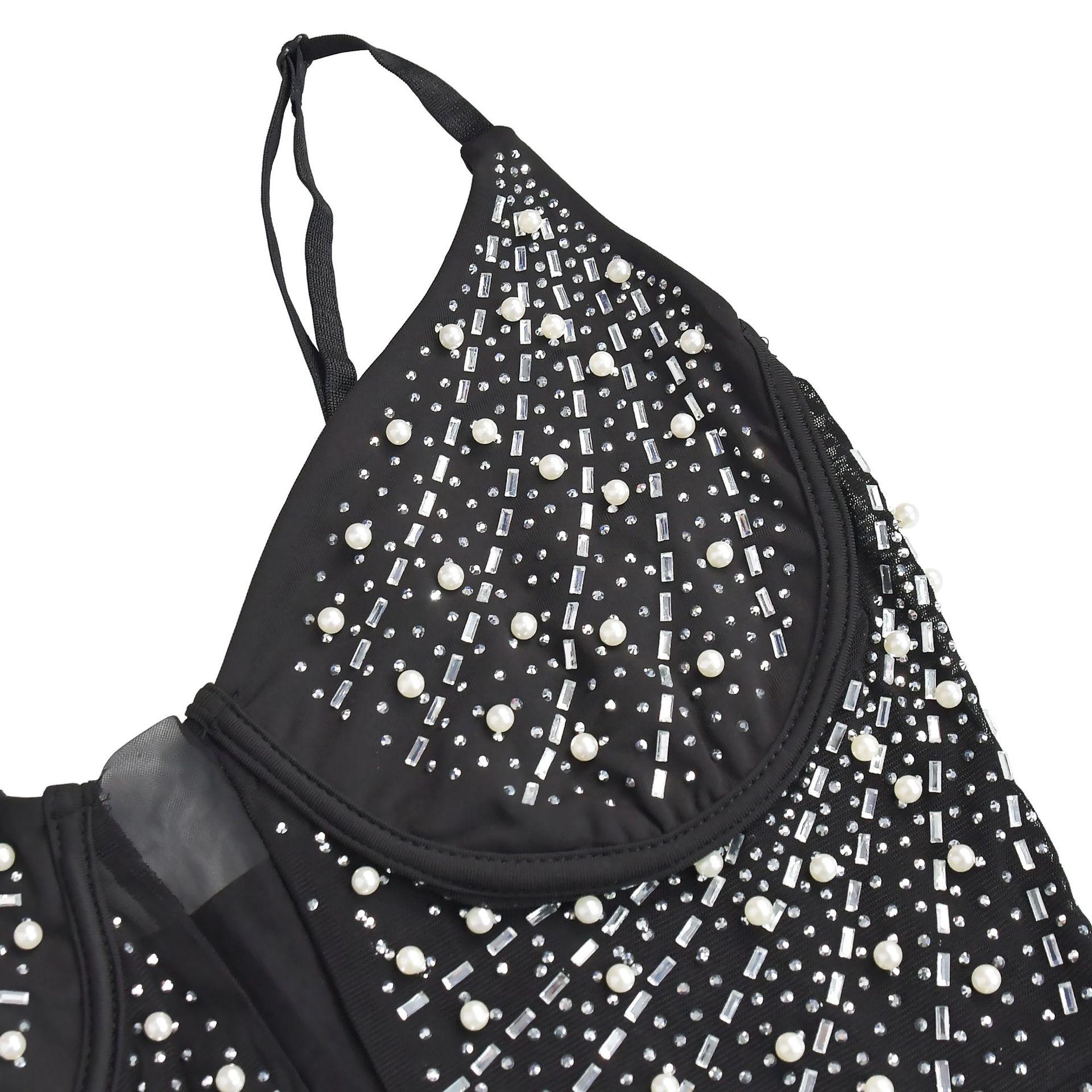 C6602 Aliexpress Amazon Moda Europea y Americana para Mujer Color Puro Diamantes de Imitación Malla Sin Mangas Tirantes Falda Vestido