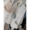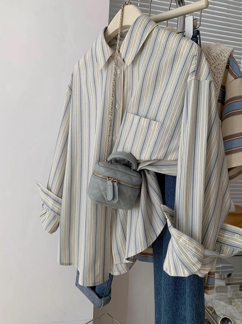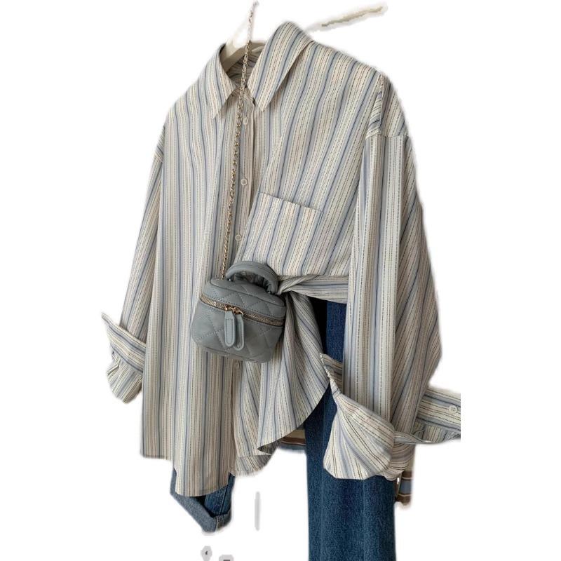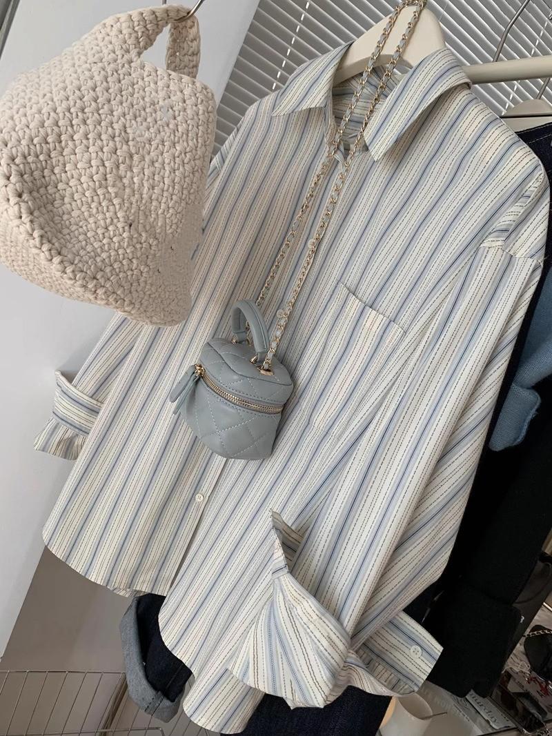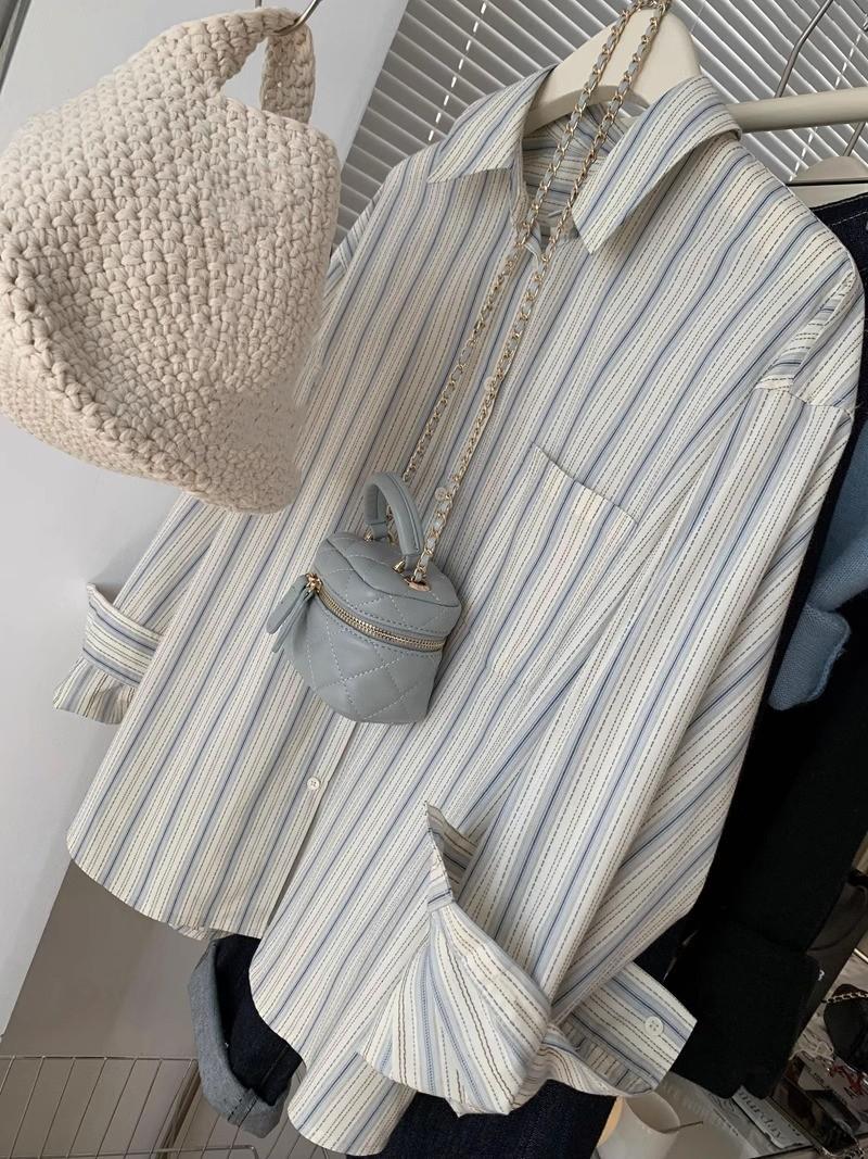 Camisa de rayas azules para mujer, diseño de primavera y otoño, estilo nicho, camisa francesa chic pequeña, top de protección solar para mujer