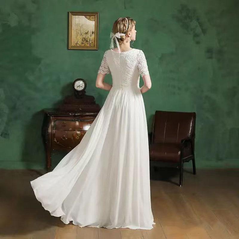 Compra Vestido de Novia Ligero de Encaje Blanco Nuevo Estilo 2026 Adelgazante Largo Elegante Estilo Diosa Vestido de Fiesta Anual de Noche con Cola Grande para Otoño al por mayor en Joom.pro
