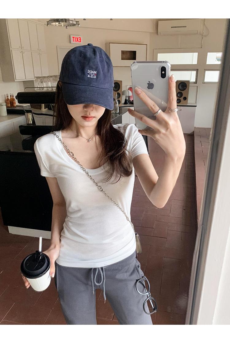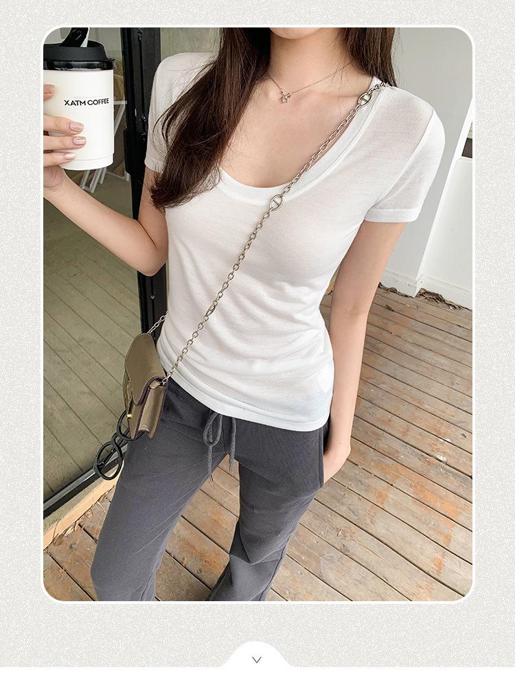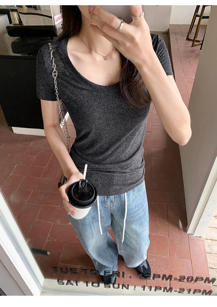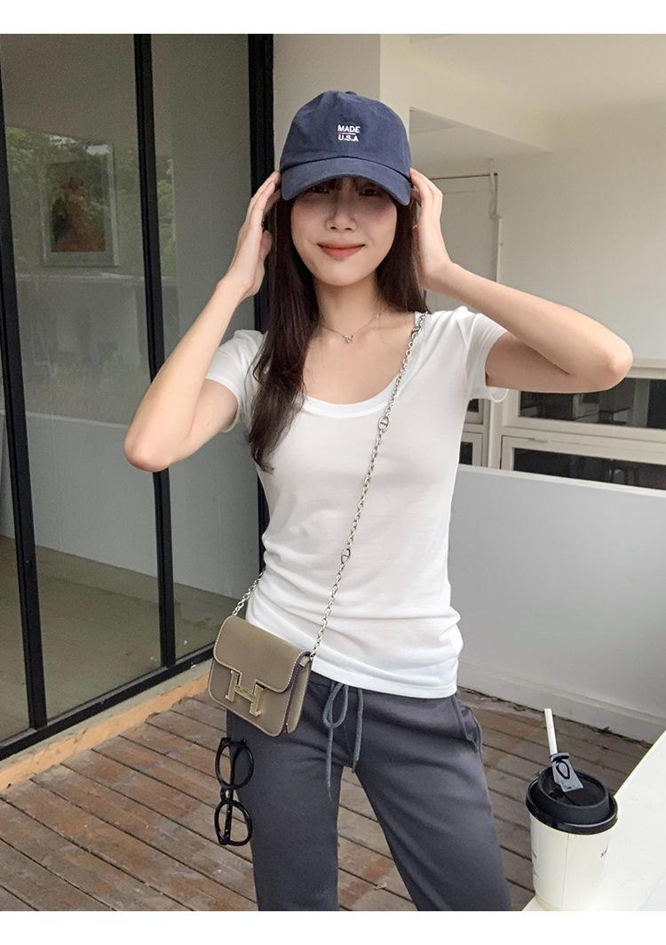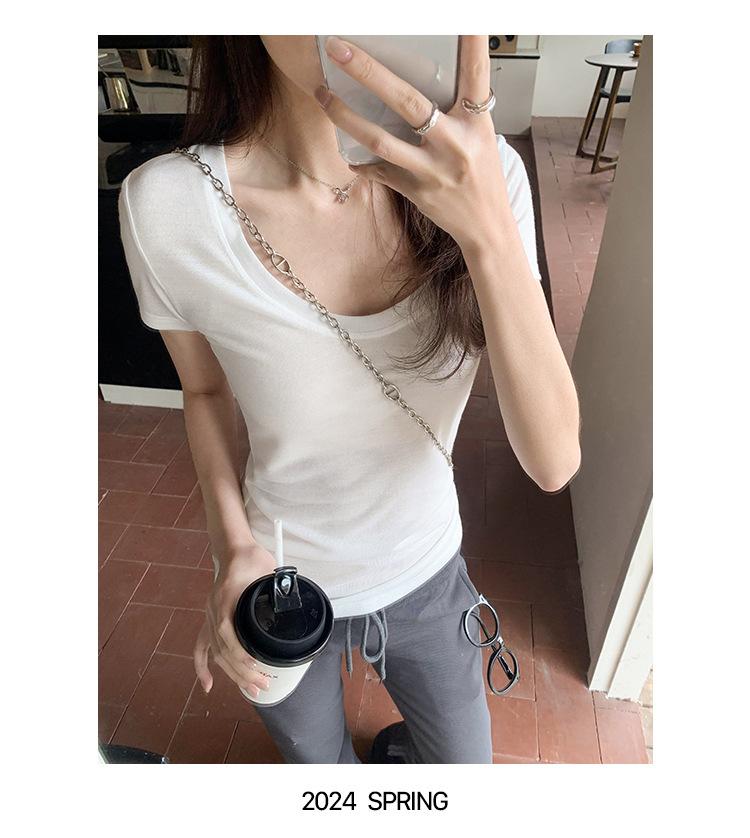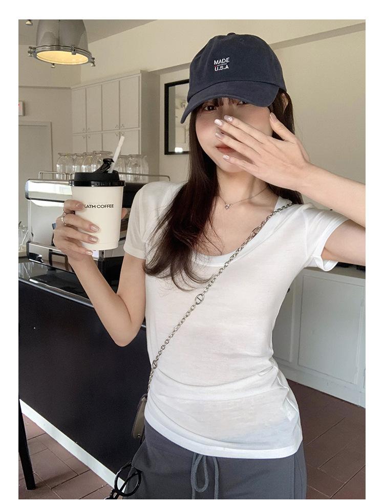 Camiseta de manga corta blanca de verano 2024 Design Sense Niche para mujer, básica, ajustada, estilo jersey.