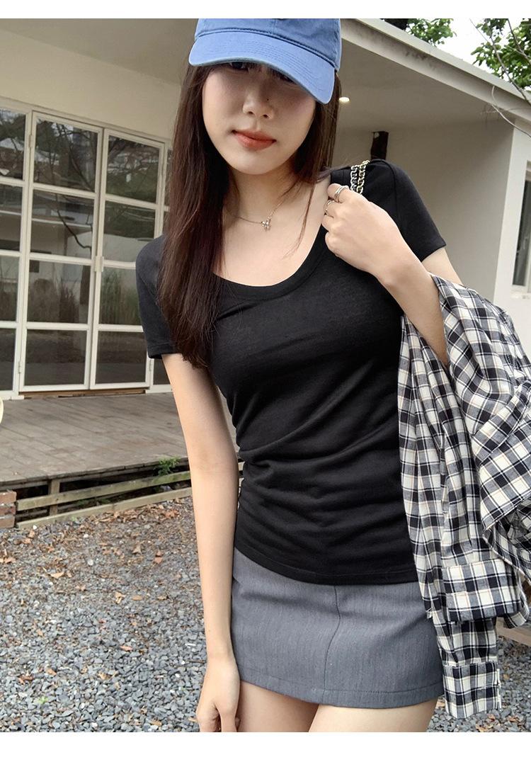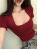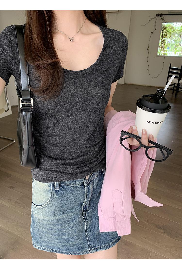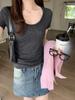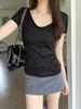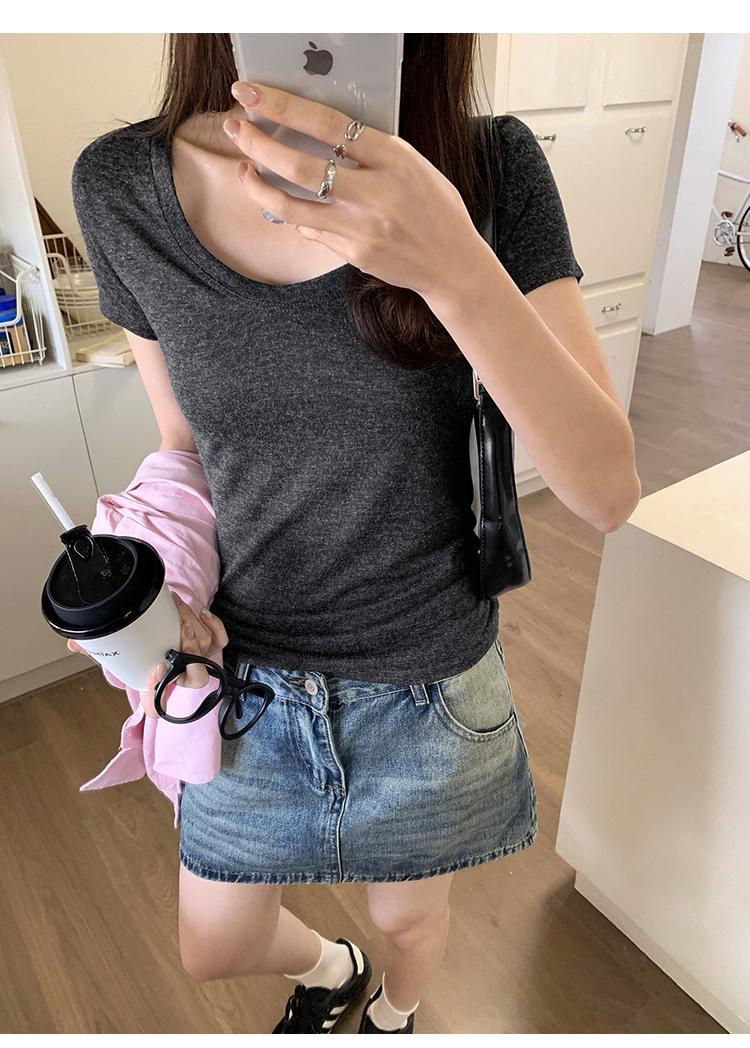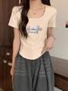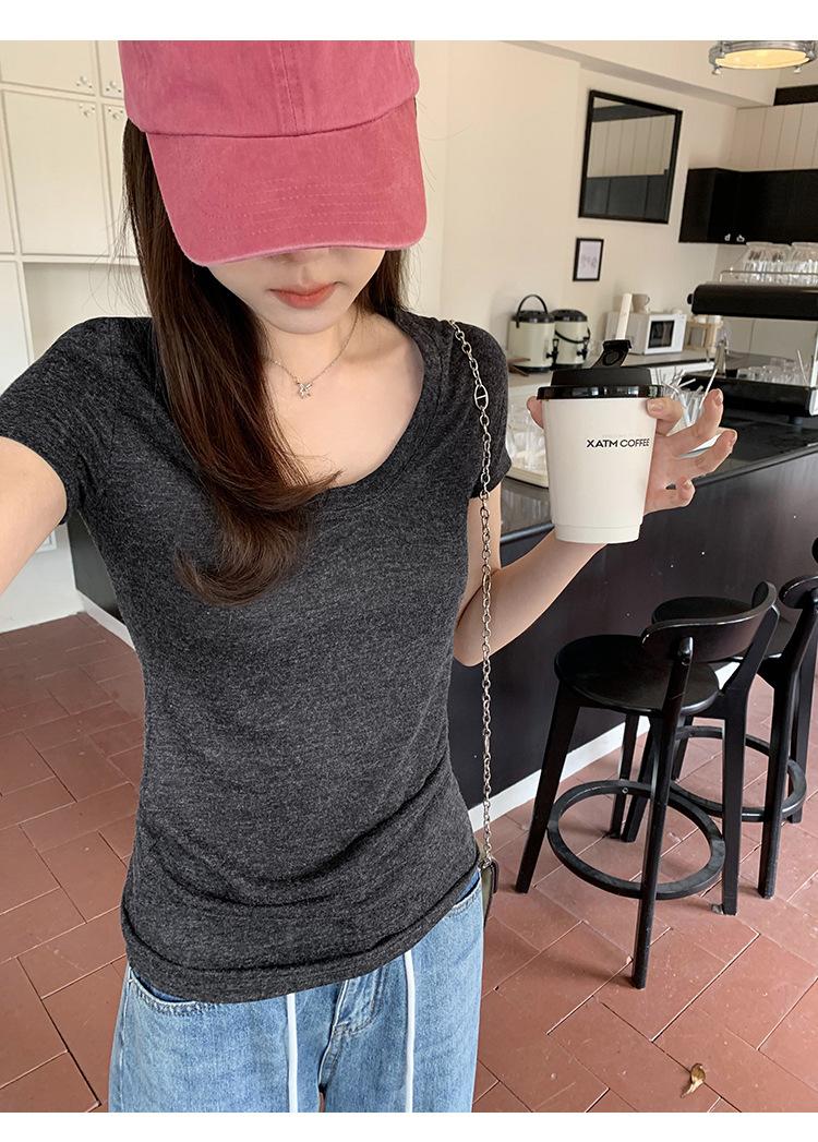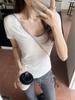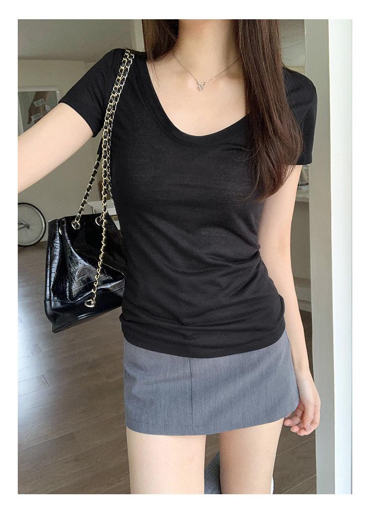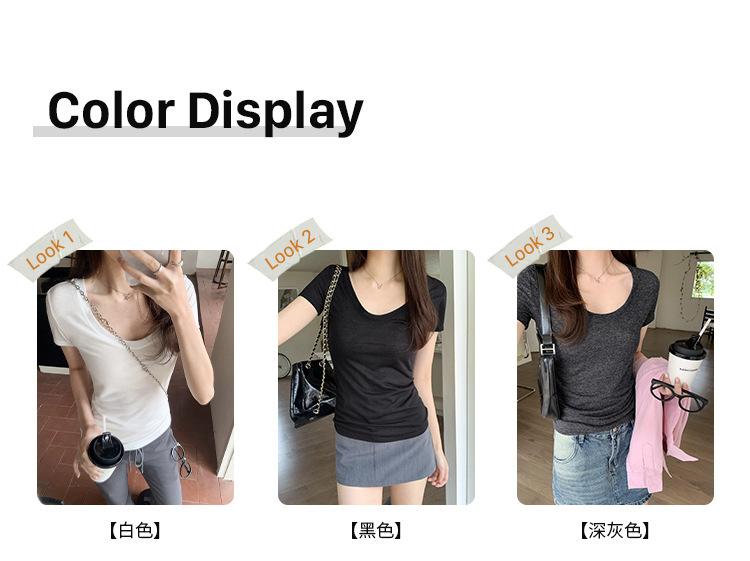 Camiseta de manga corta blanca de verano 2024 Design Sense Niche para mujer, básica, ajustada, estilo jersey.