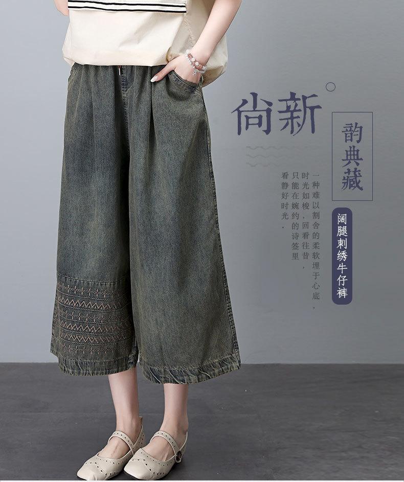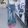 Pantalones vaqueros retro de pierna ancha para mujer, novedad de verano 2024, holgados, combinables y bordados.