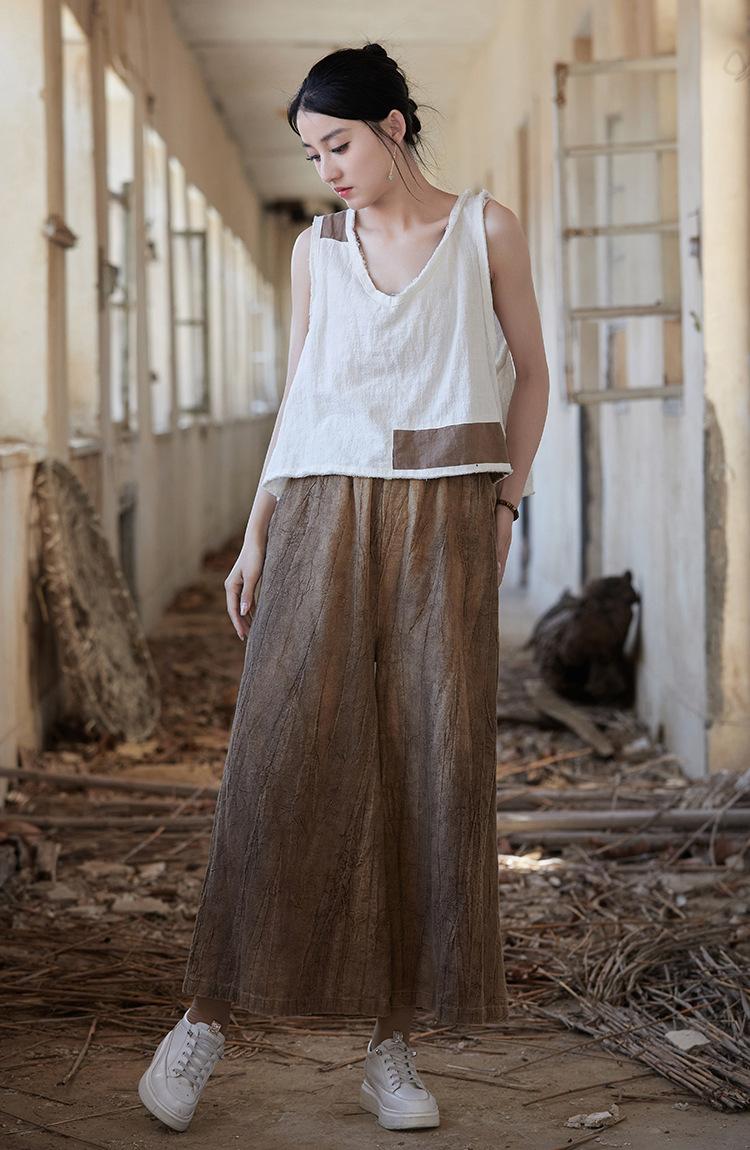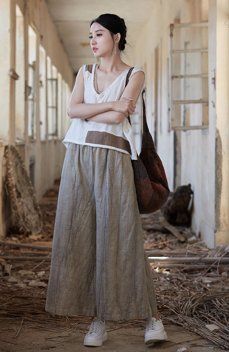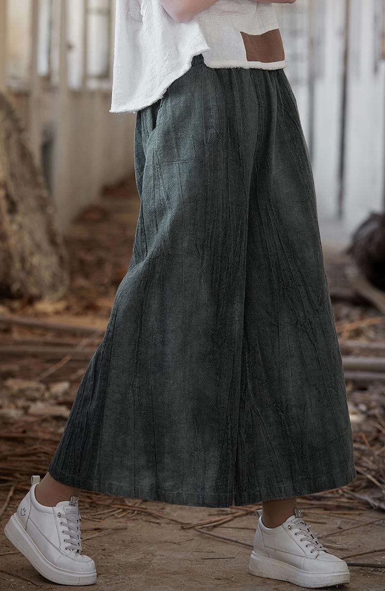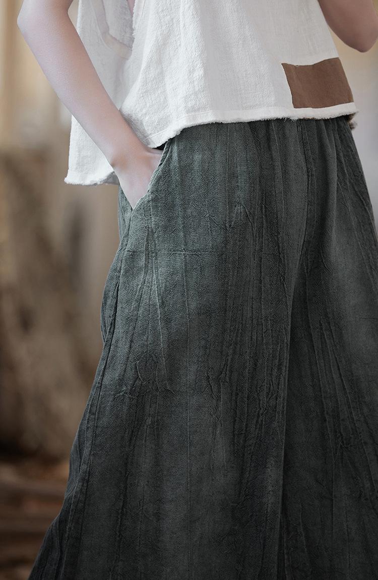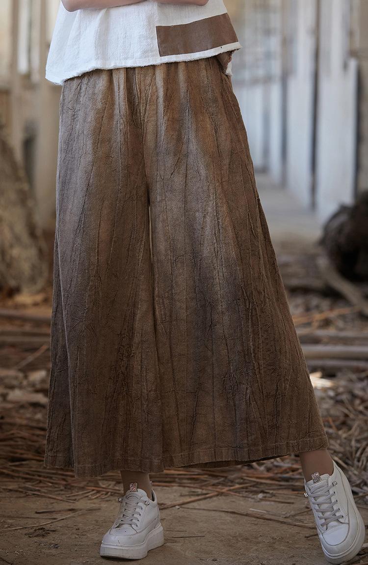Pantalones Tie-Dye de Algodón Ramio Nuevos para Mujer Otoño/Invierno 2025 Cintura Elástica Adelgazantes Versátiles Pantalones Holgados de Pierna Ancha para Mujer