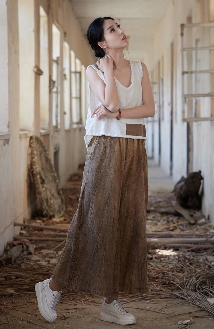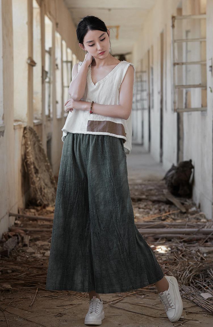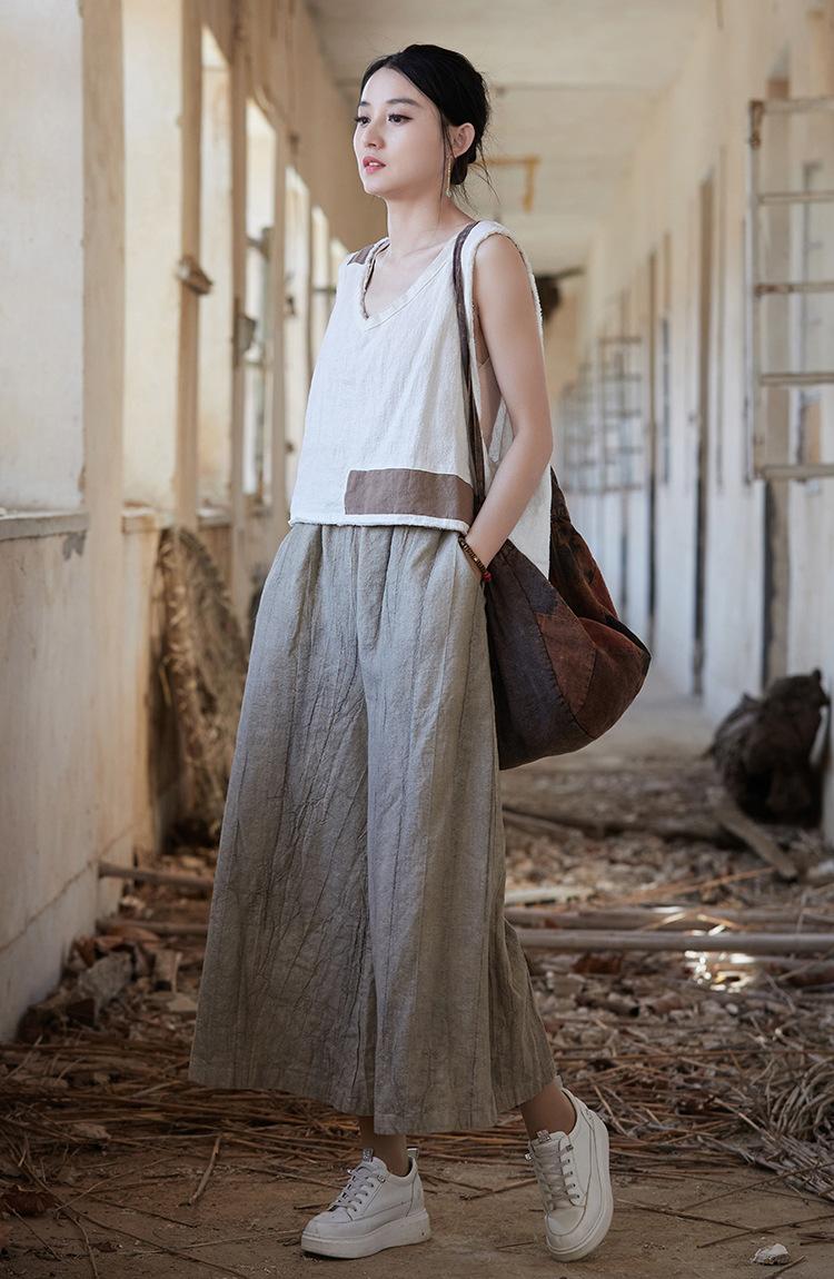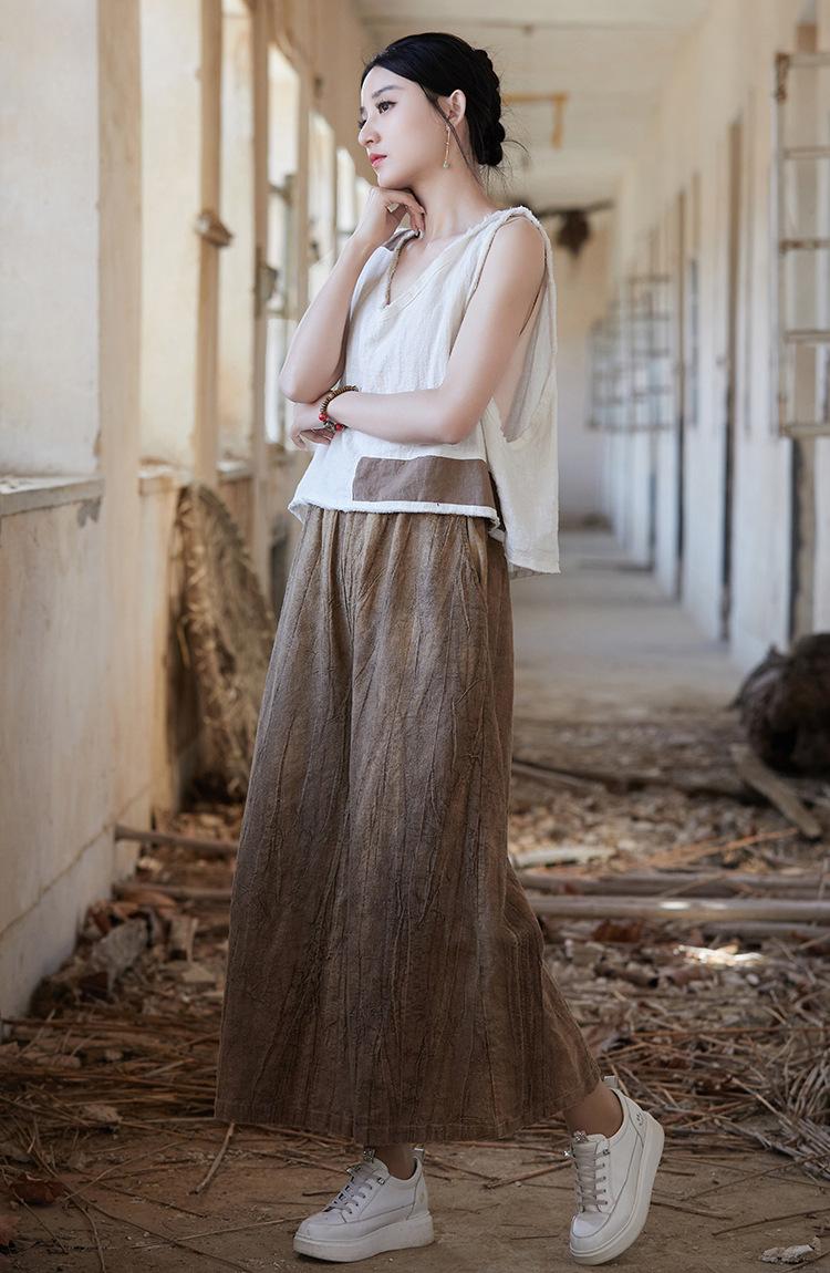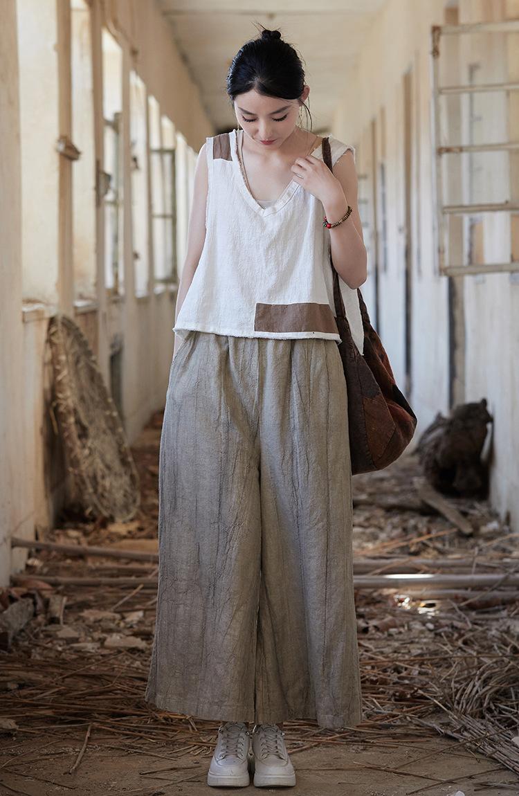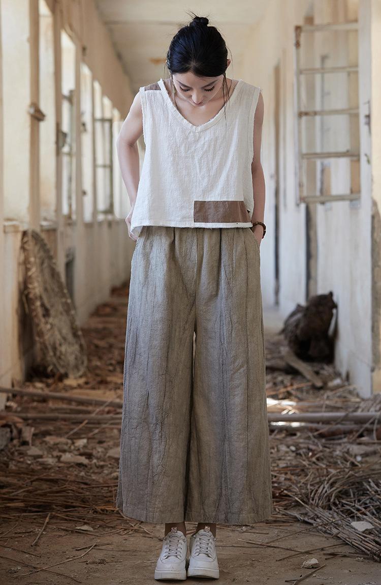 Pantalones Tie-Dye de Algodón Ramio Nuevos para Mujer Otoño/Invierno 2025 Cintura Elástica Adelgazantes Versátiles Pantalones Holgados de Pierna Ancha para Mujer