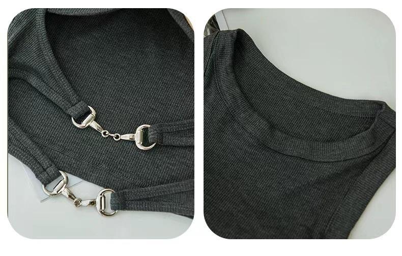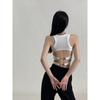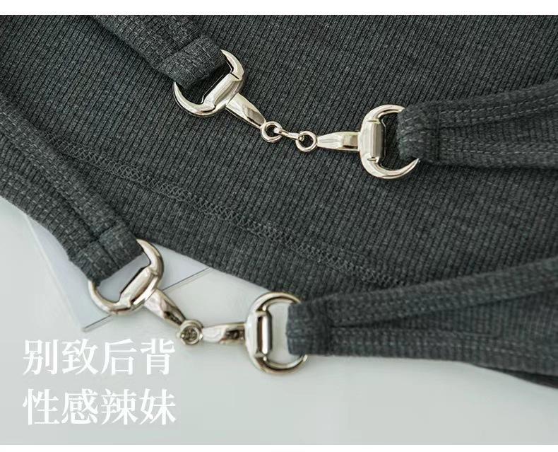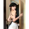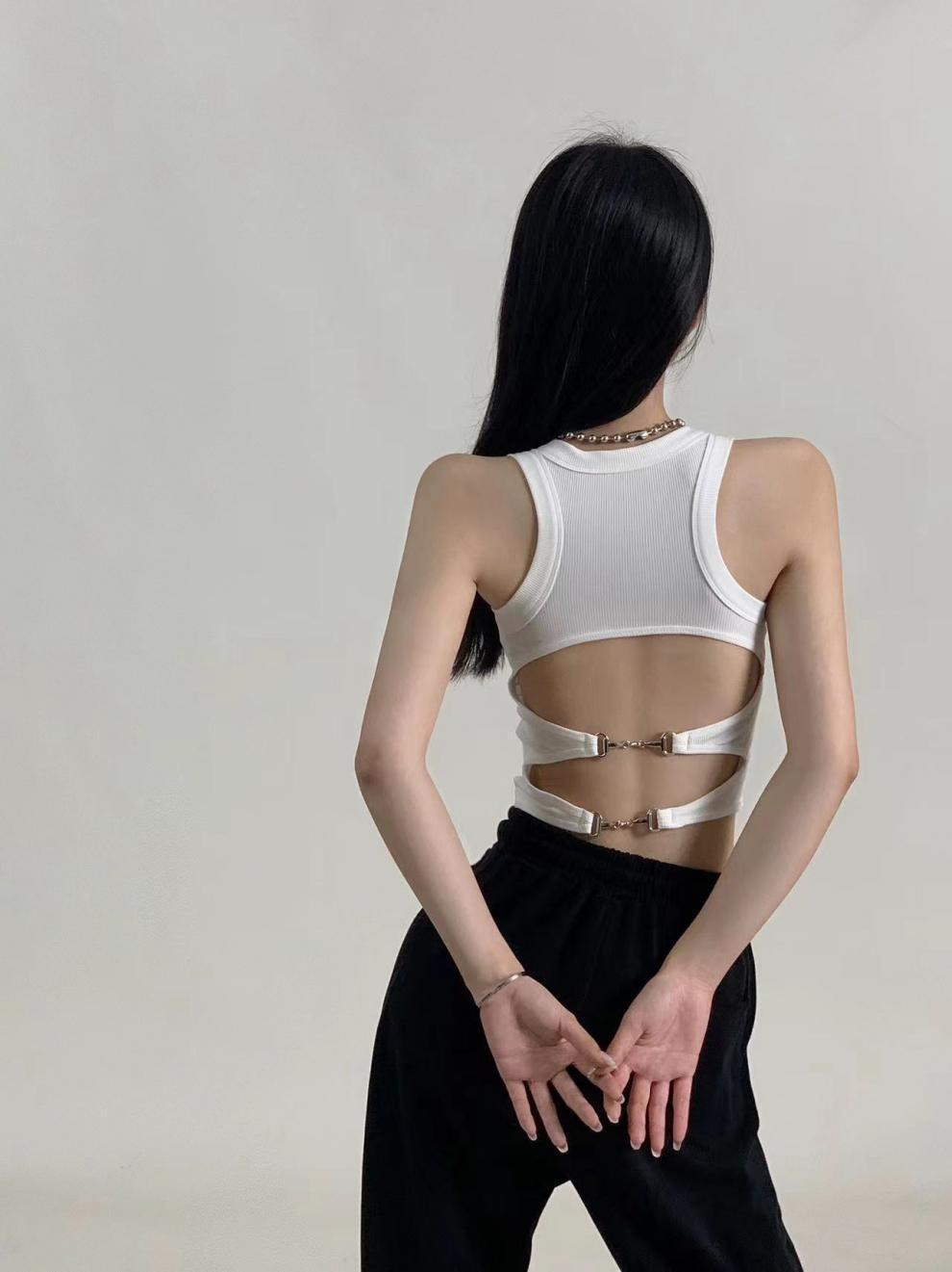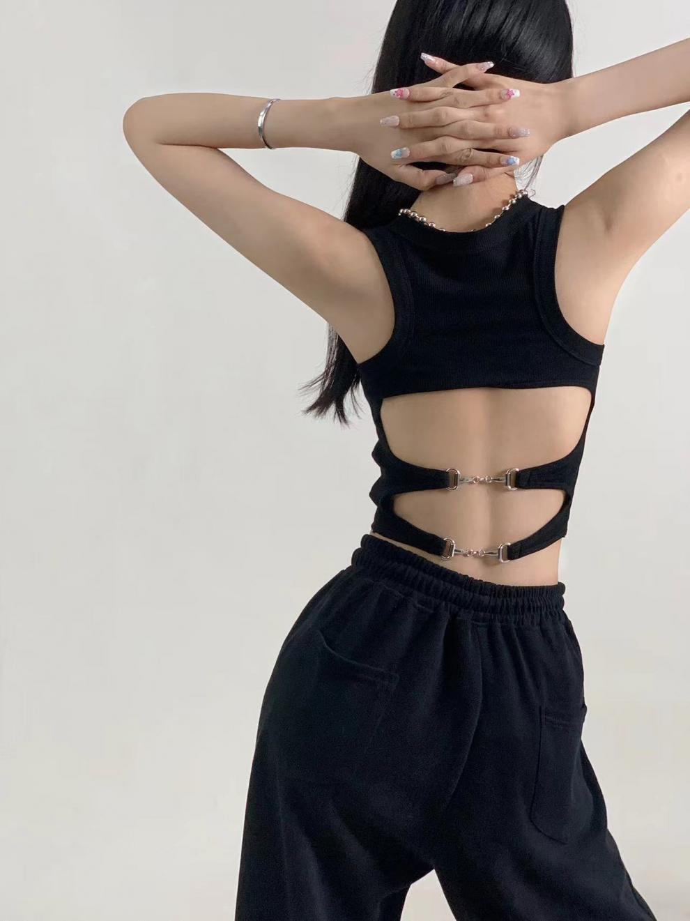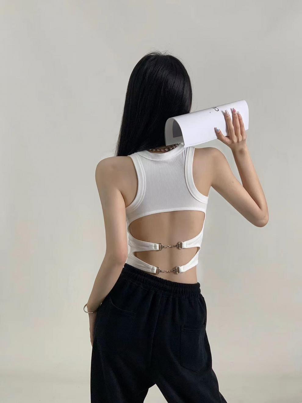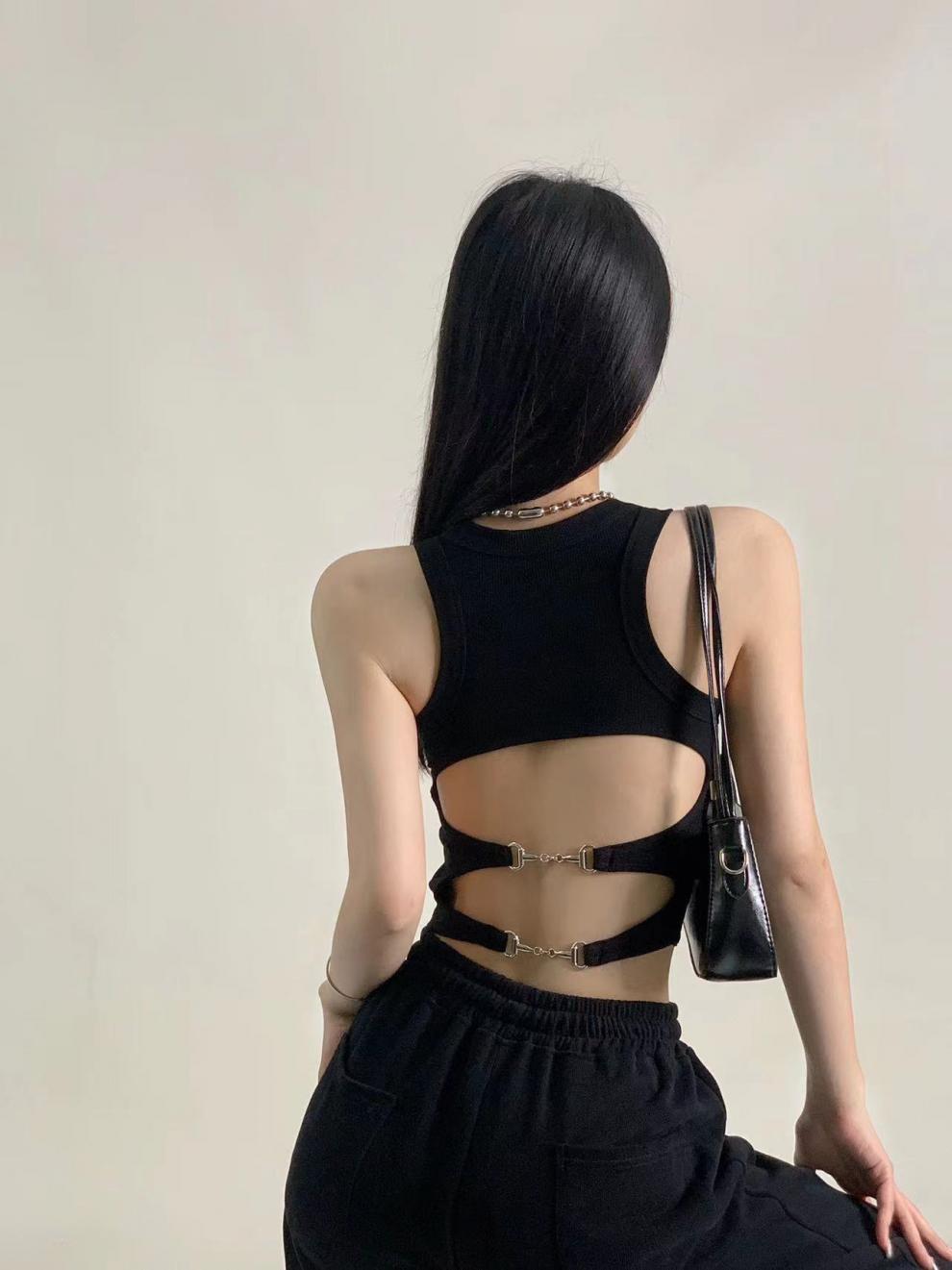 Camisola negra de verano 2023 estilo americano para chica sexy, con espalda descubierta, ropa exterior de verano para mujer, estilo corto con almohadilla para el pecho