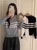 Suéter a rayas de manga larga con solapa de cremallera, nuevo de otoño, simple, ajustado, adelgazante, corto, para llevar debajo, top de ropa para mujer
