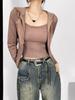 Traje de dos piezas para mujer otoño e invierno 2023 Nueva chaqueta cárdigan de punto con capucha ajustada Pure Desire + camisola interior