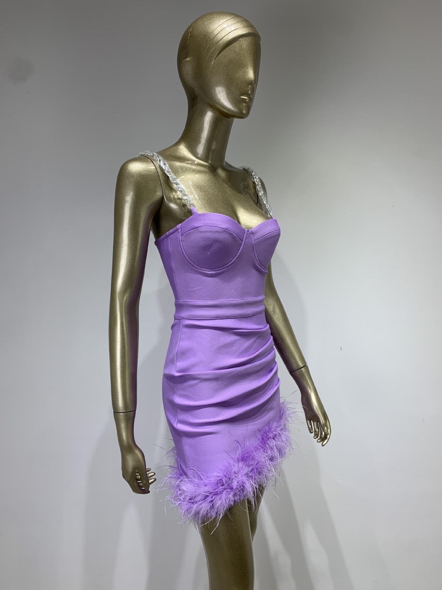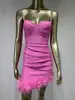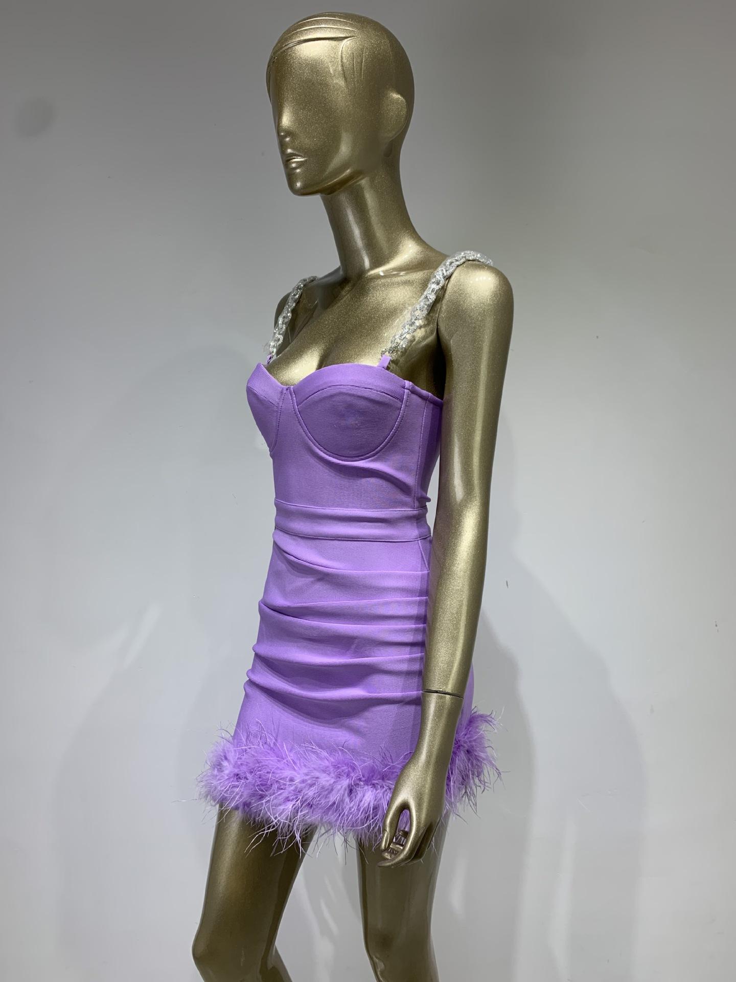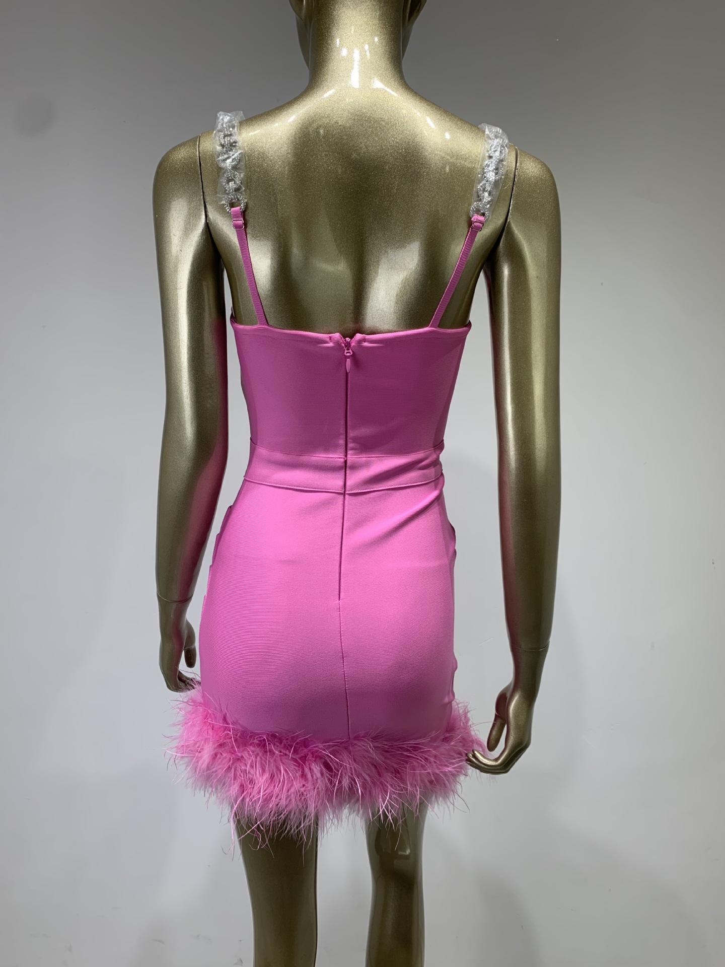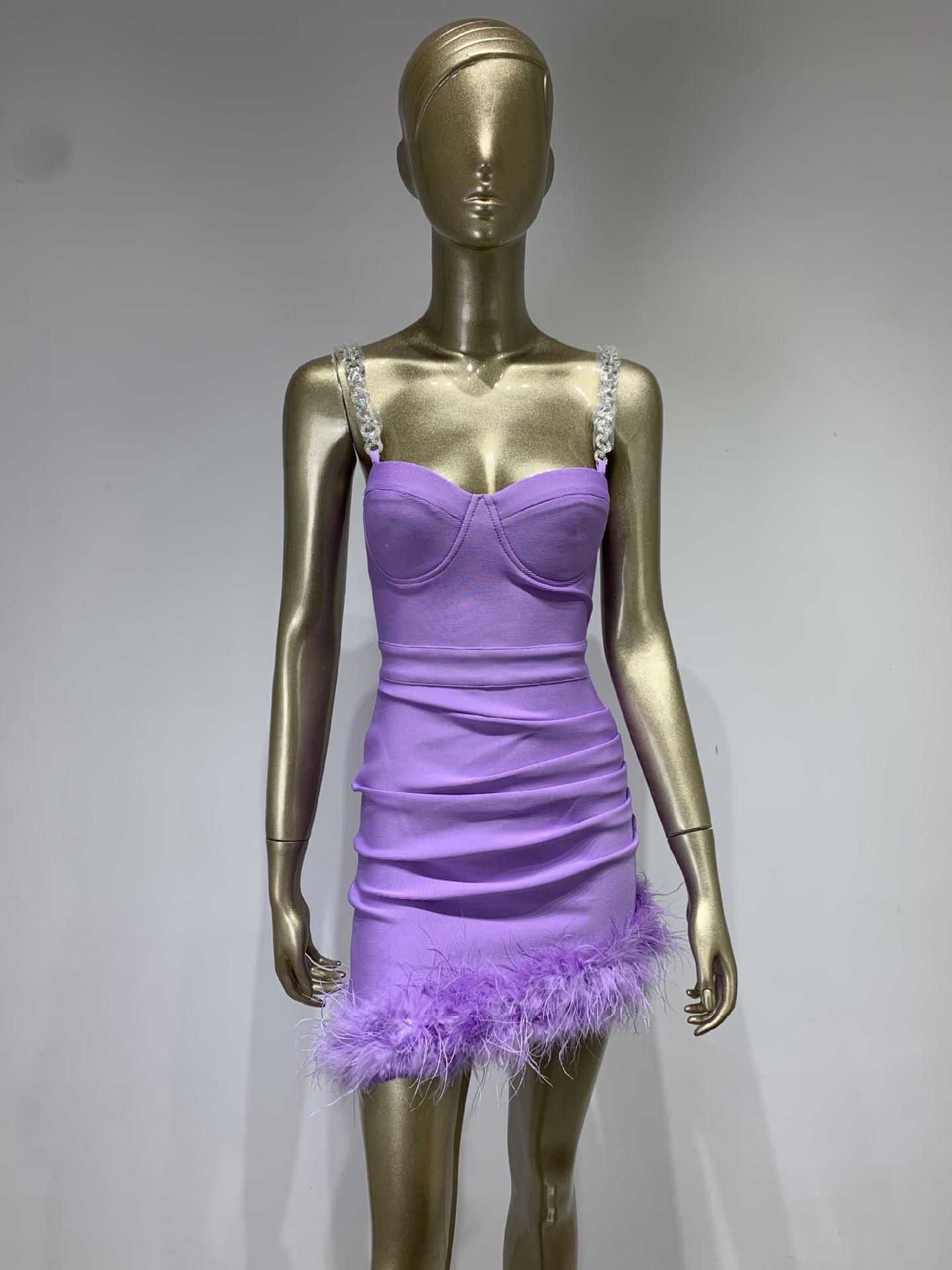Vestido de vendaje transfronterizo nuevo 2023, gran oferta de Amazon, moda europea y americana, vestido ajustado con pliegues y costuras de plumas.