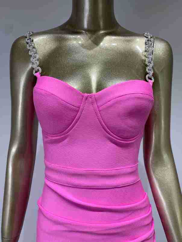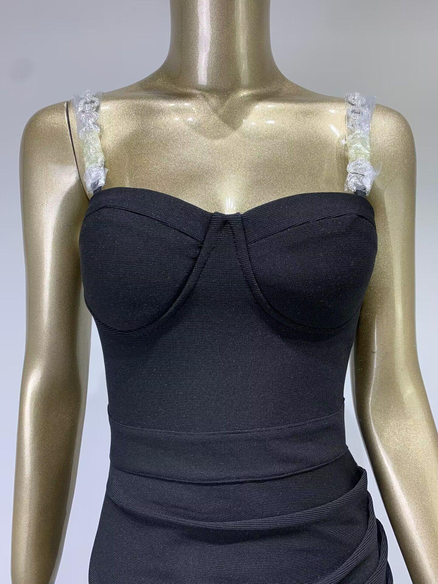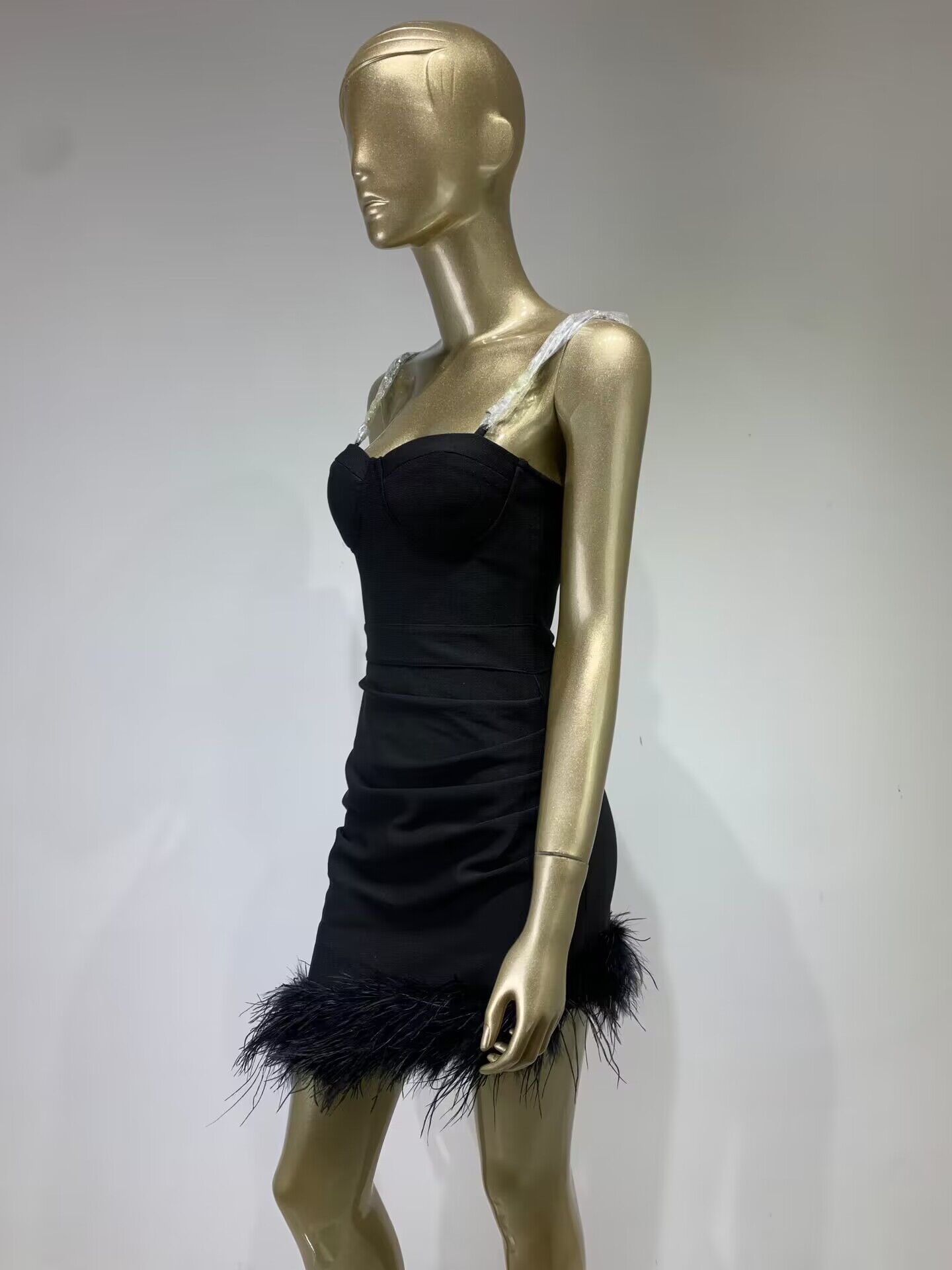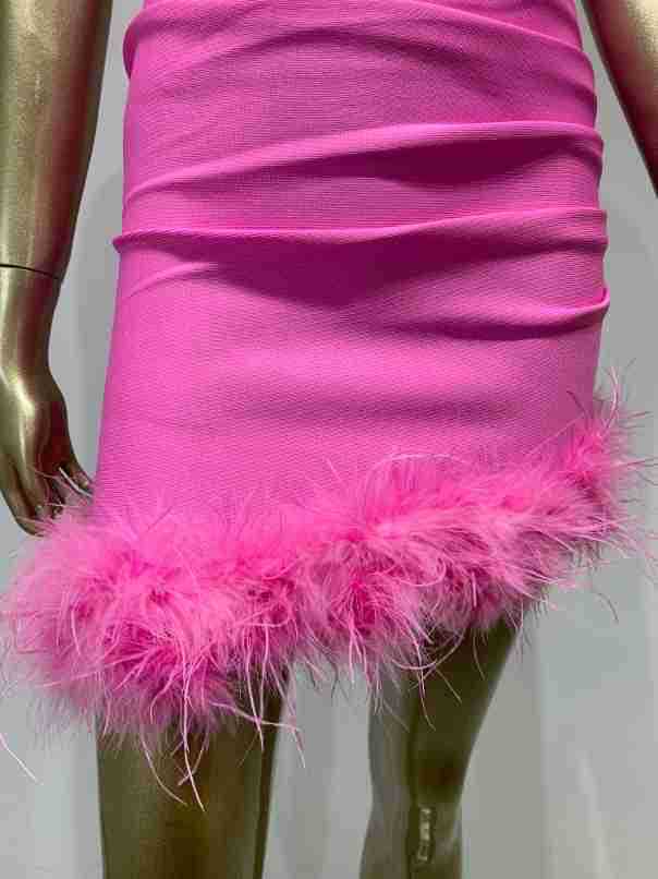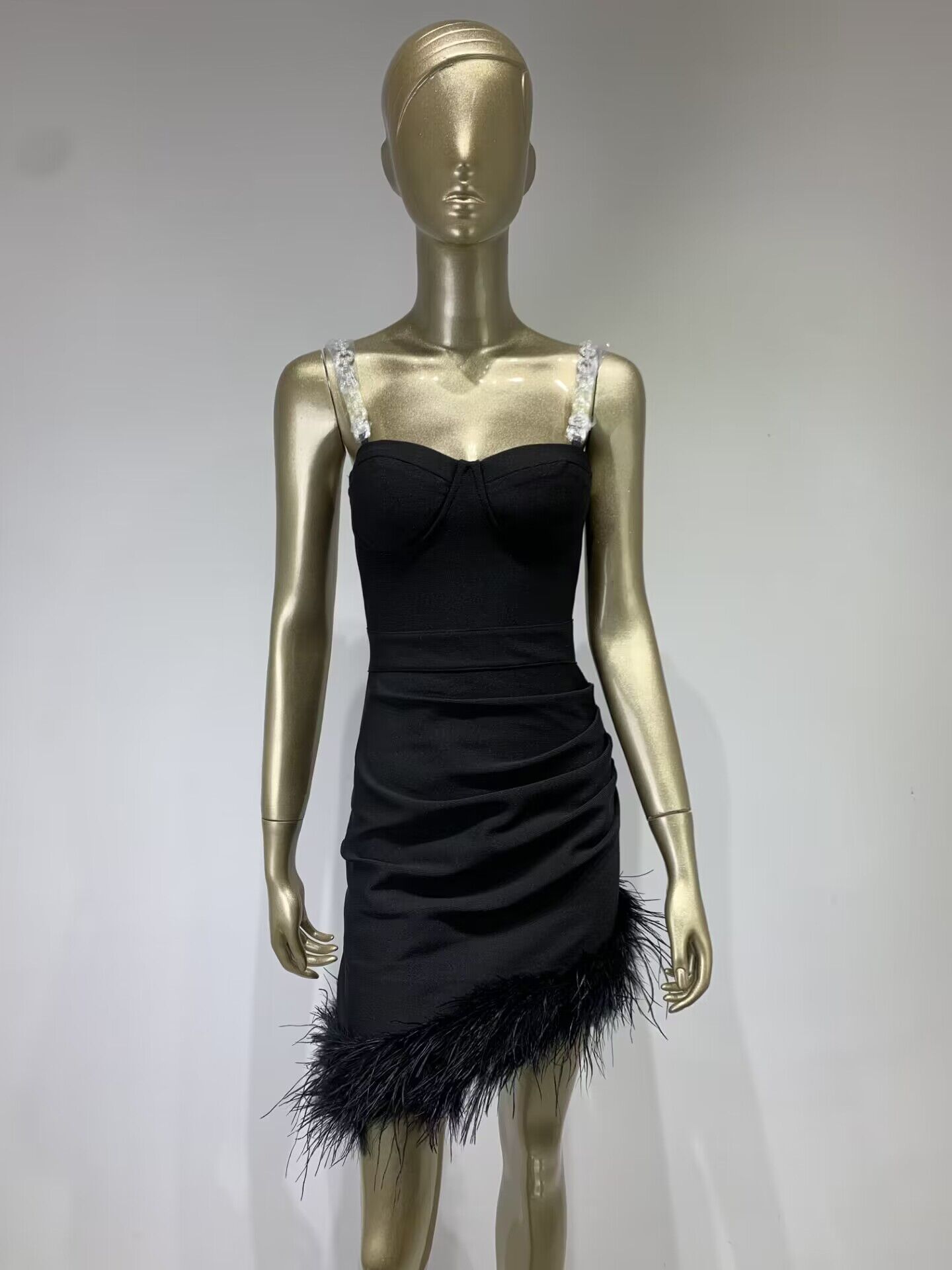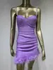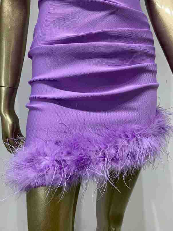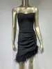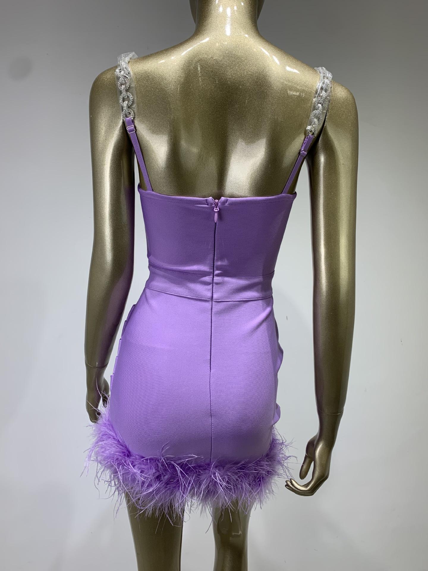Vestido de vendaje transfronterizo nuevo 2023, gran oferta de Amazon, moda europea y americana, vestido ajustado con pliegues y costuras de plumas.