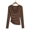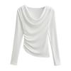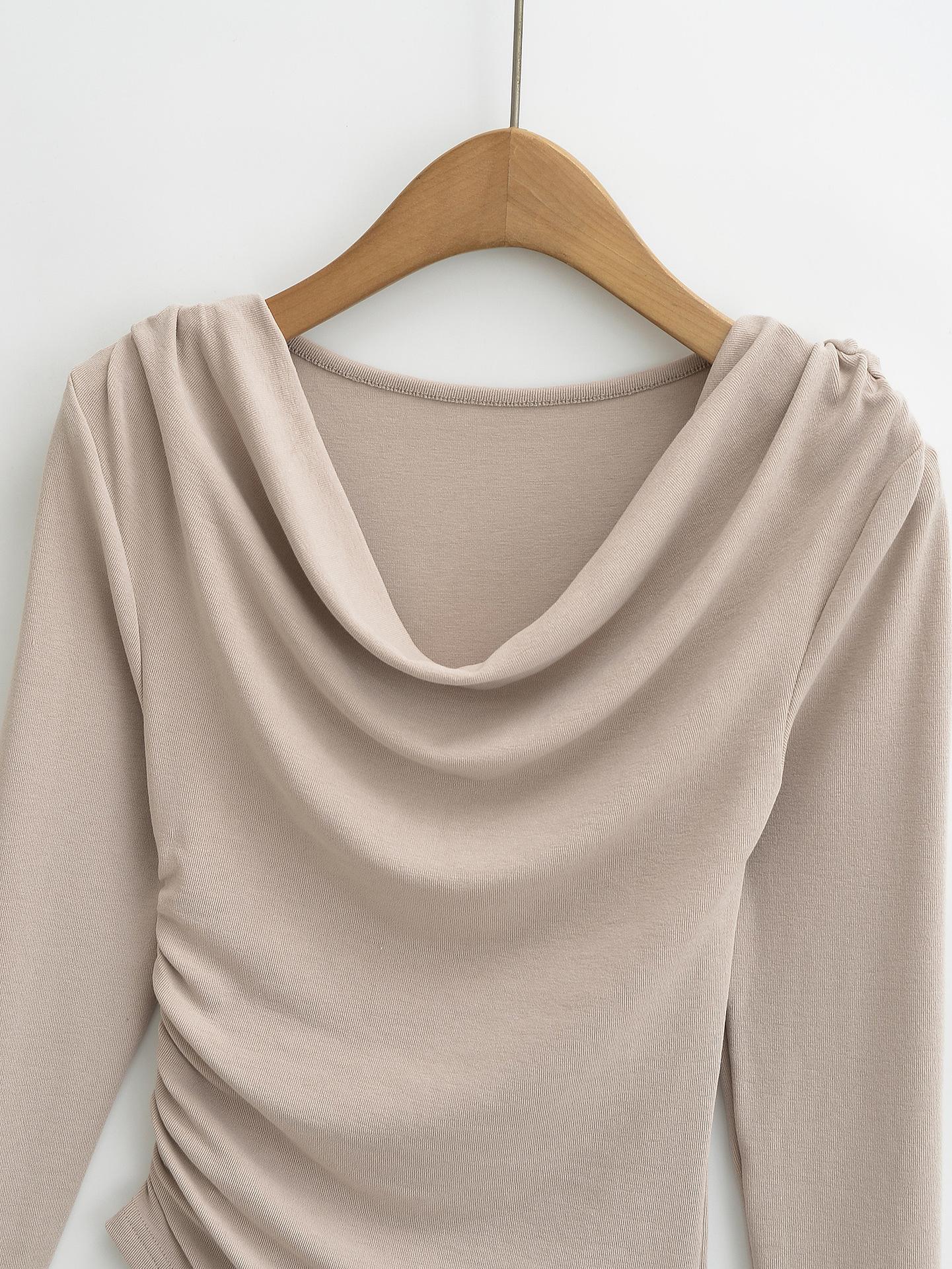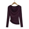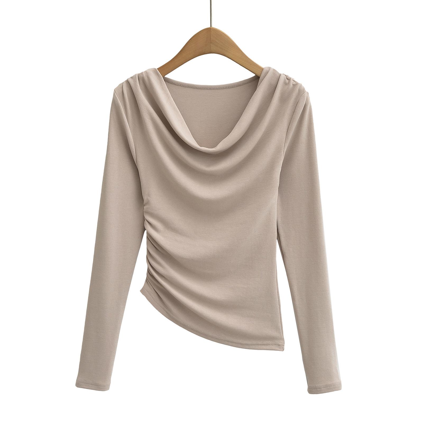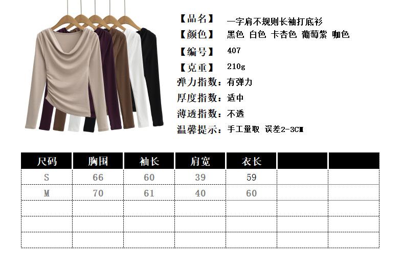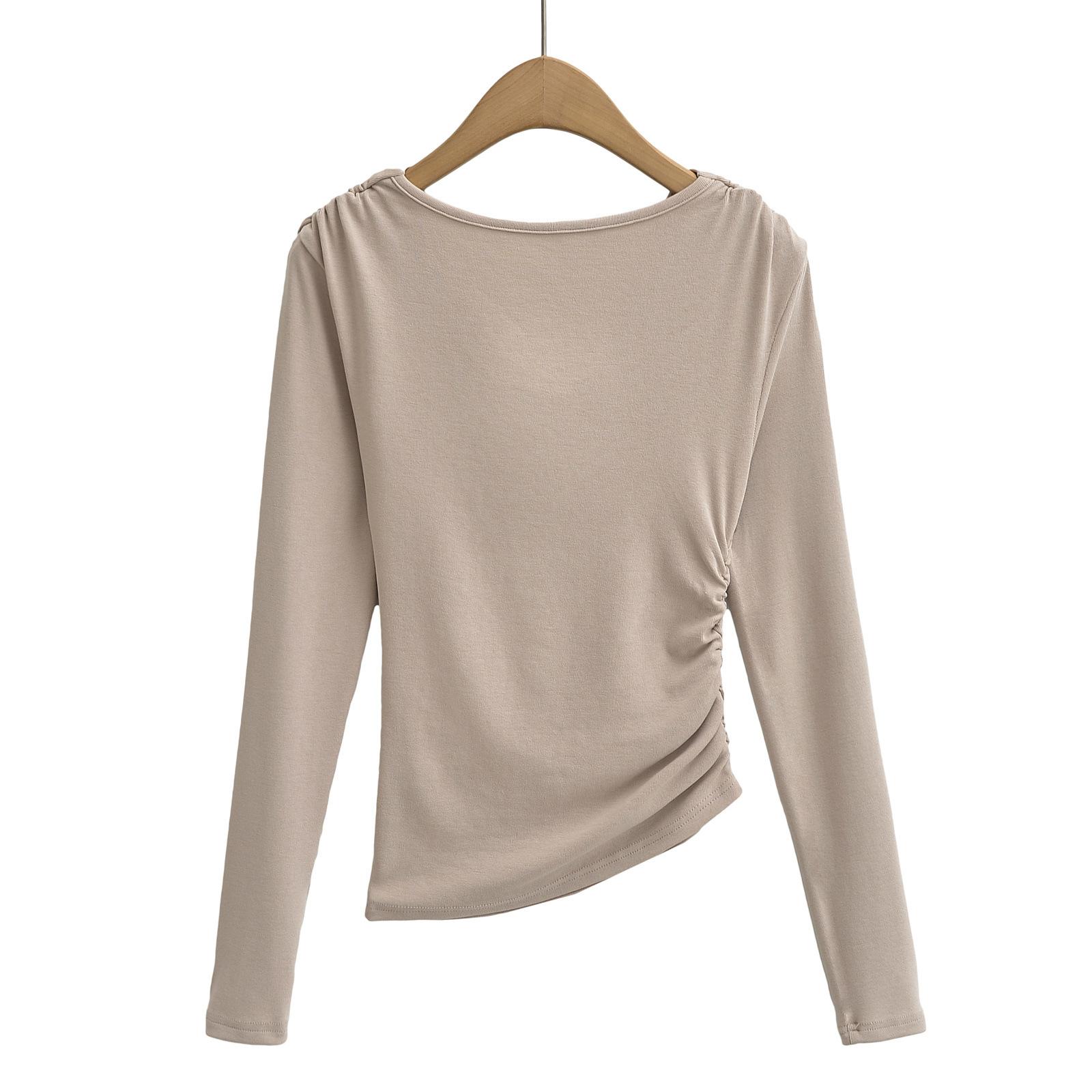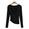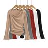 FS407-24 nueva camiseta de primavera temprana estilo europeo y americano estilo blogger INS cuello vuelto hombros descubiertos manga larga irregular para llevar debajo
