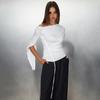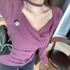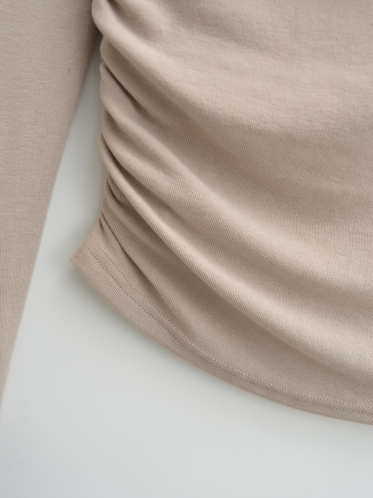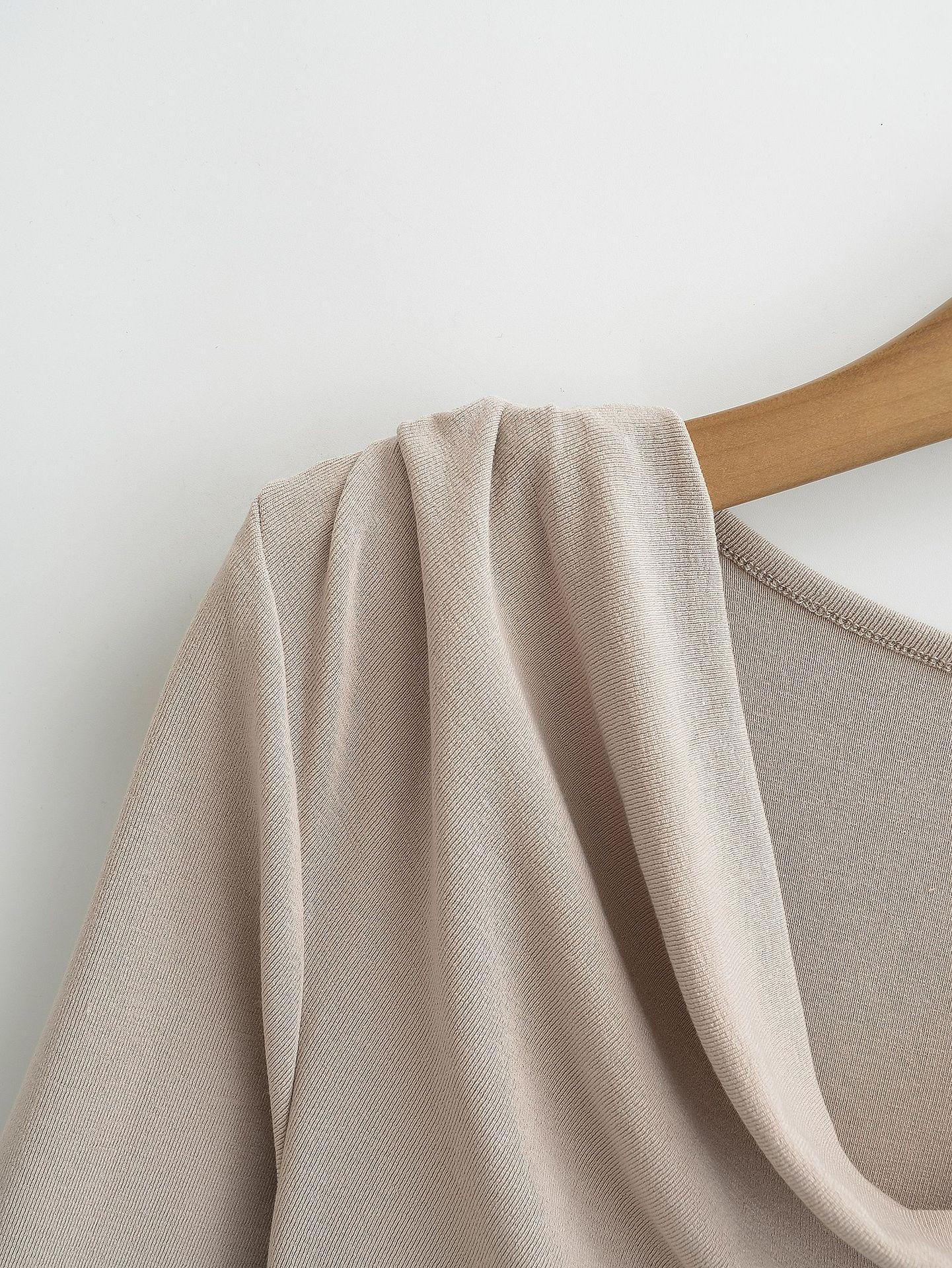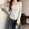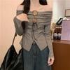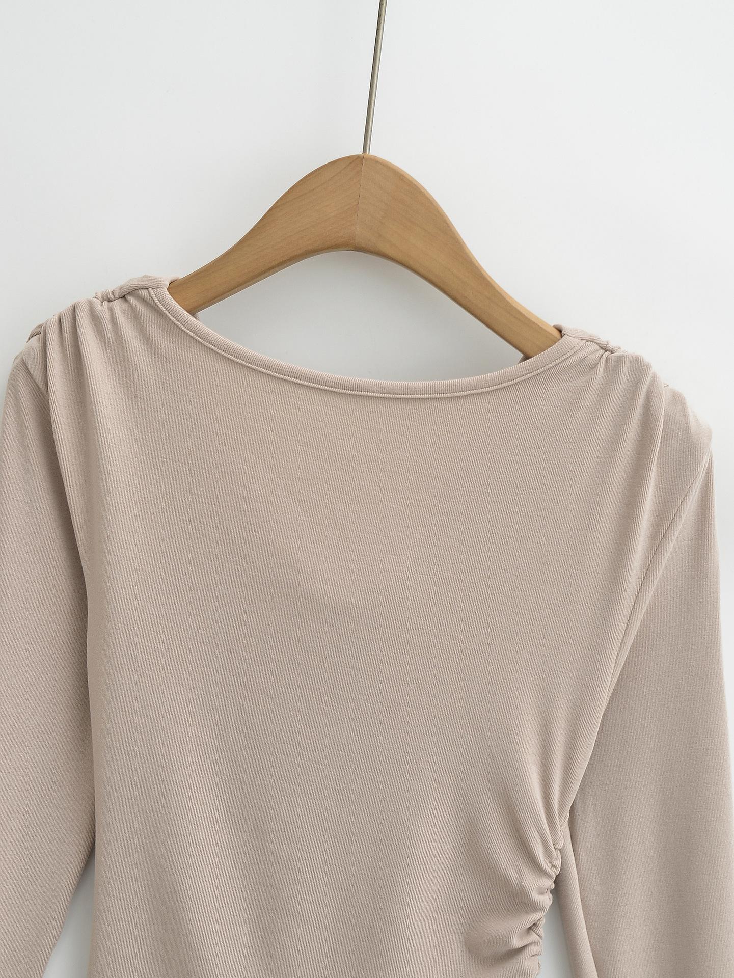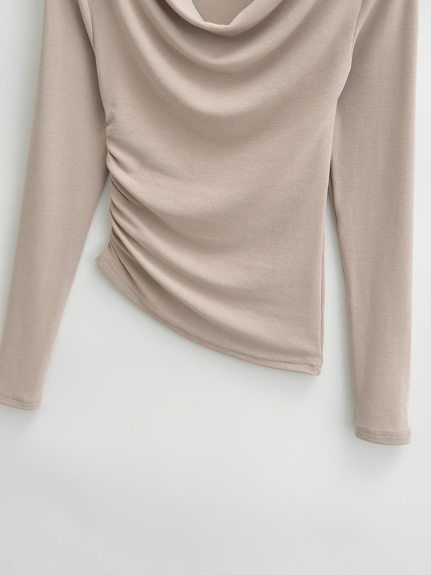 FS407-24 nueva camiseta de primavera temprana estilo europeo y americano estilo blogger INS cuello vuelto hombros descubiertos manga larga irregular para llevar debajo