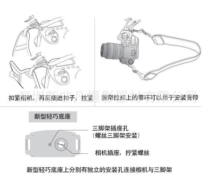 3: La base conectada a la parte inferior de la cámara está diseñada con orificios para tornillos para instalar la placa de liberación rápida, lo que no afectará la función de fijación de la cámara en el trípode.